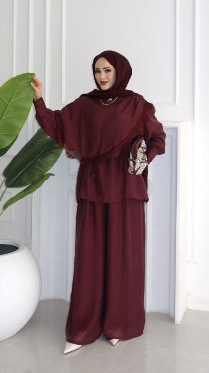 Güpür Yakalı Pelerin Vual İkili Takım – Mürdüm