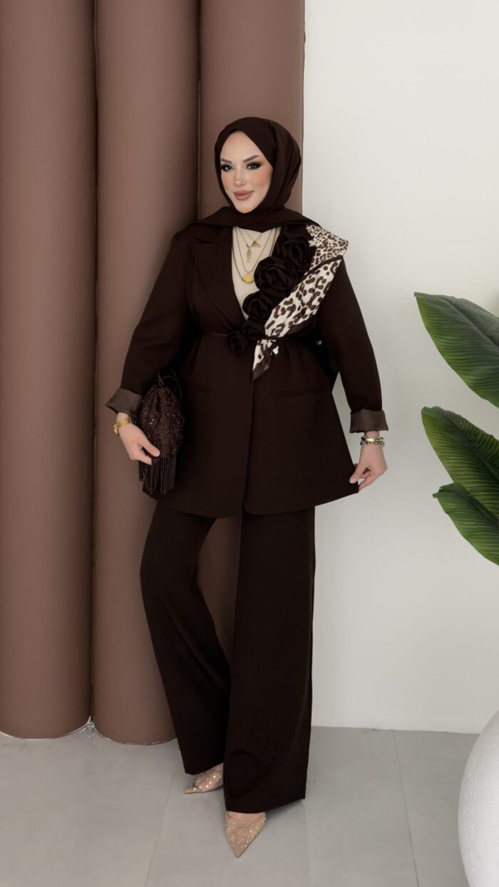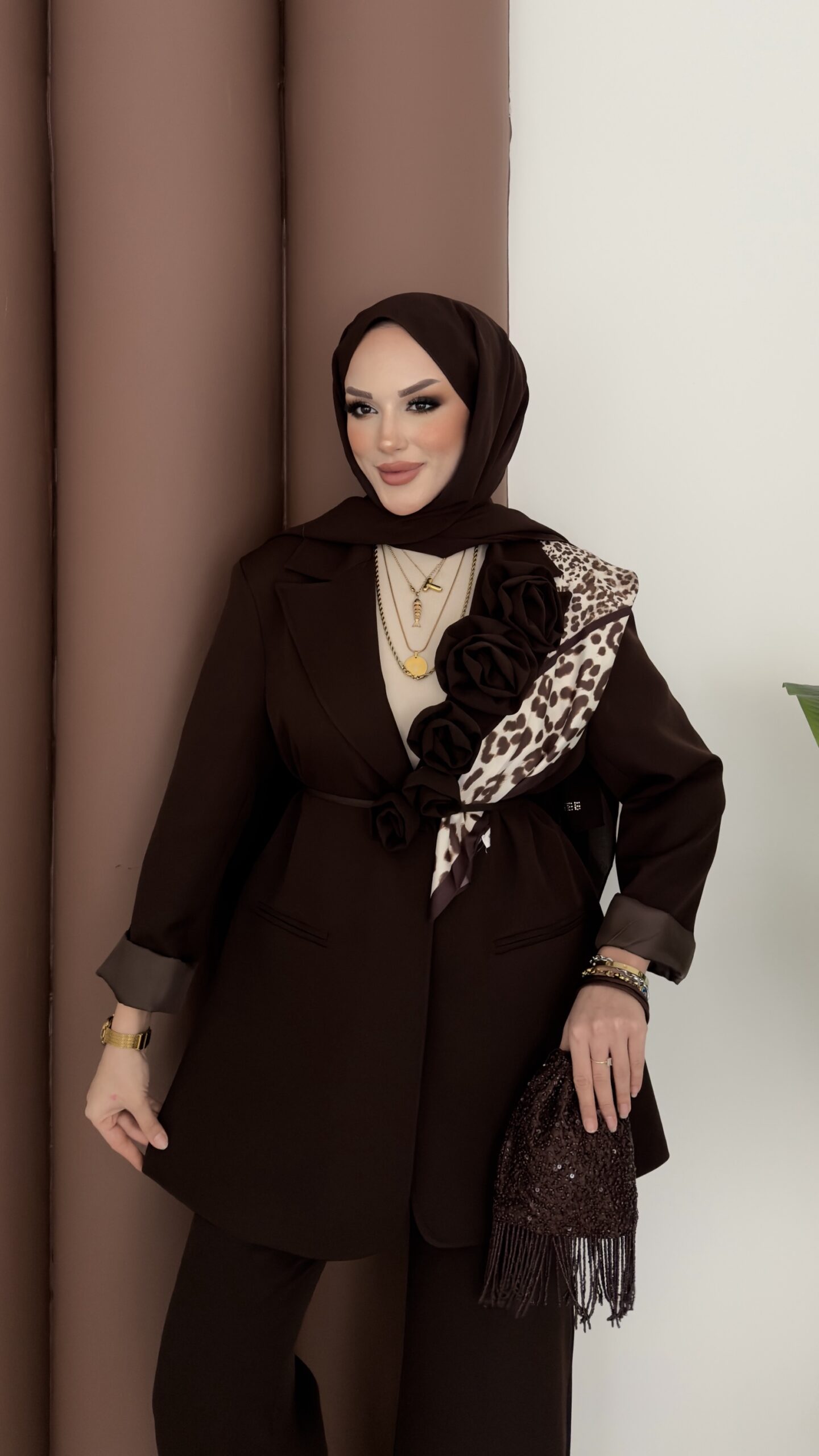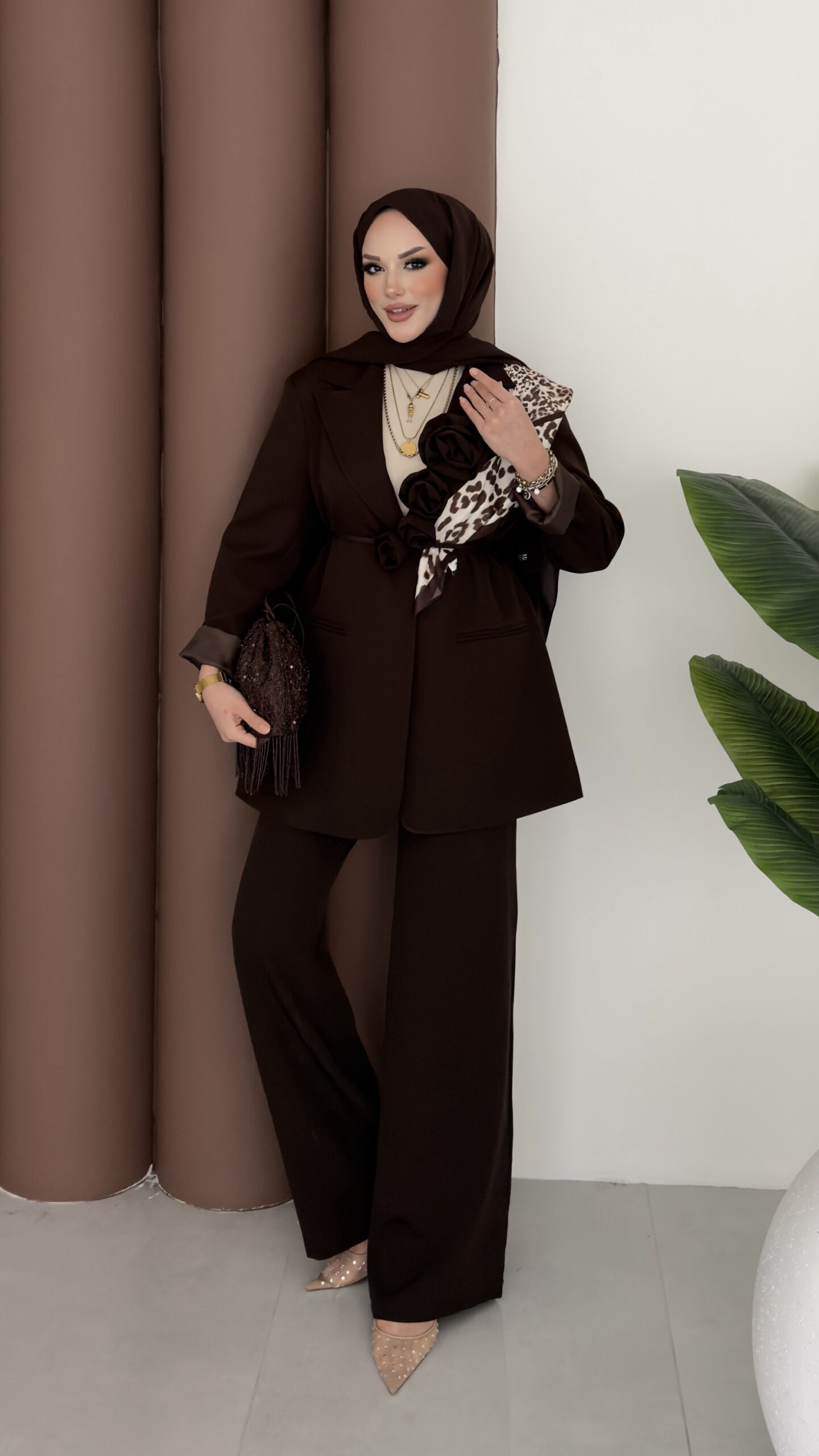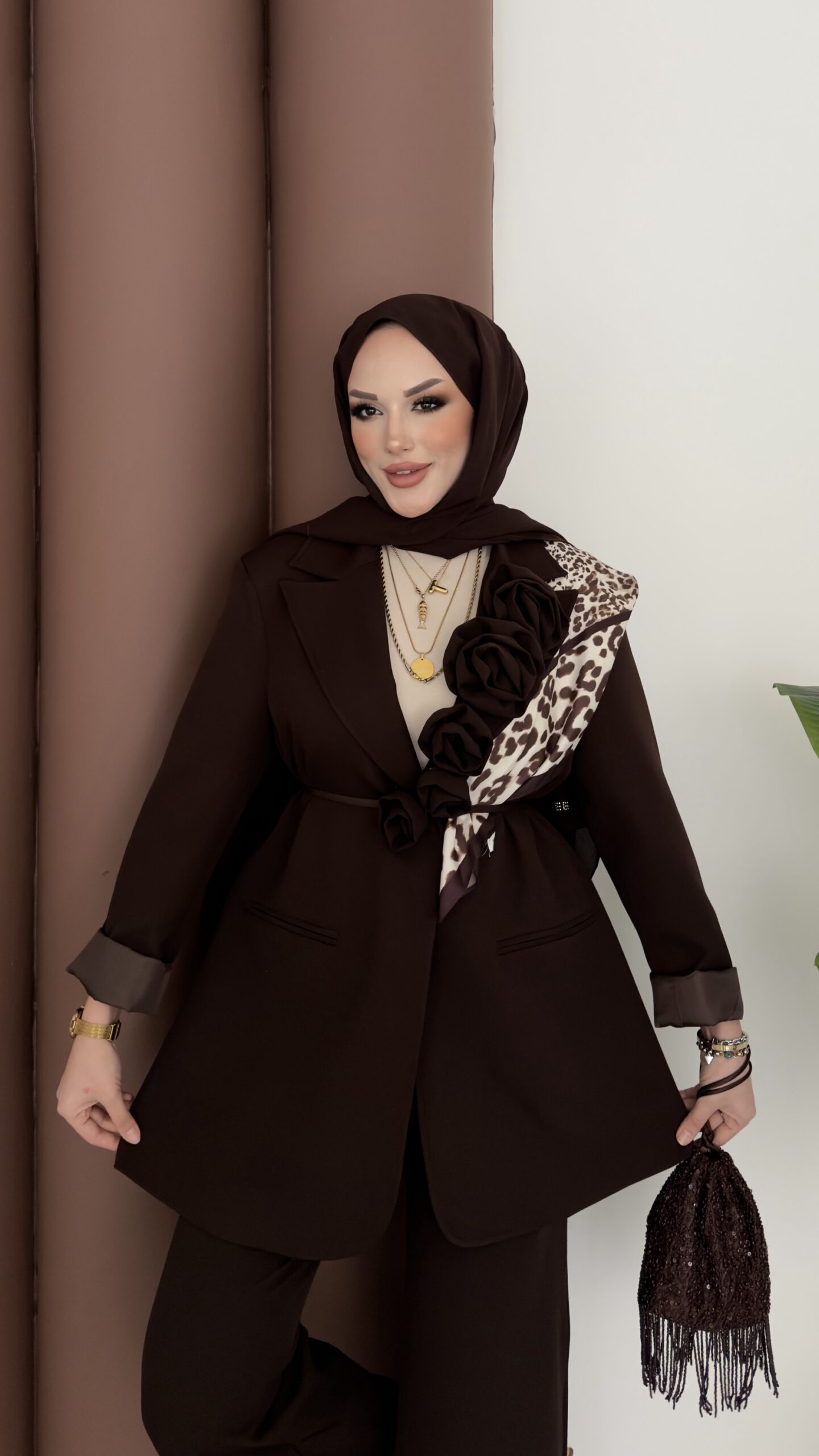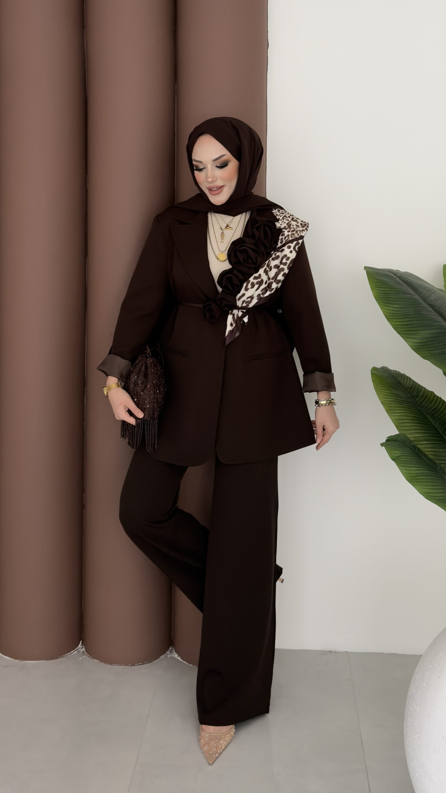 İzabel Güllü Dabıl Ceket İkili Takım – Kahverengi