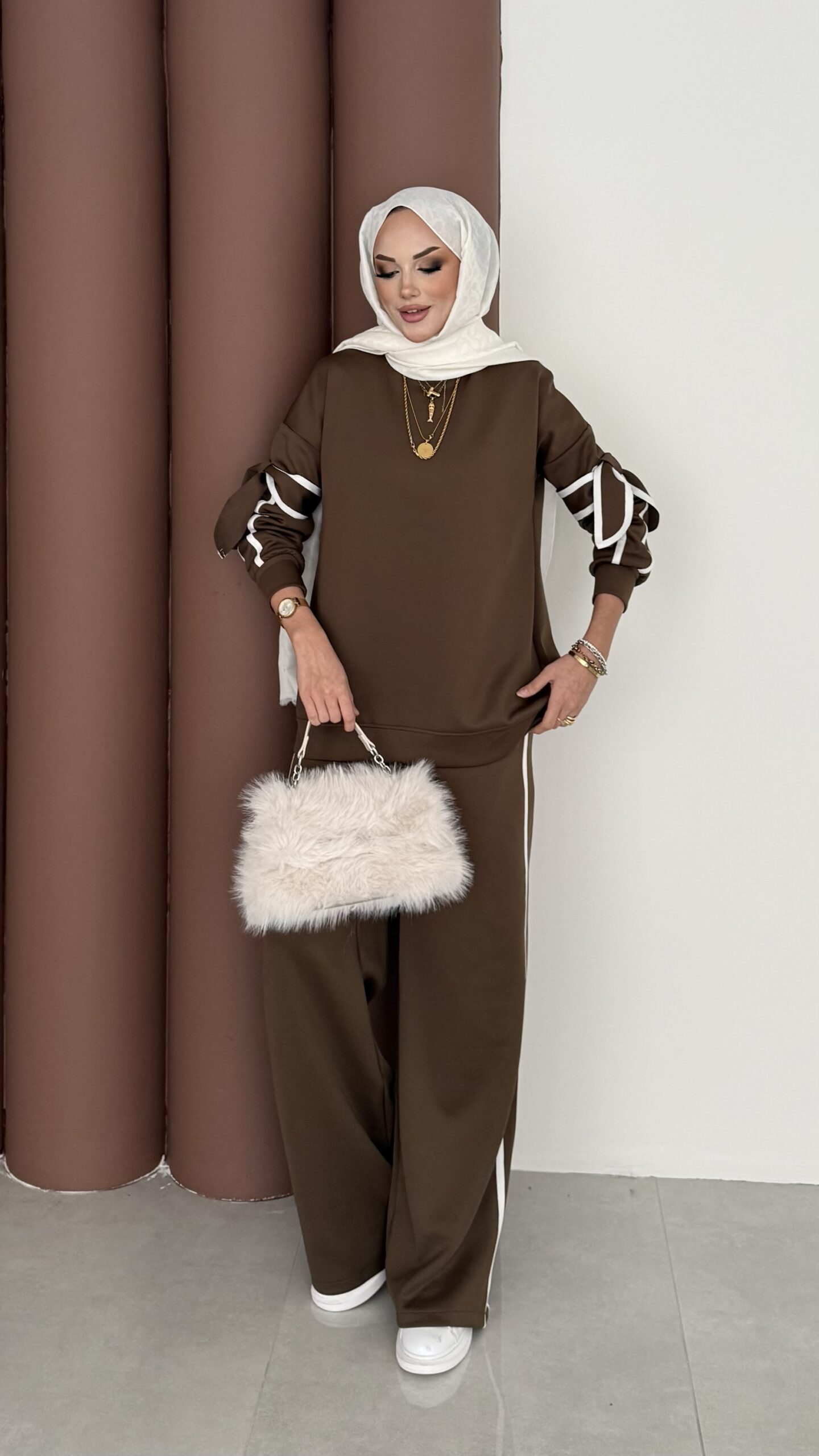 Fiyonklu Scuba İkili Takım – Kahverengi