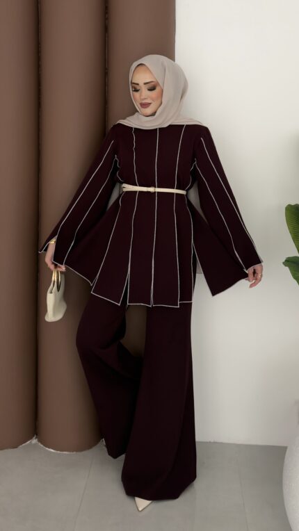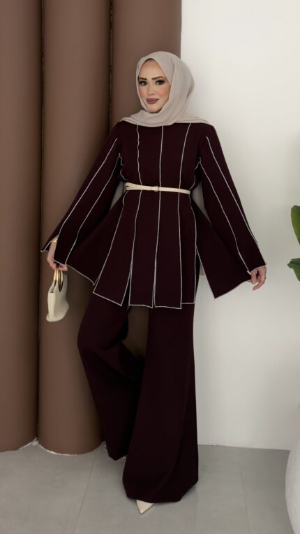 Block Parçalı Dabıl İkili Takım – Mürdüm