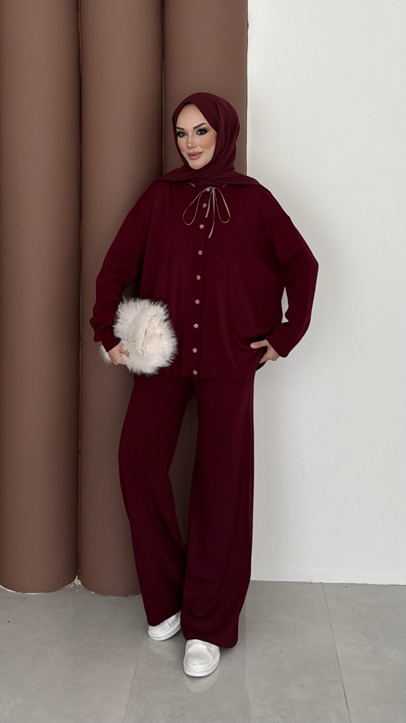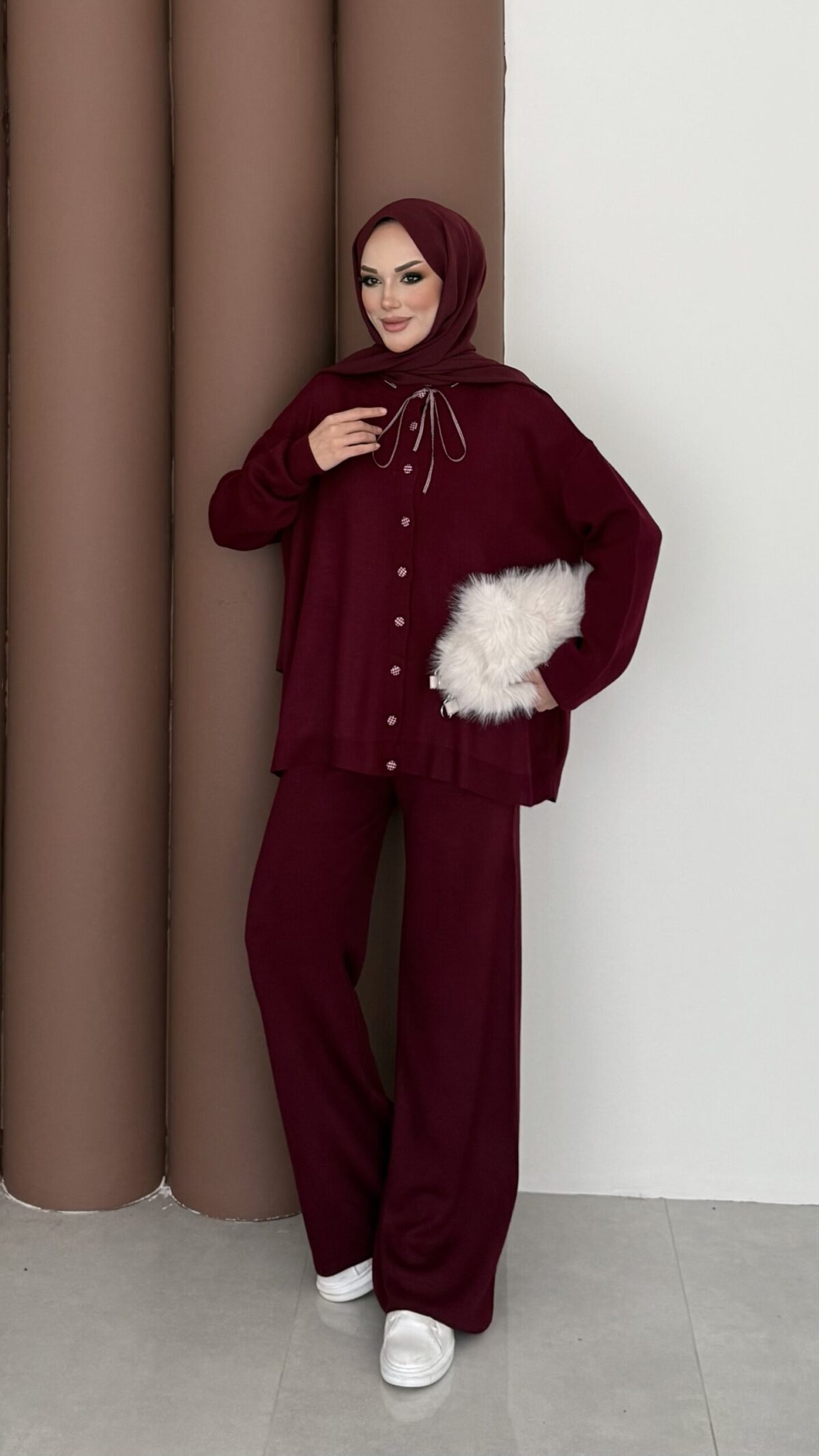 Luxury Kürklü Scuba İkli Takım – Bordo