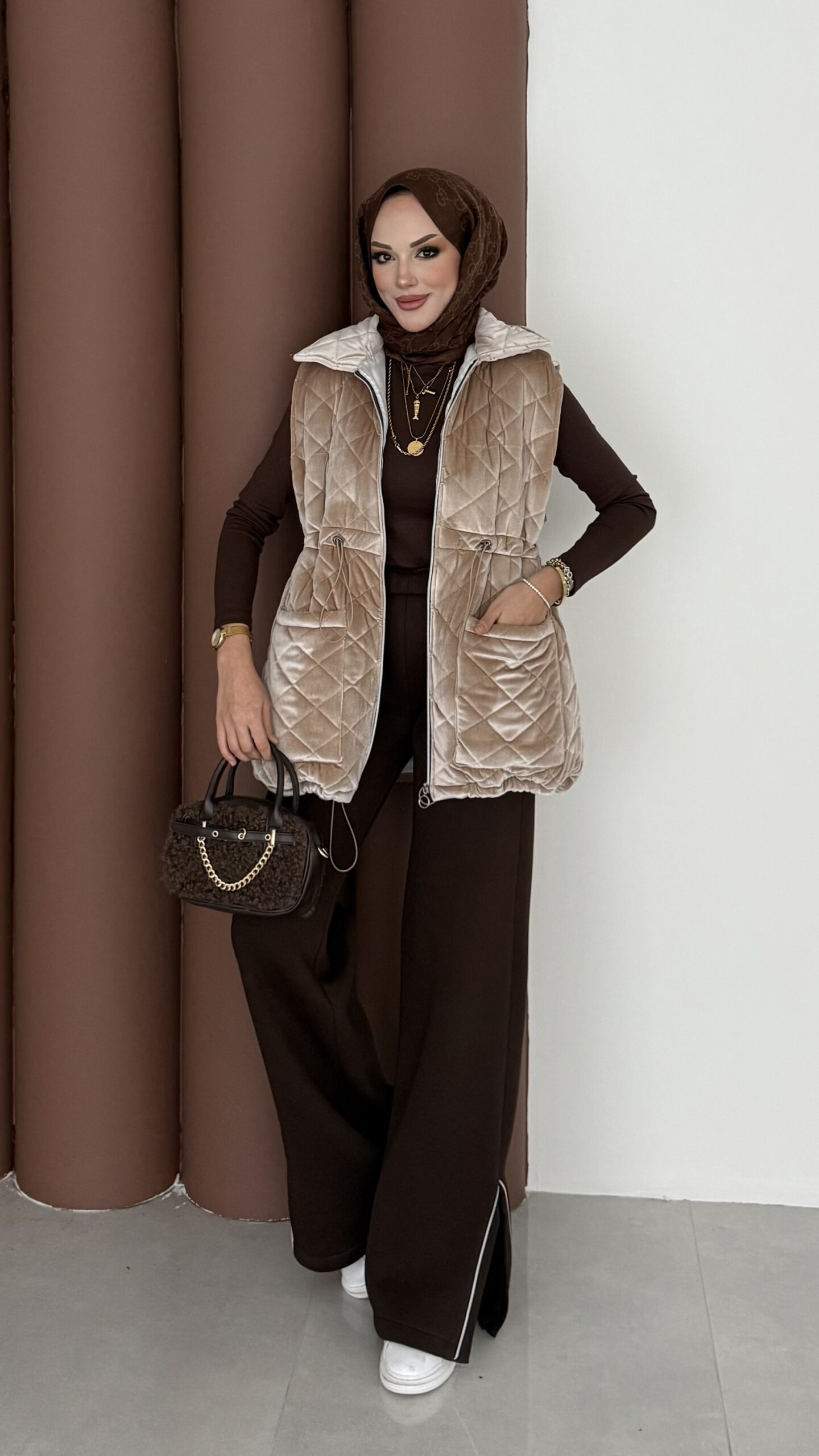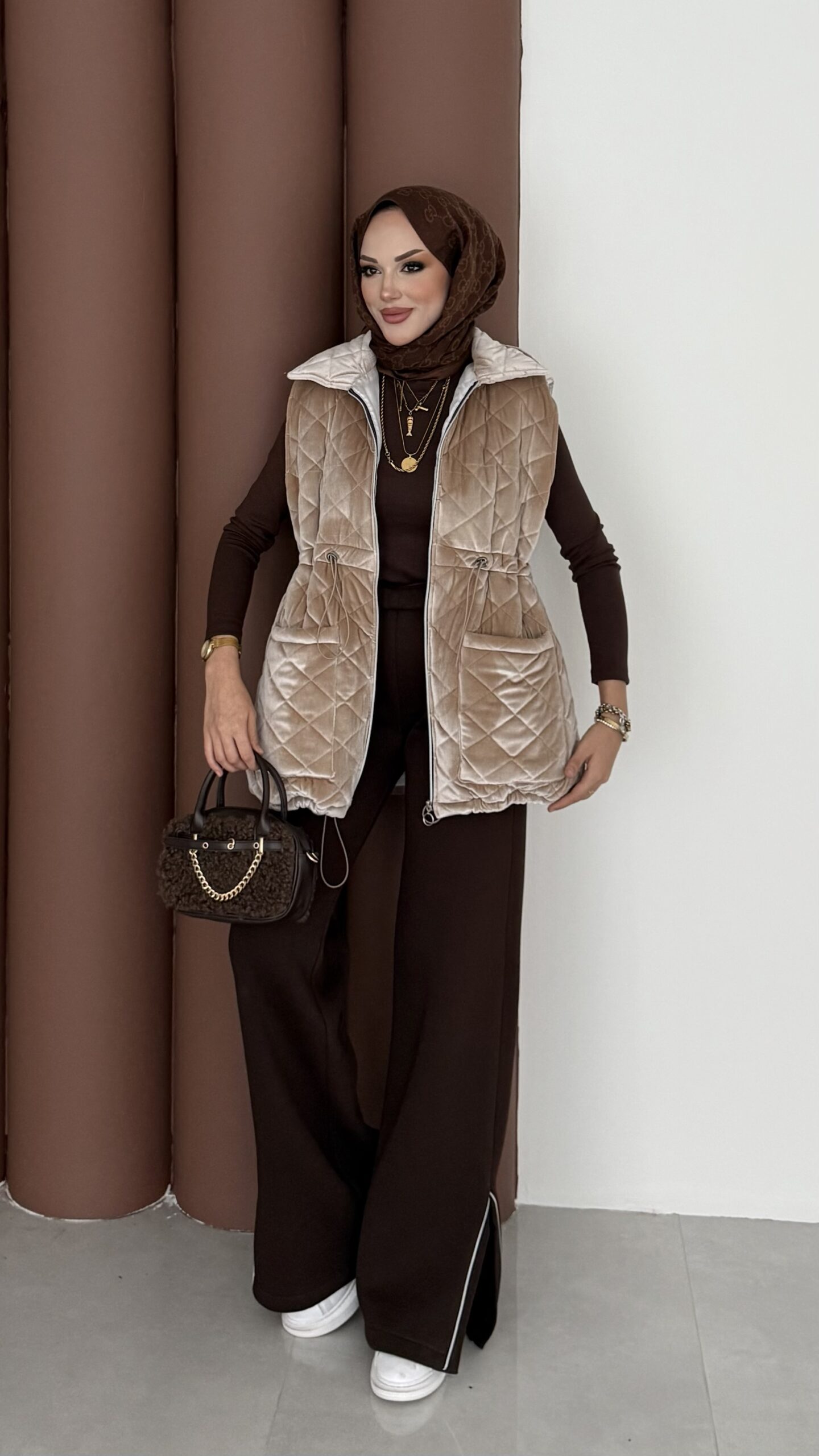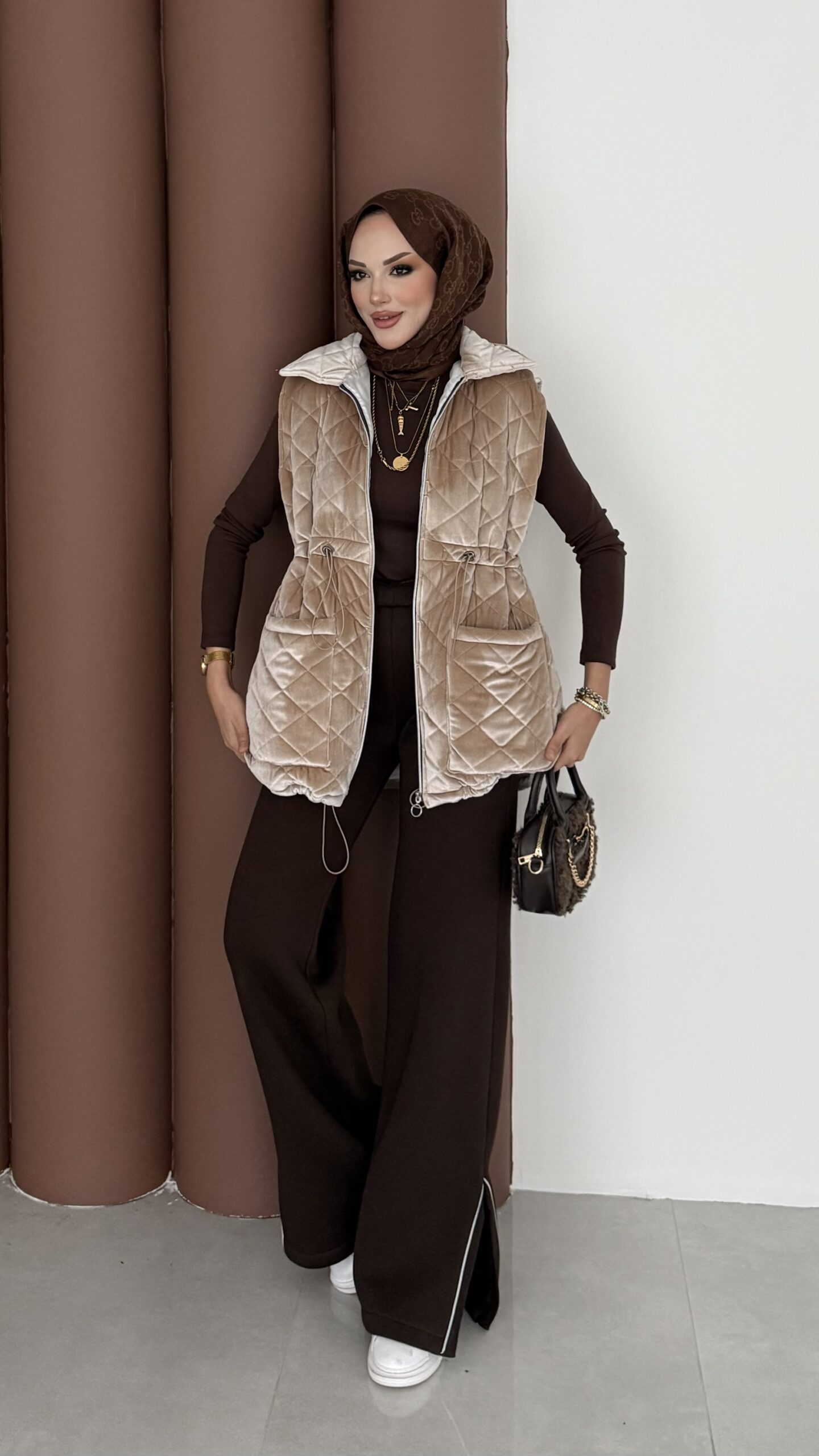 Kapitoneli Kadife Şişme Yelek - Antrasit