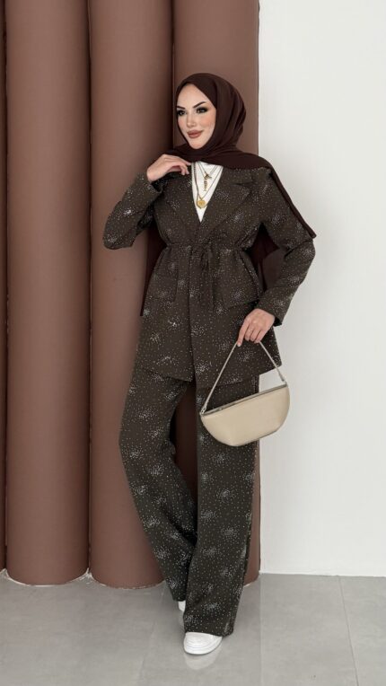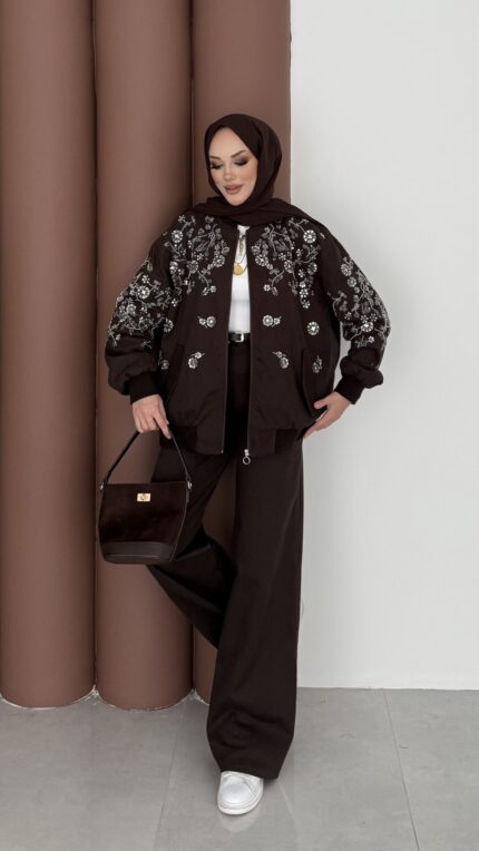 Marka Muadili Gabardin Bomber Ceket İkili Takım – Kahverengi