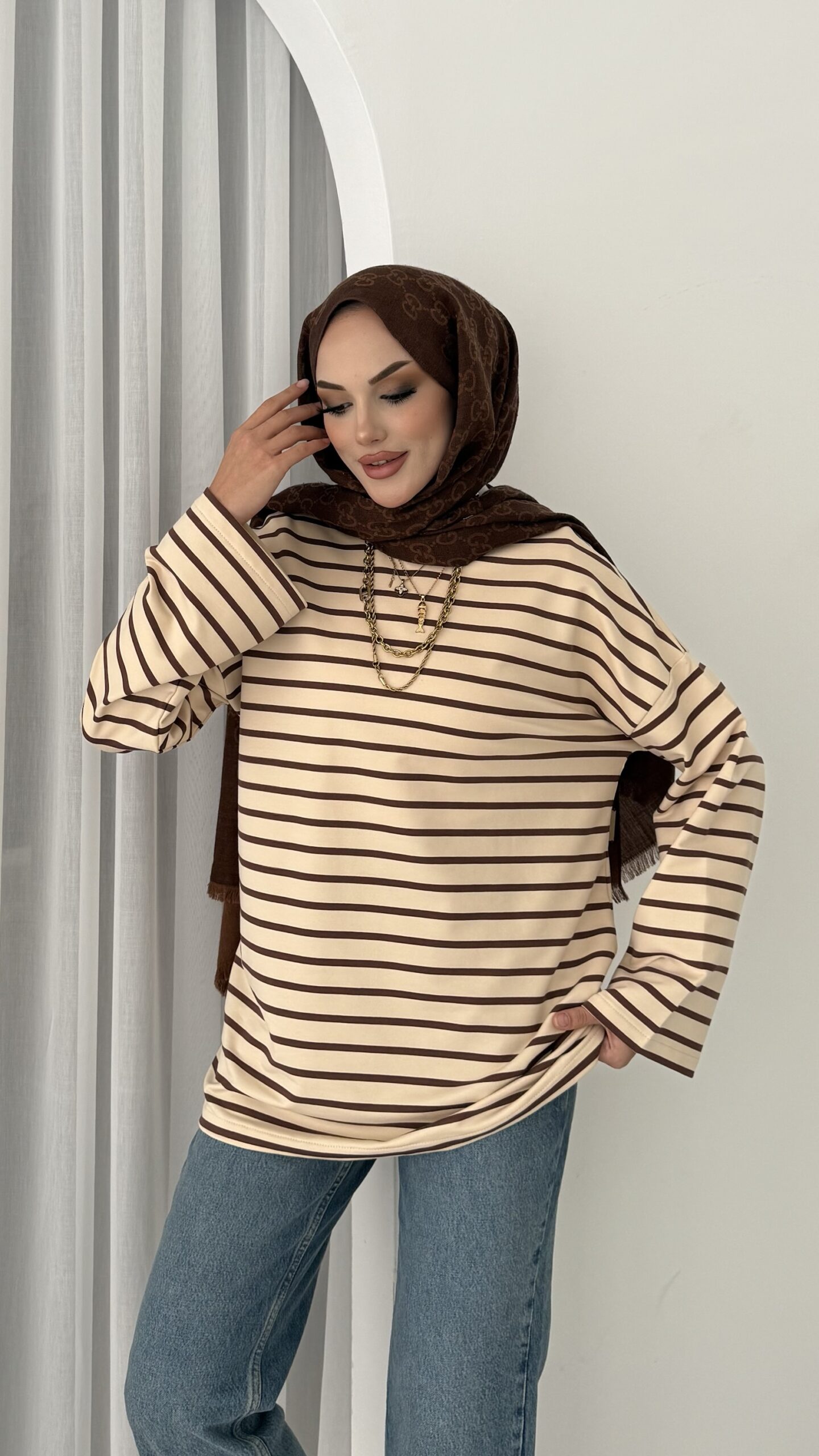 Kapsül Basic Çizgili Sweat – Kahverengi