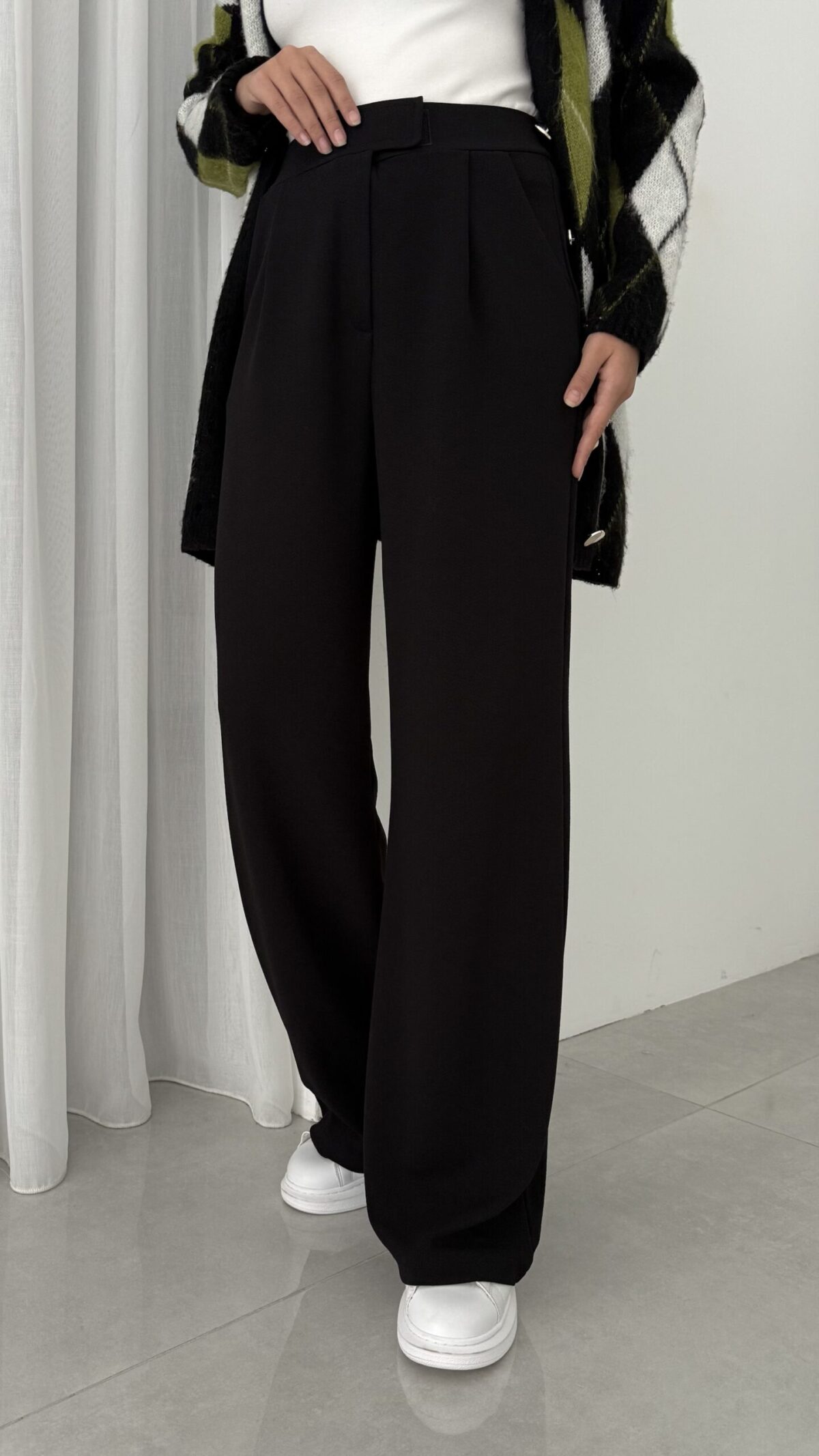 Çırtçırtlı Palazzo Krep Pantolon – Siyah