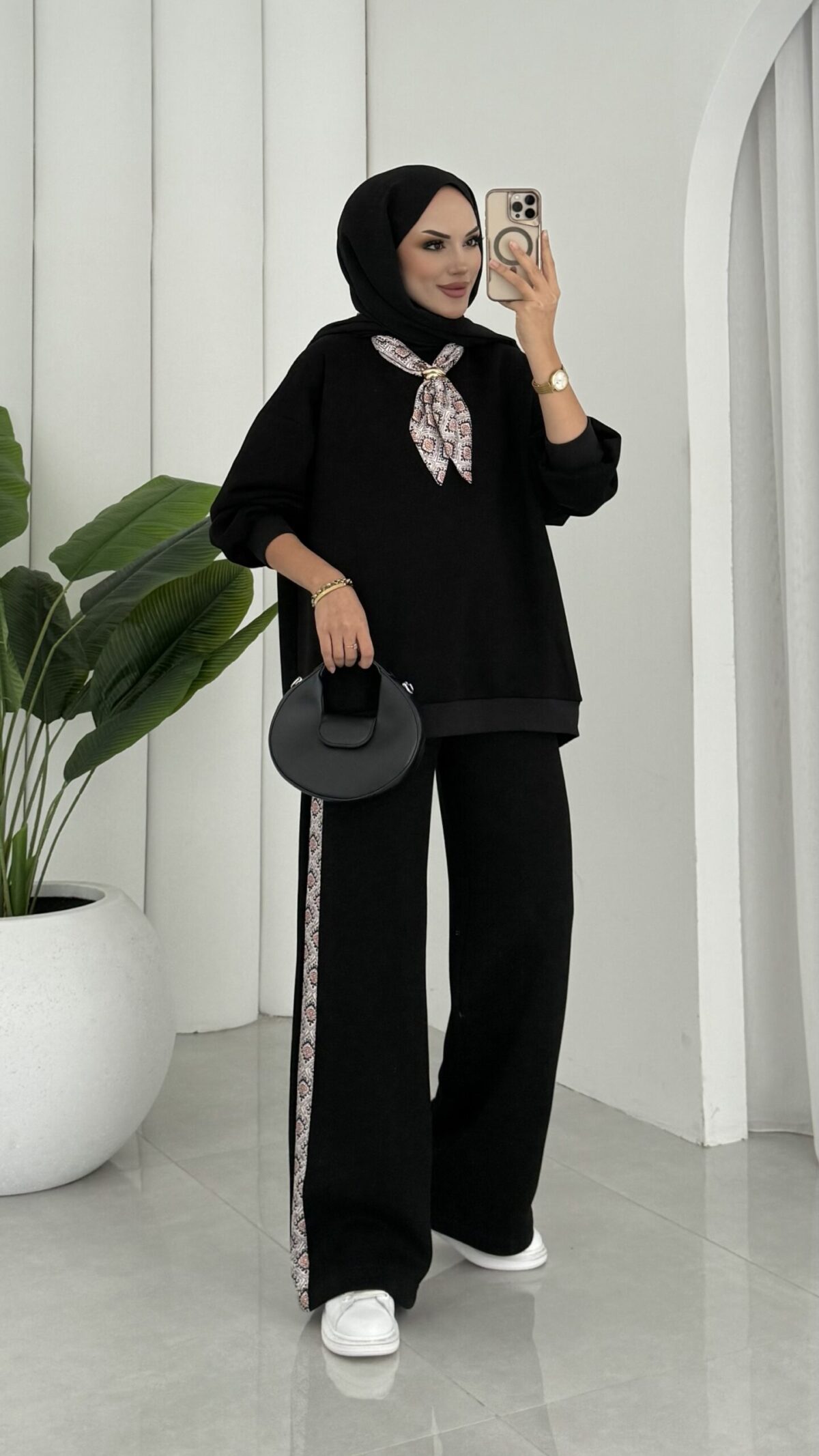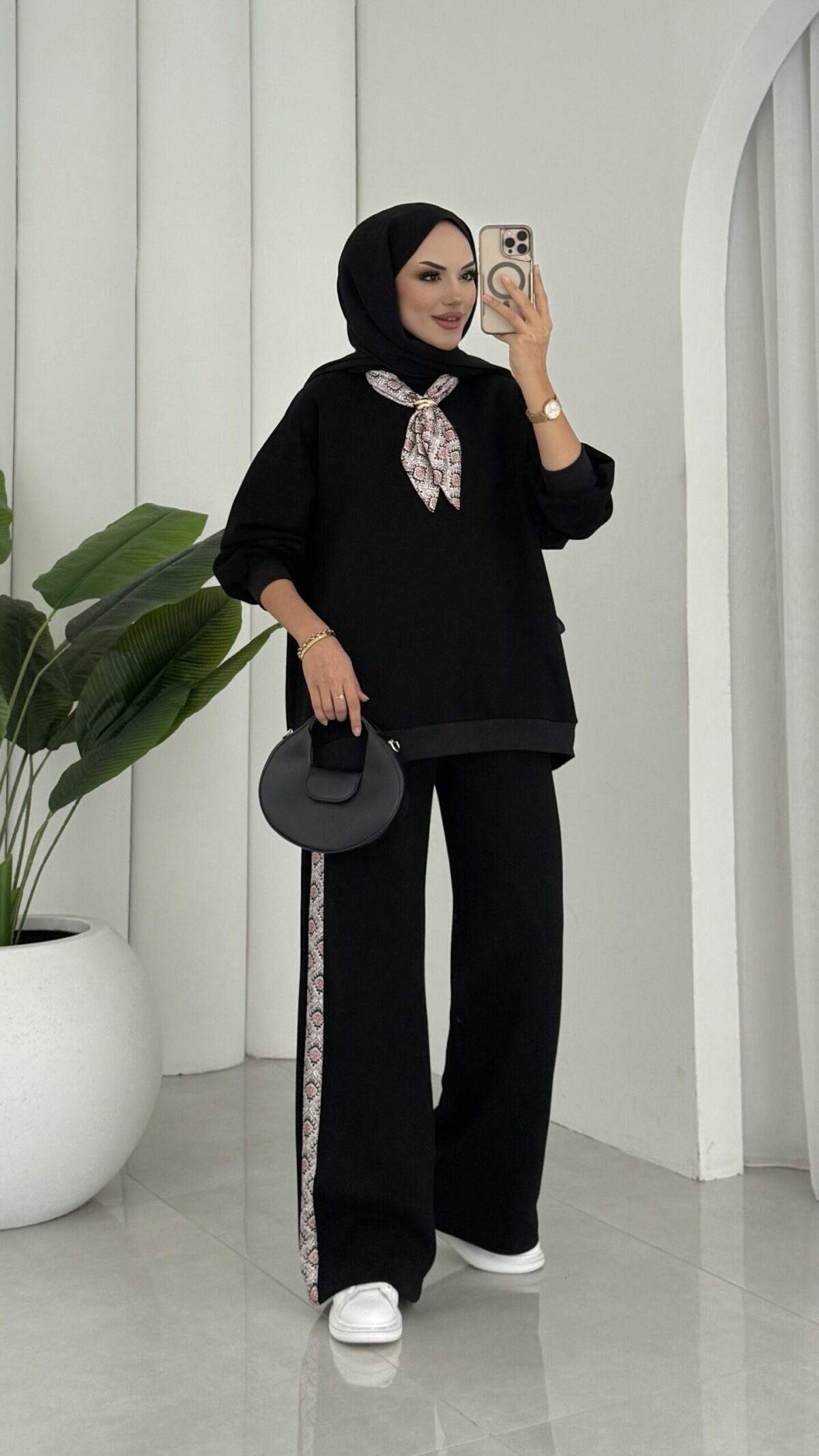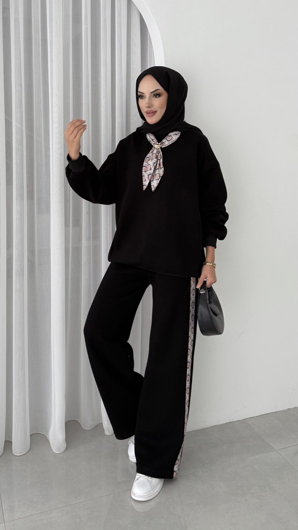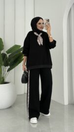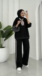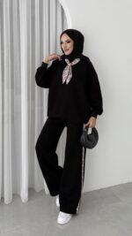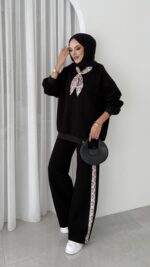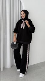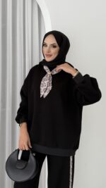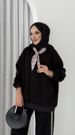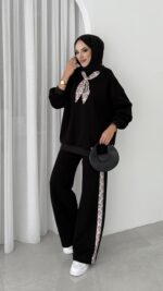 Fular Detaylı Şardonlu Sweat İkili Takım – Siyah