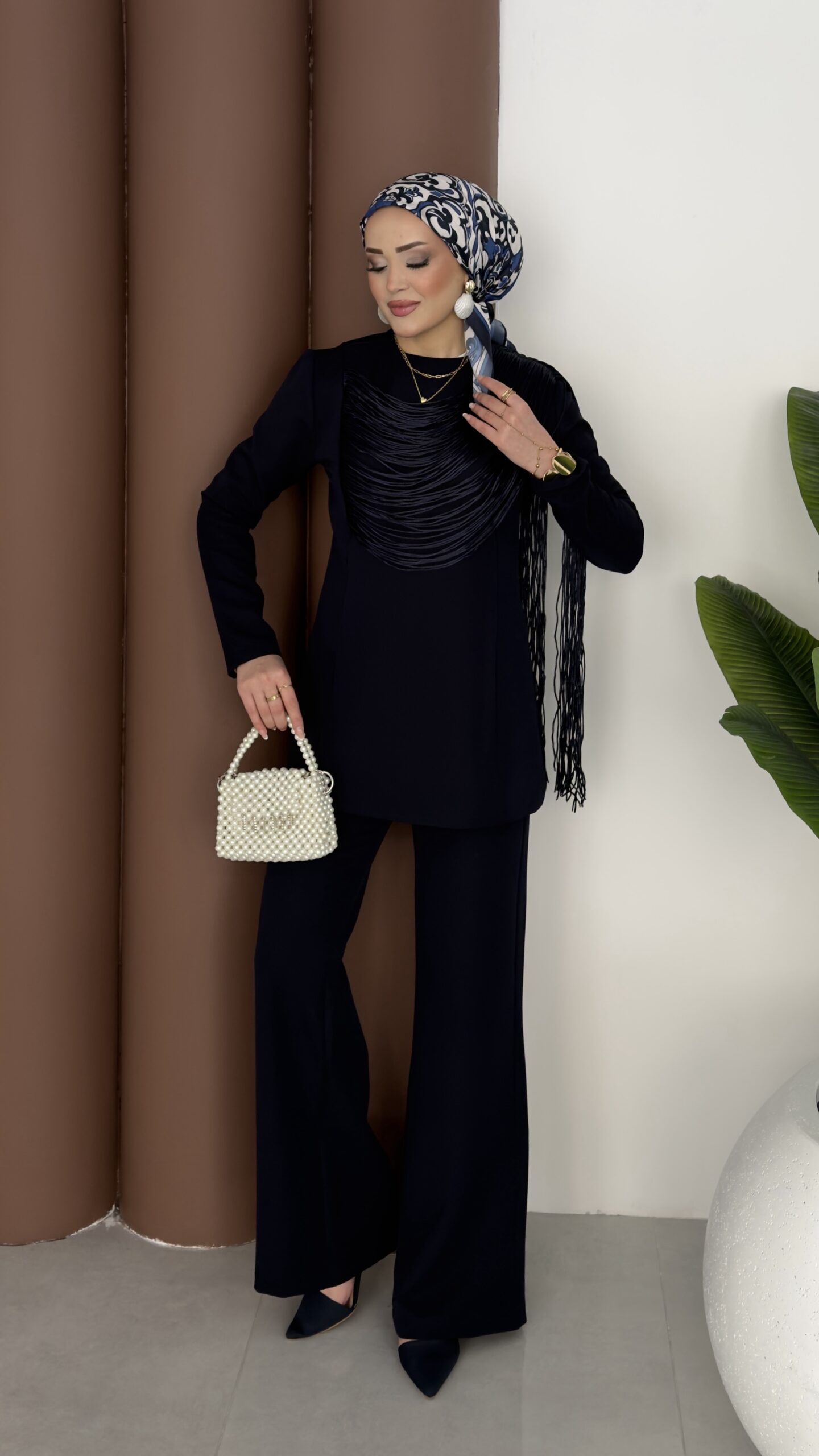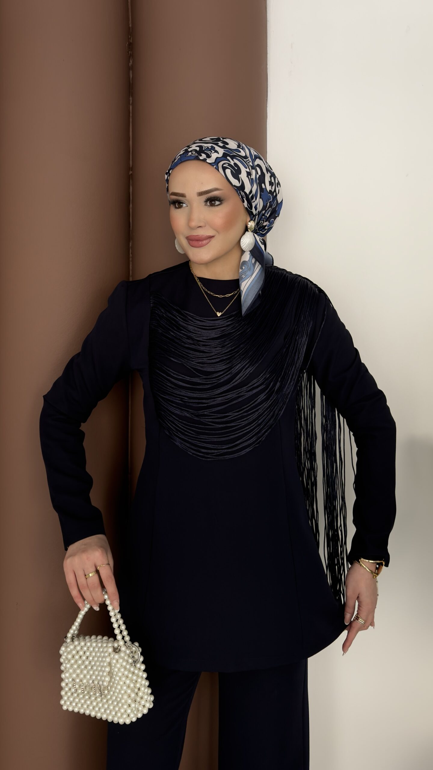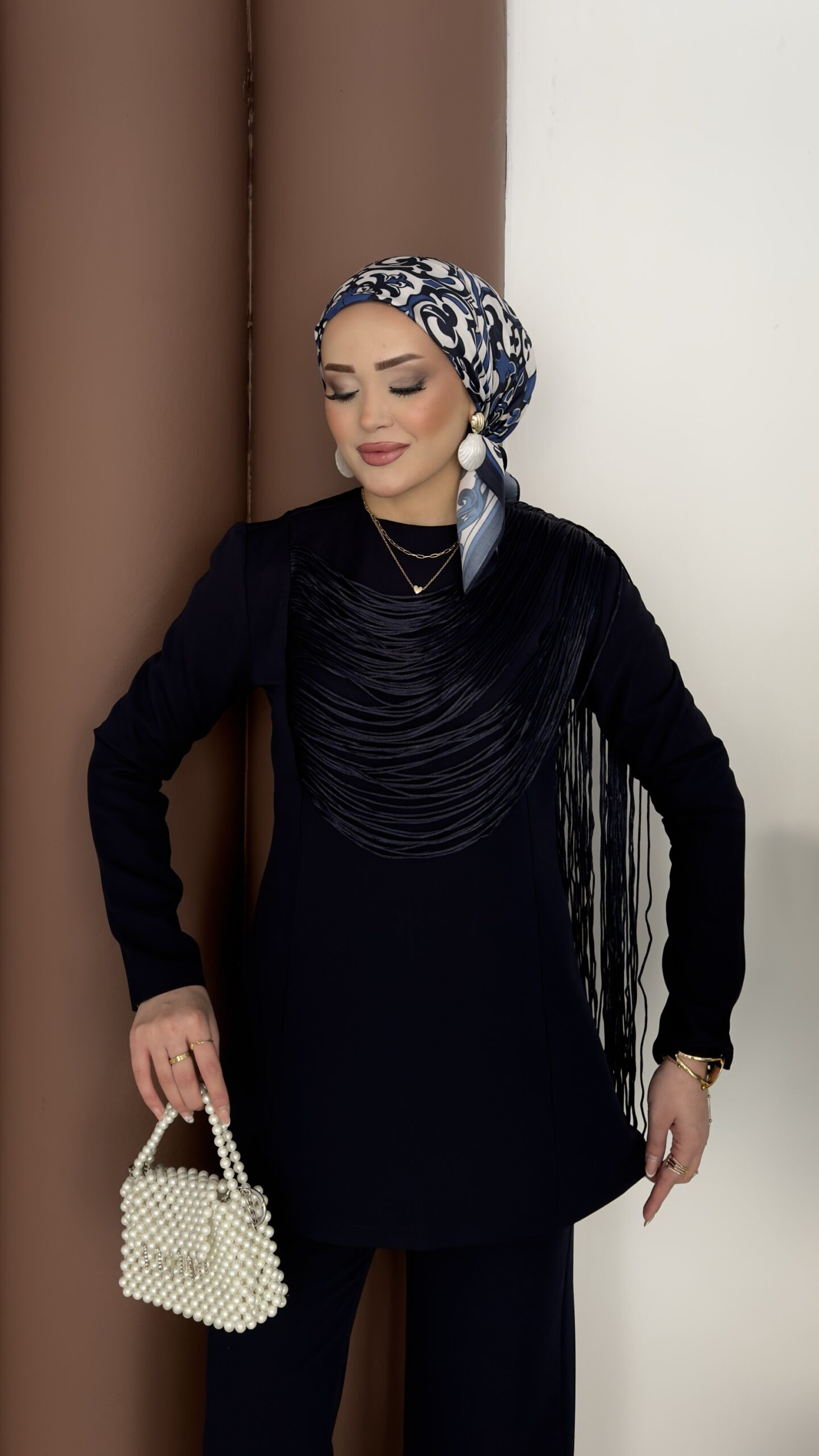 Kuğu Omuzu Püskül İpli İkili Takım – Lacivert