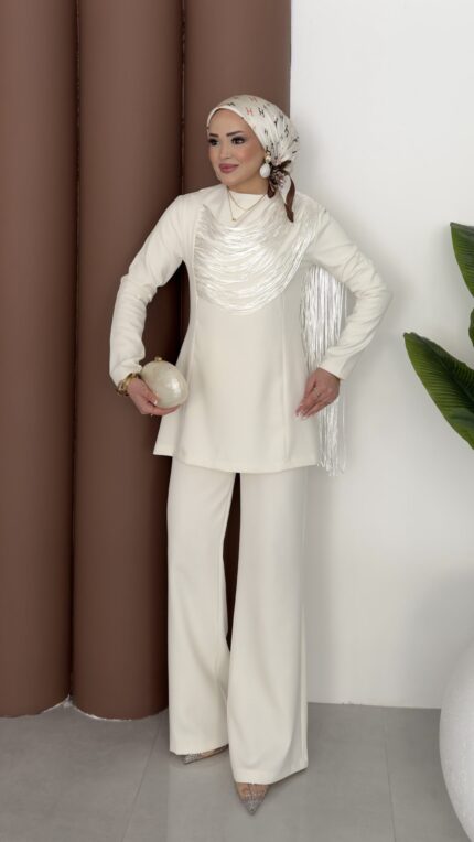 Kuğu Omuzu Püskül İpli İkili Takım – Beyaz