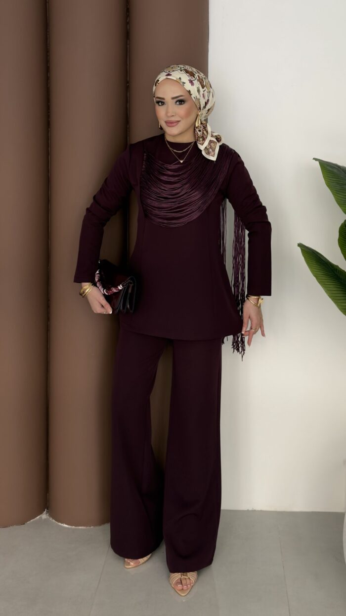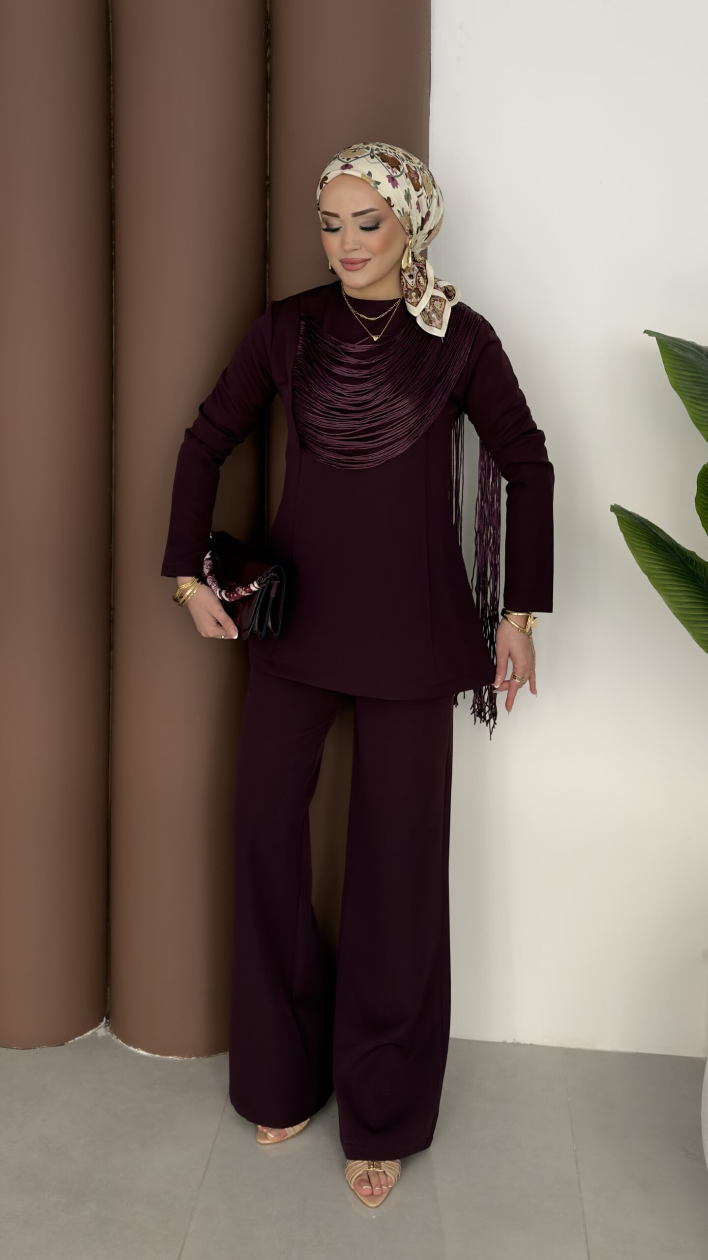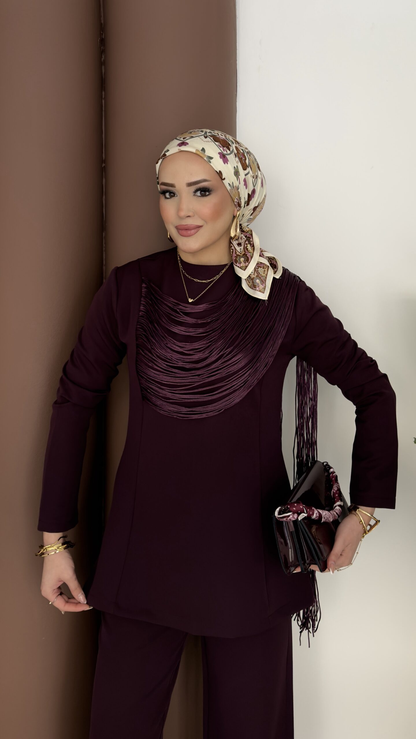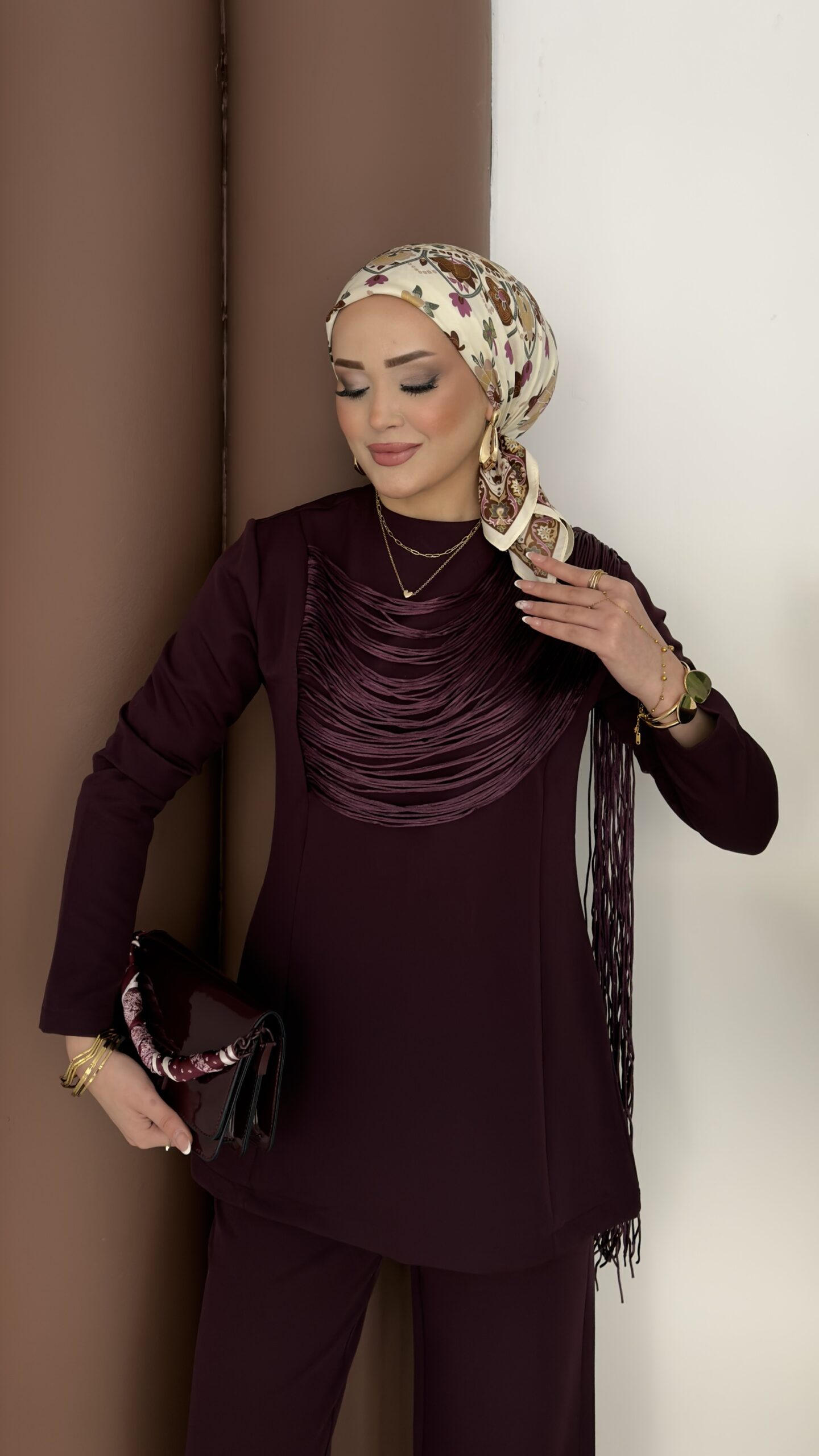 Kuğu Omuzu Püskül İpli İkili Takım – Mürdüm