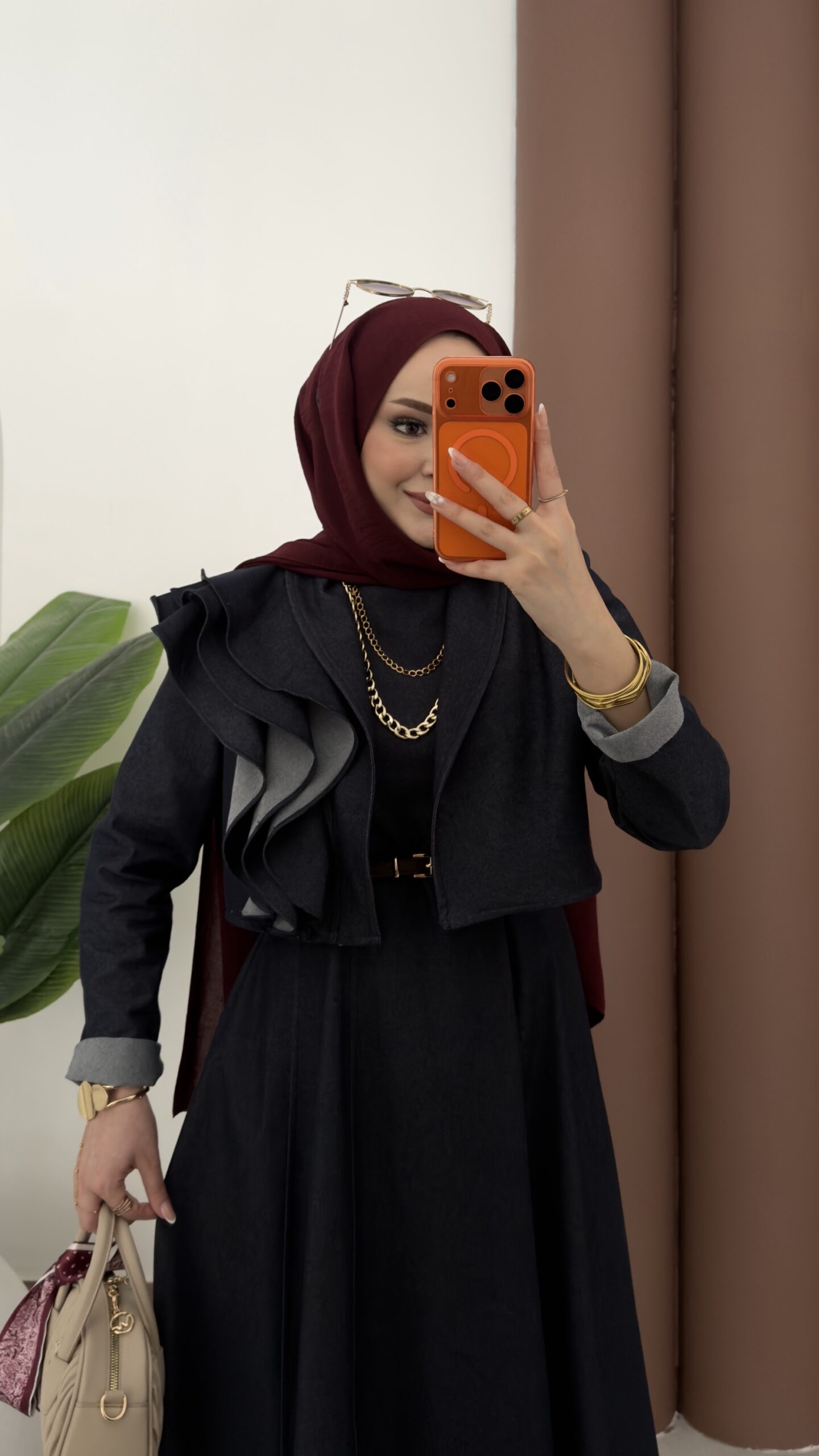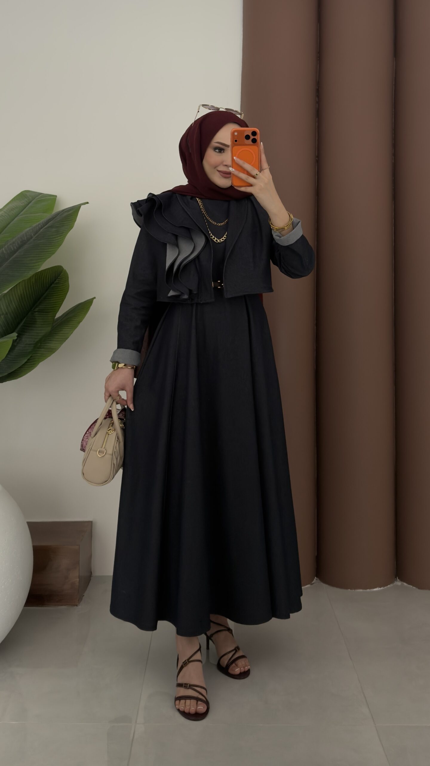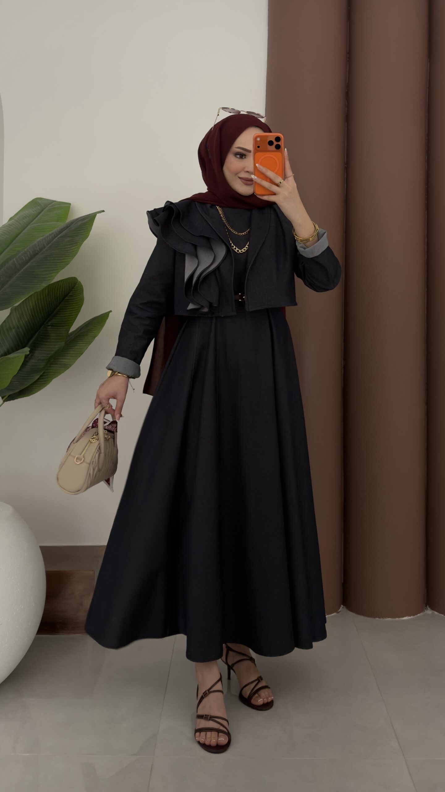 Laira Fırfırlı Ceketli Jile Elbise – Lacivert