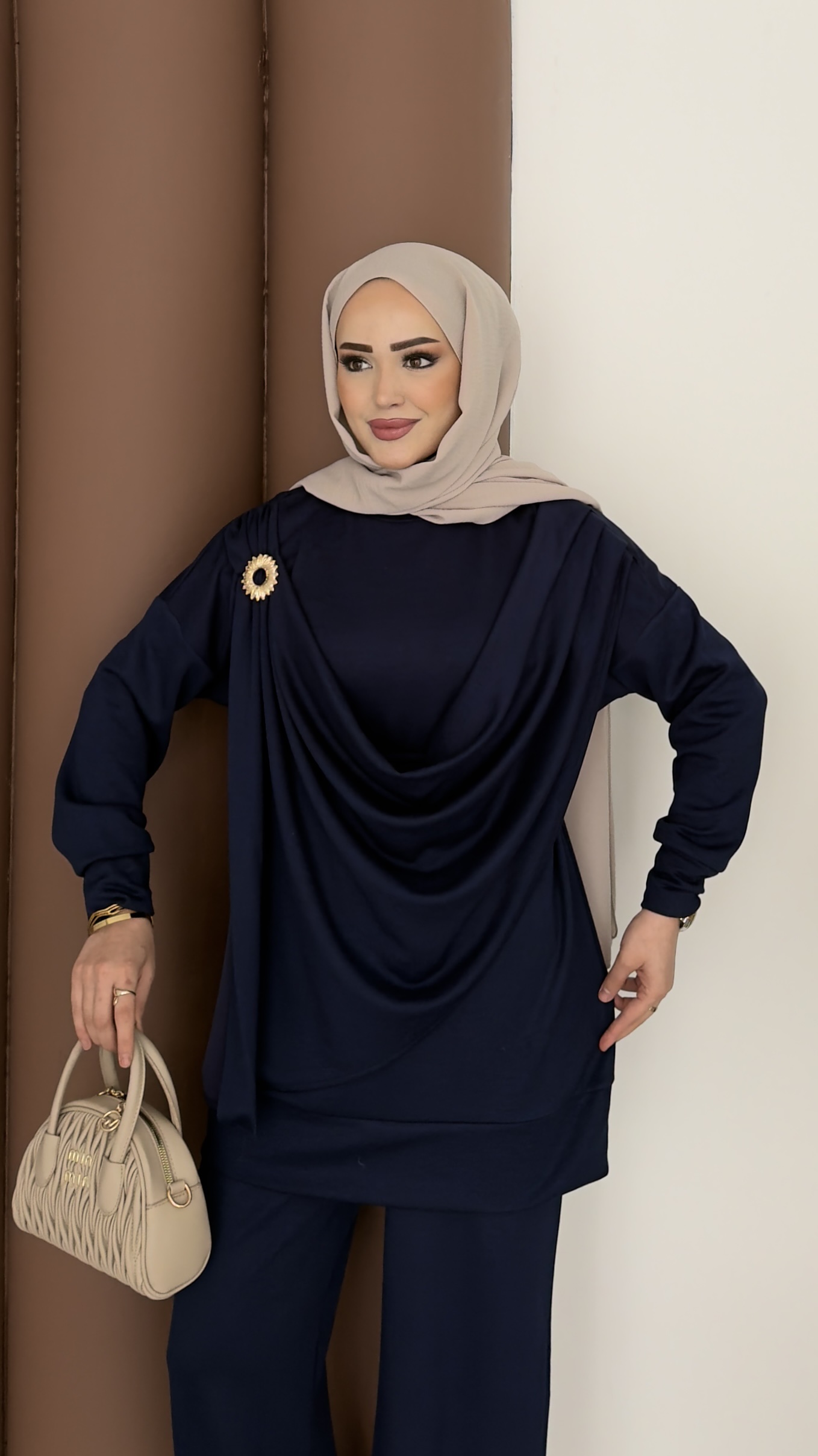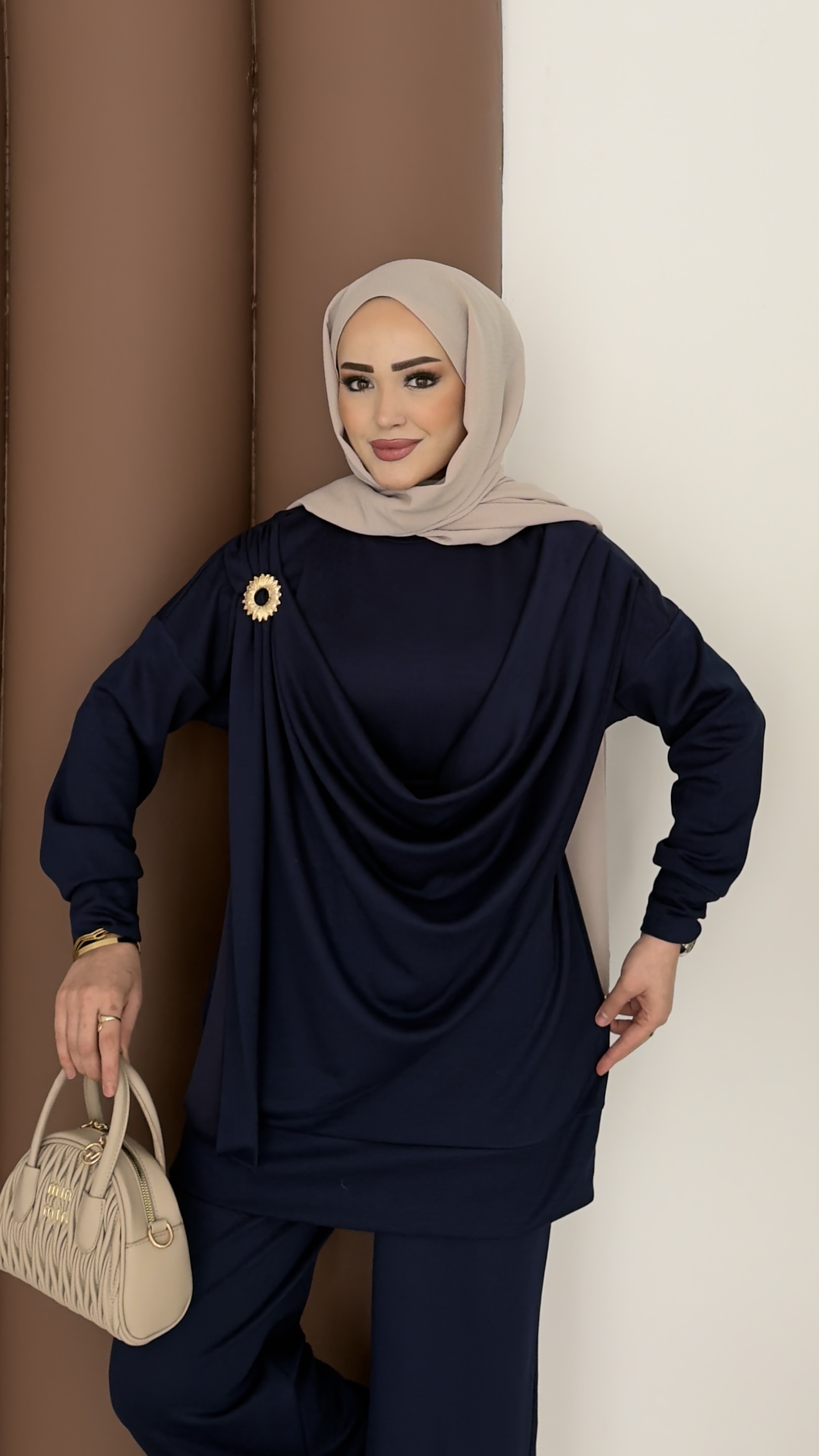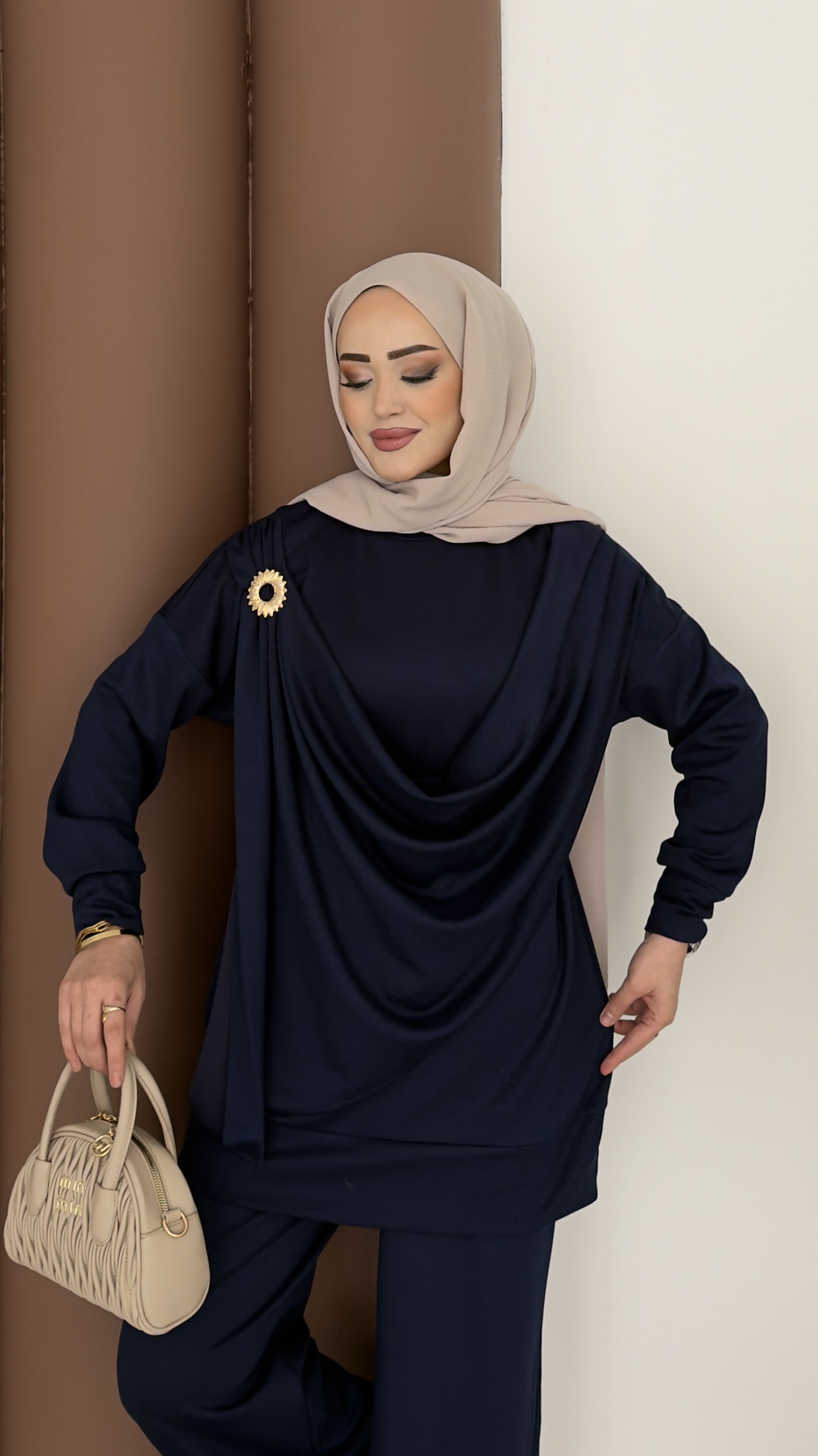 Lili Döküm Yaka Oysh İkili Takım - Kahverengi