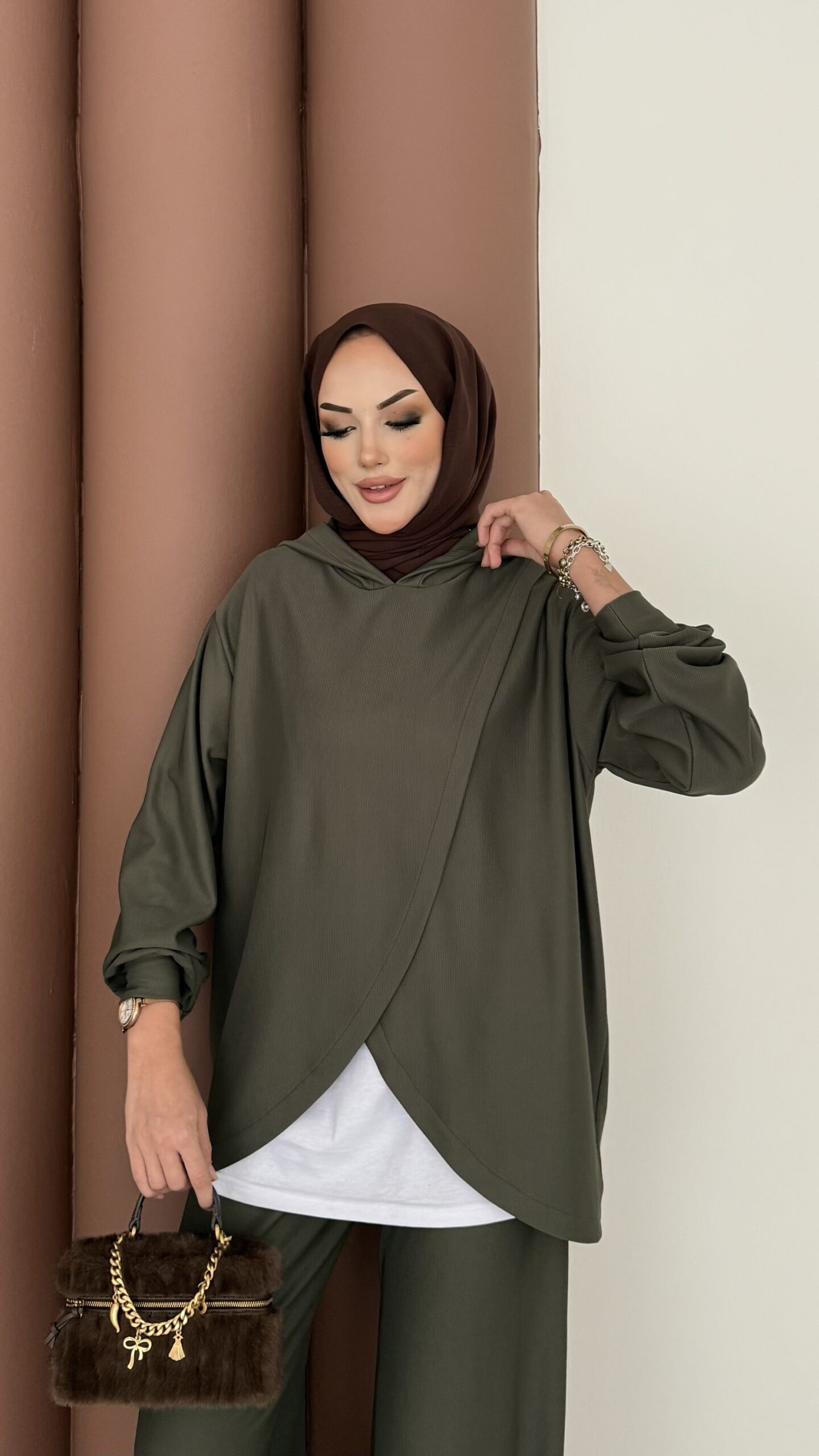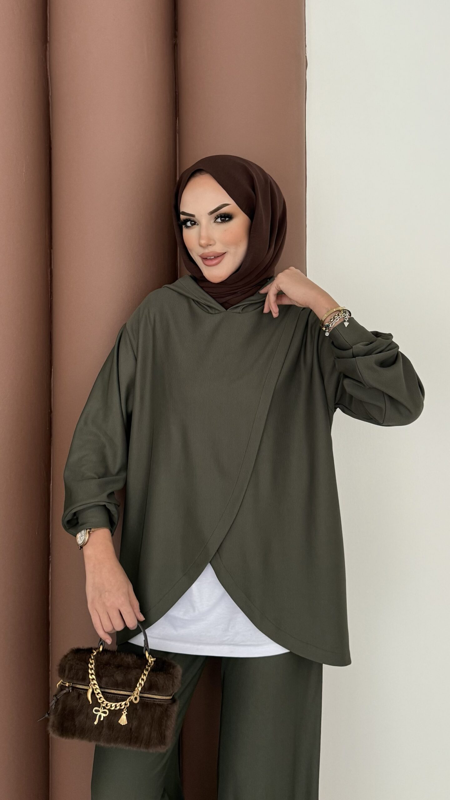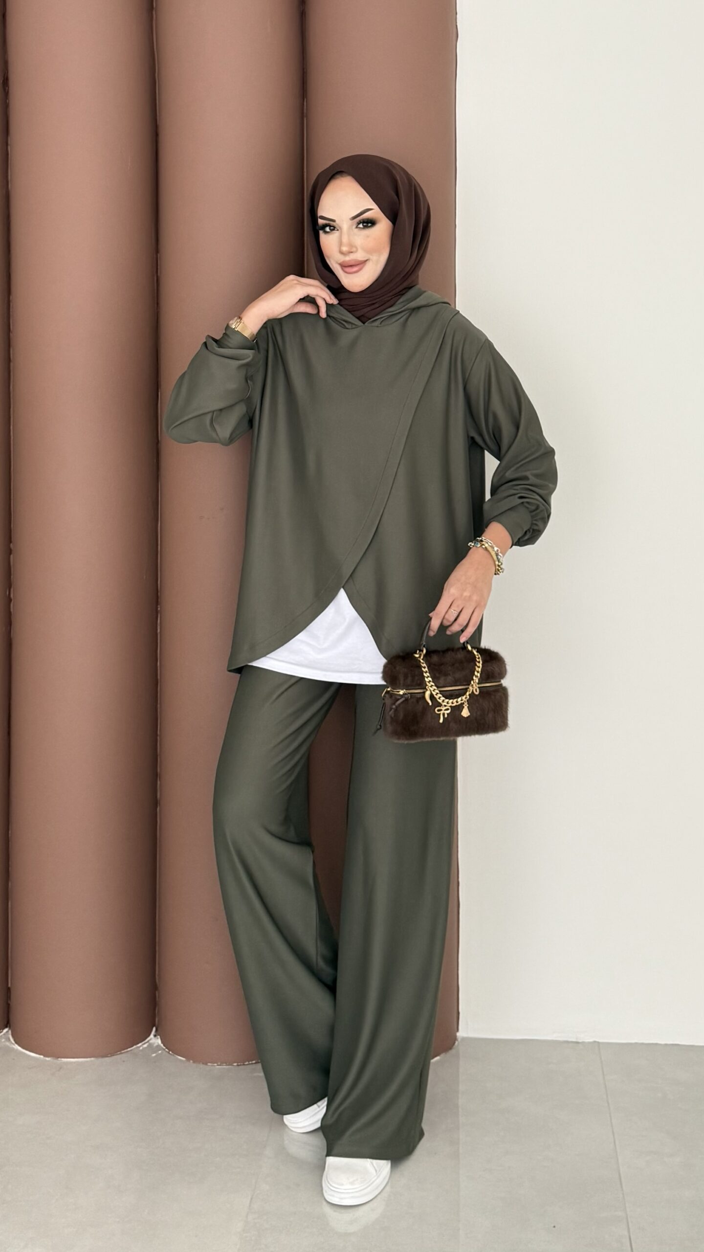 Mega Fitilli Kadife İkili Takım – Haki