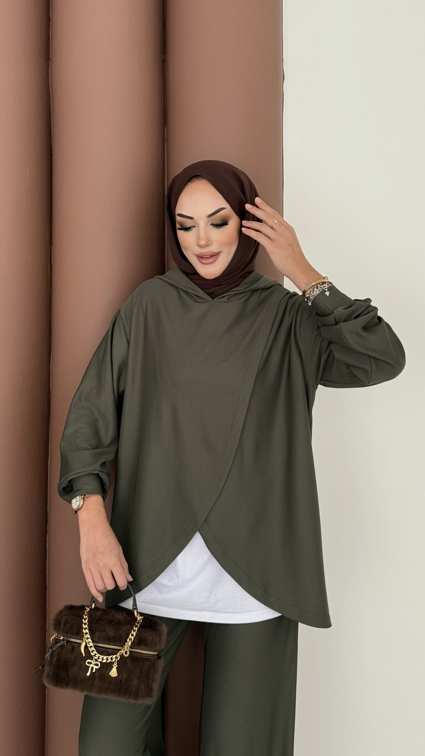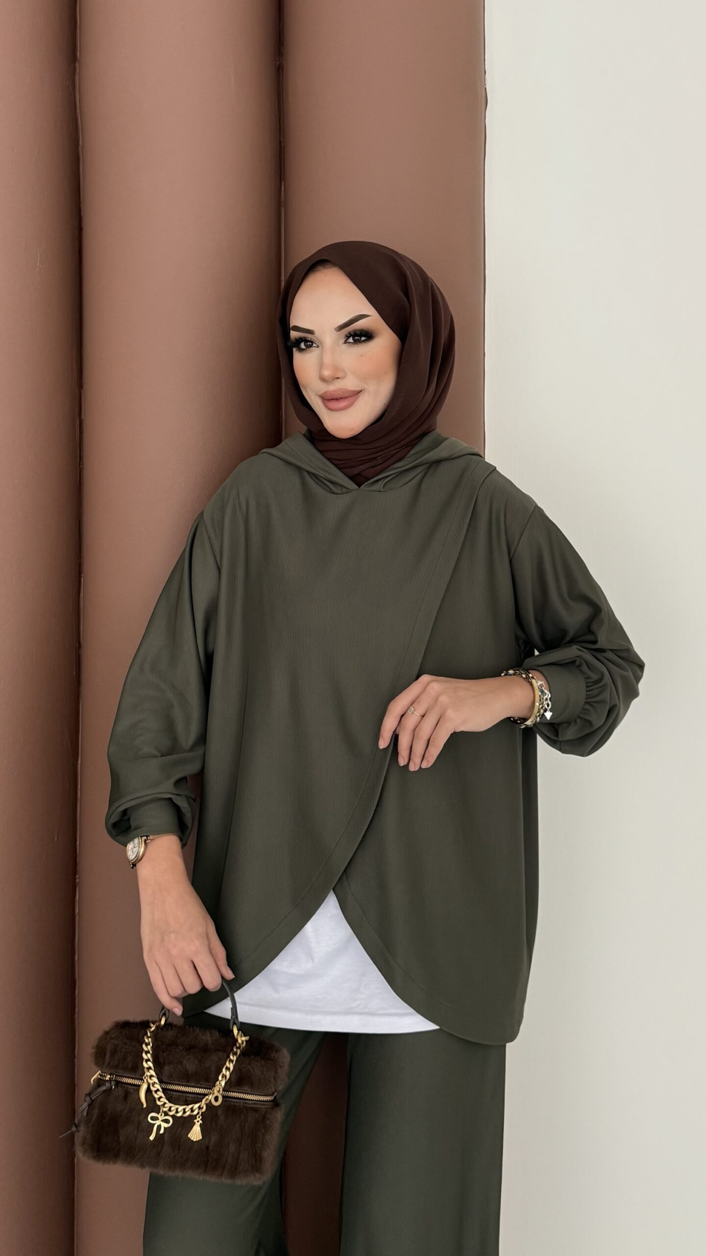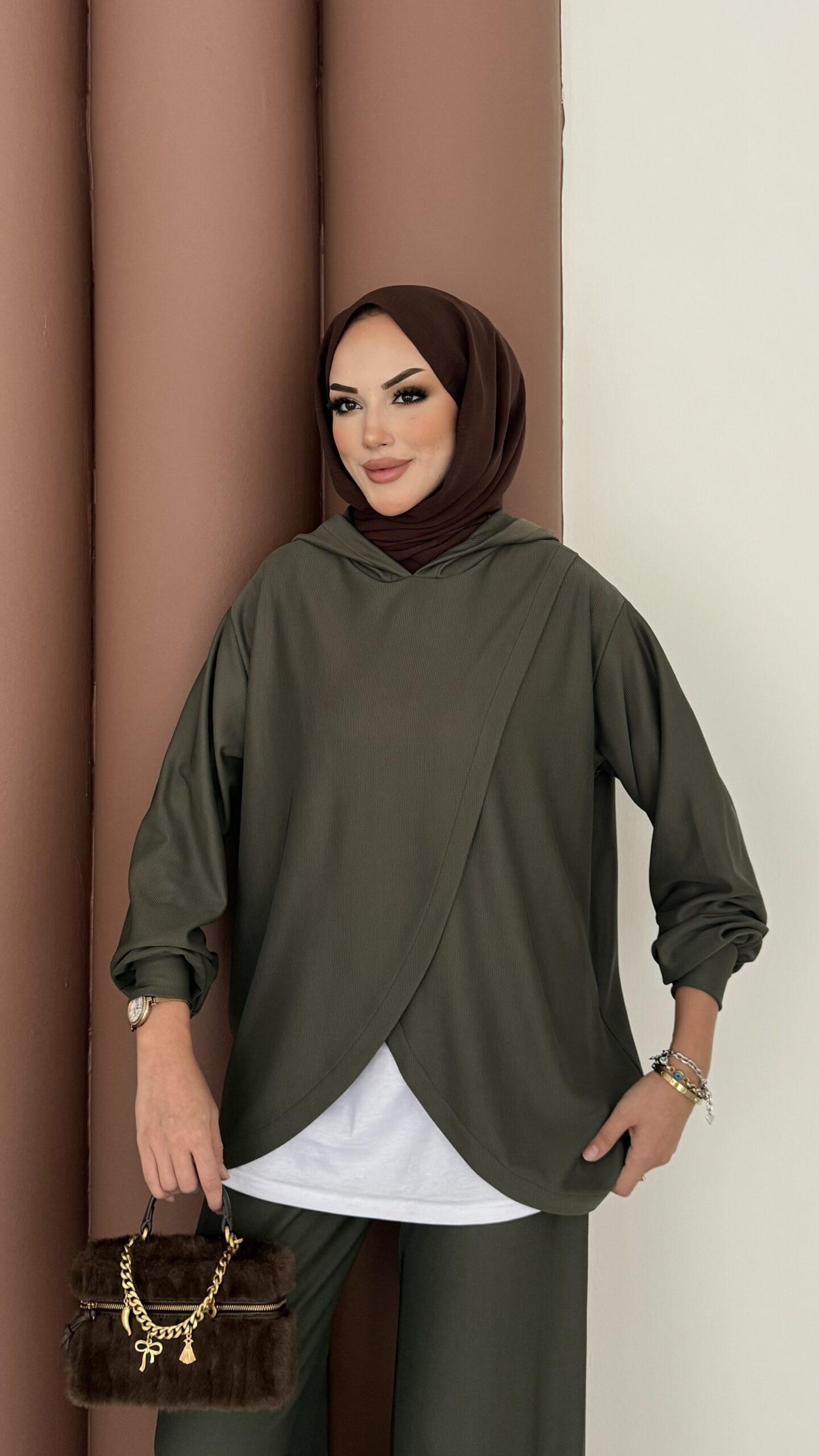 Mega Fitilli Kadife İkili Takım – Haki