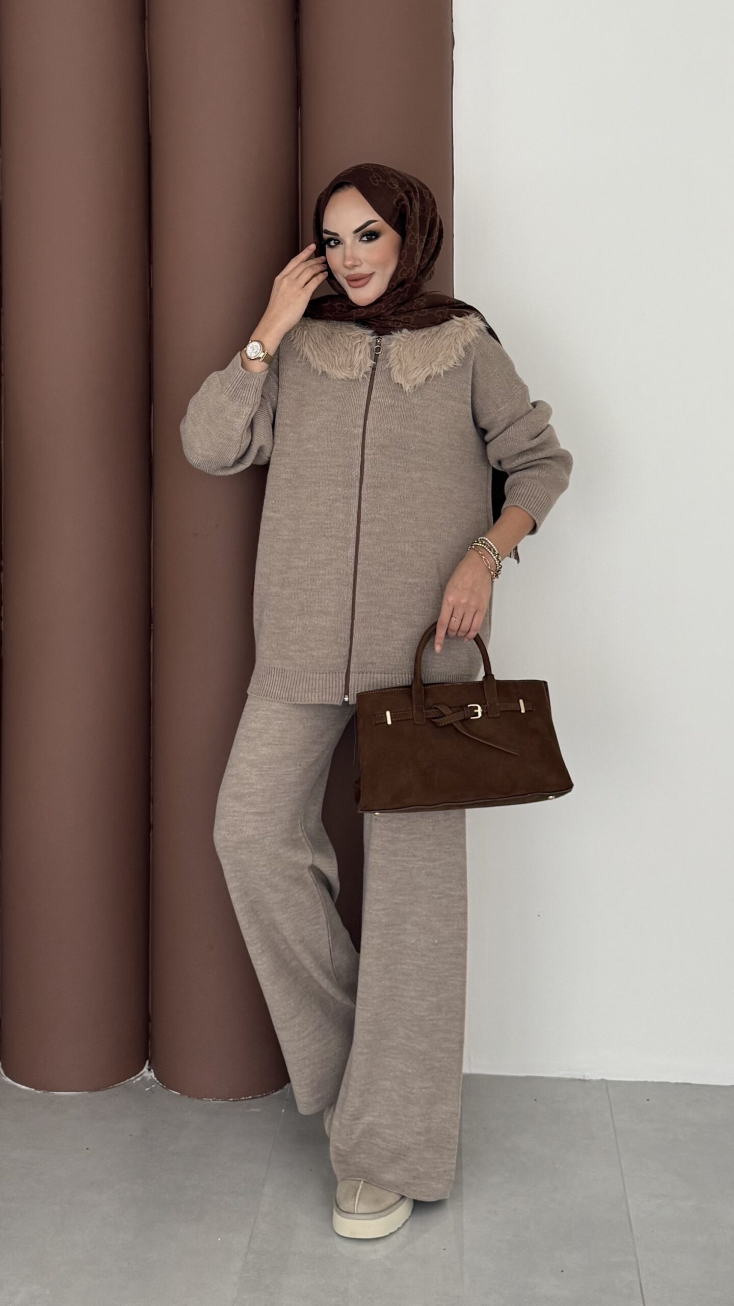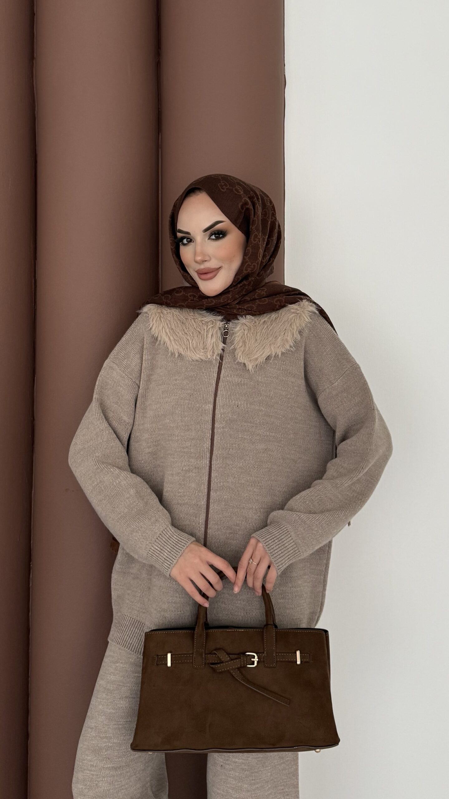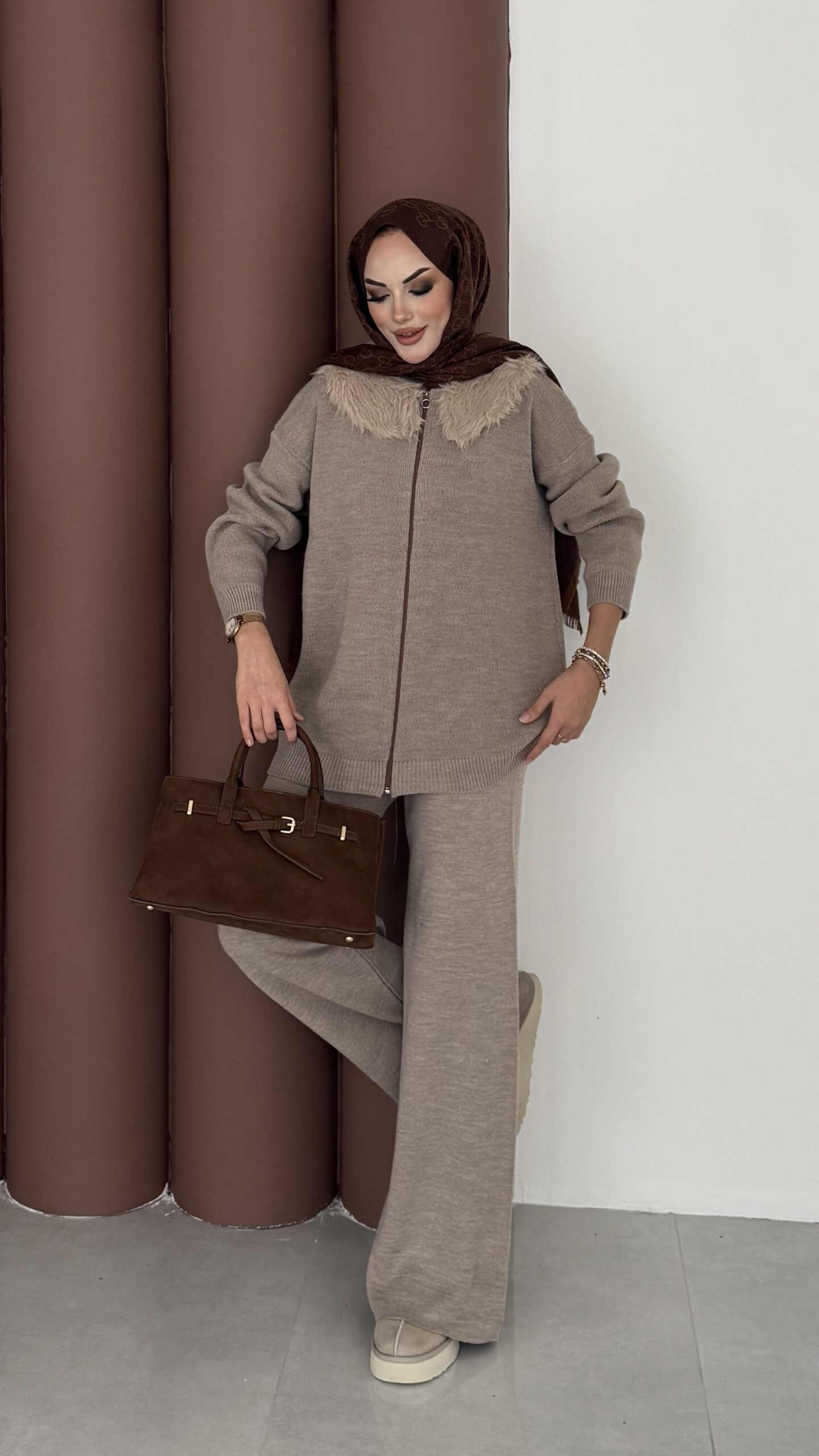 Lolita Çıkarılabilir Kürklü Triko İkili Takım – Latte