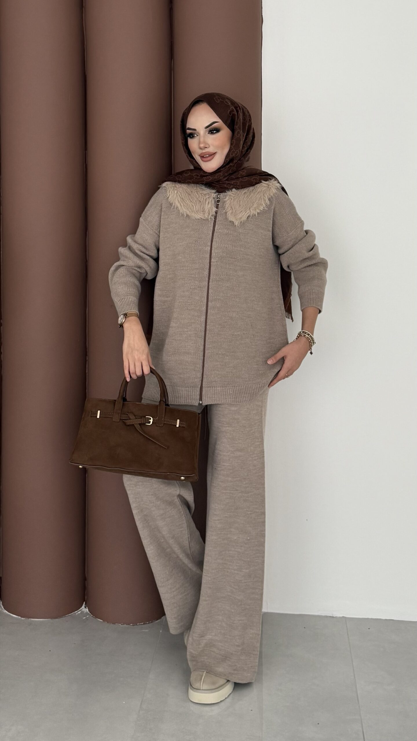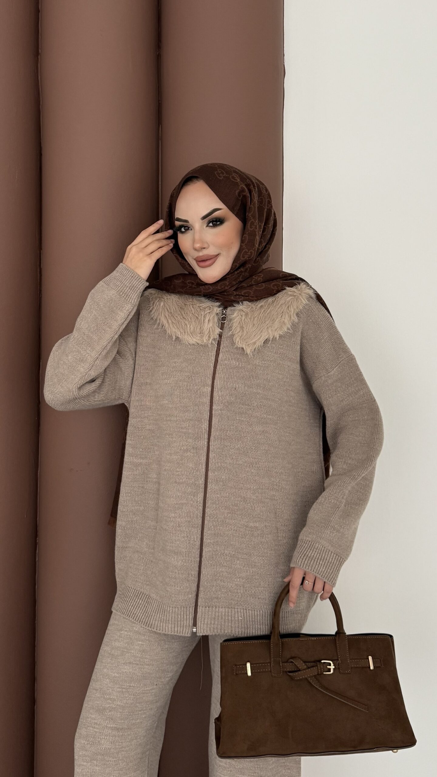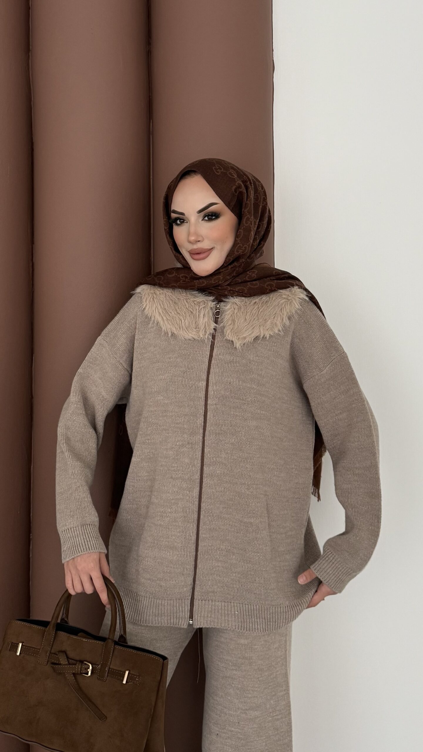Lolita Çıkarılabilir Kürklü Triko İkili Takım – Latte