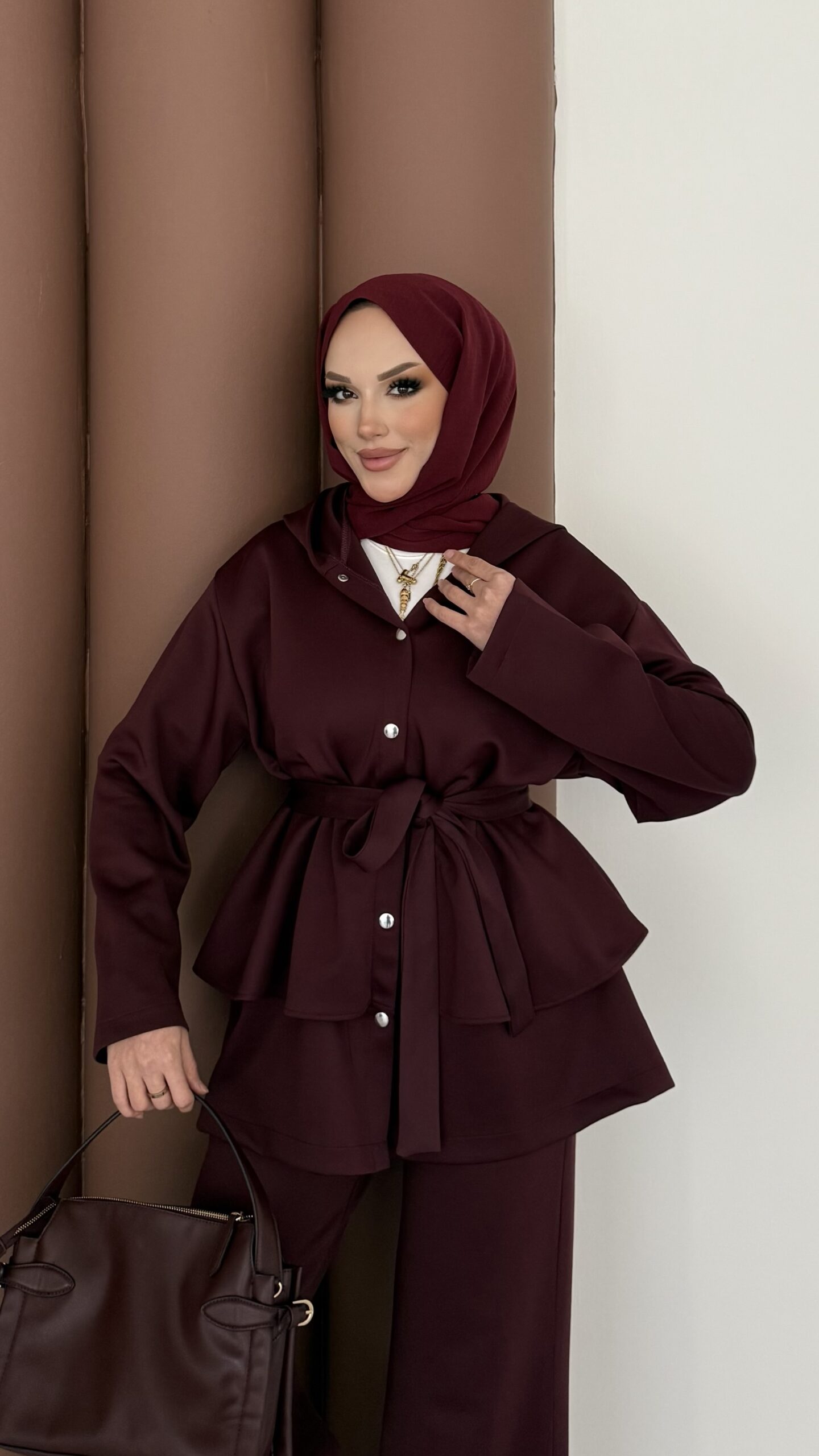Blok Premium Şardonlu Ceket İkili Takım – Bordo