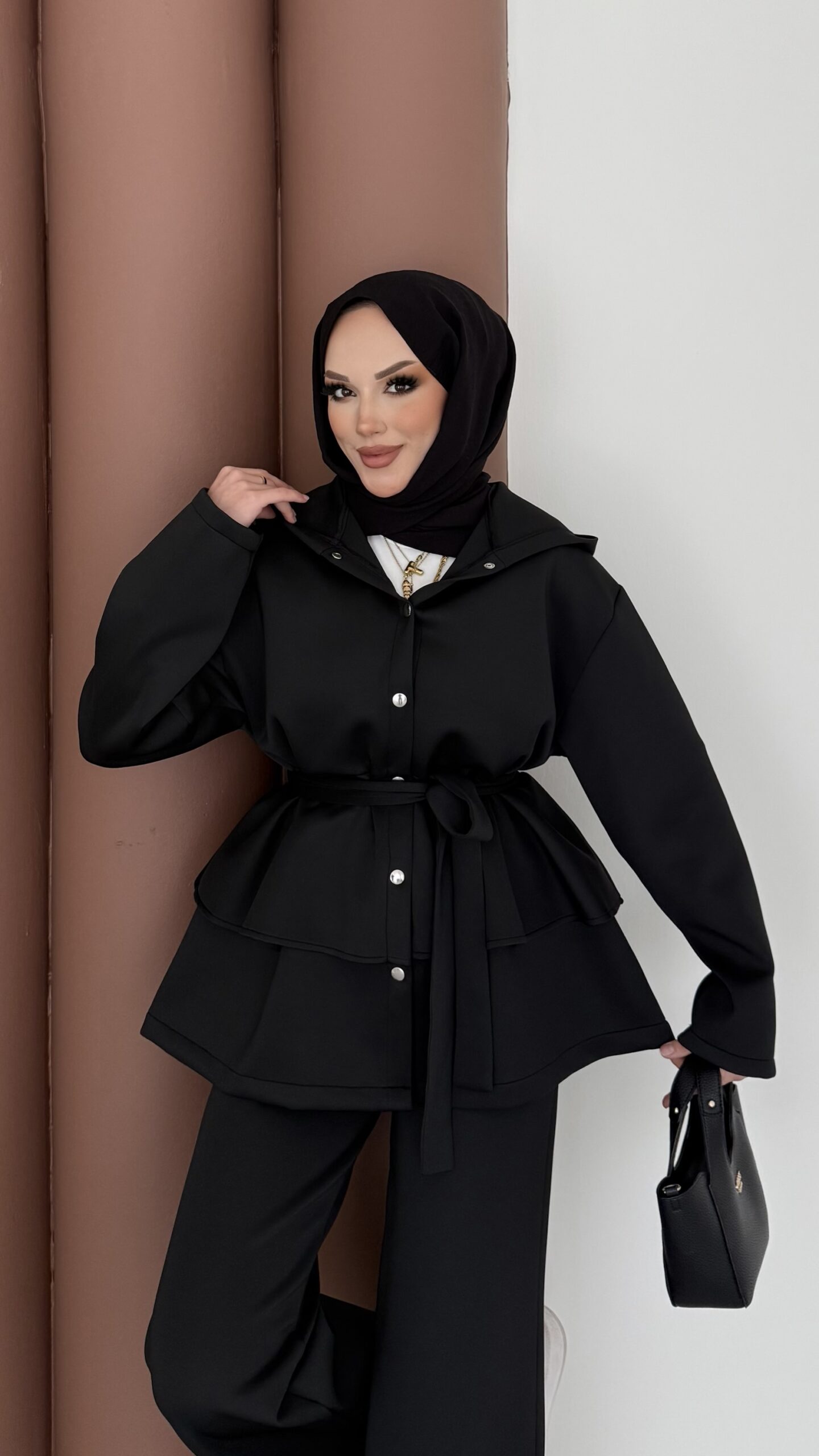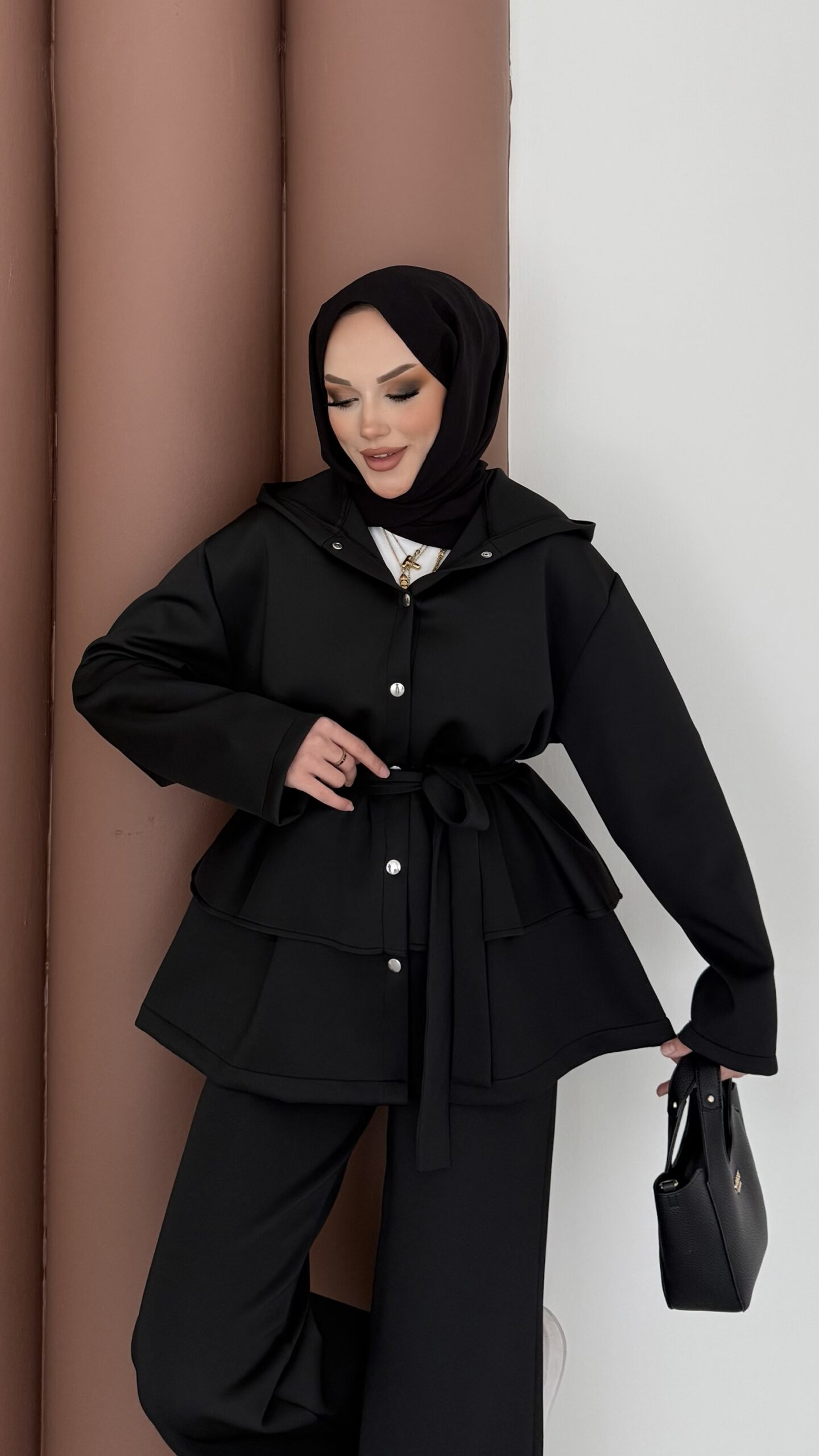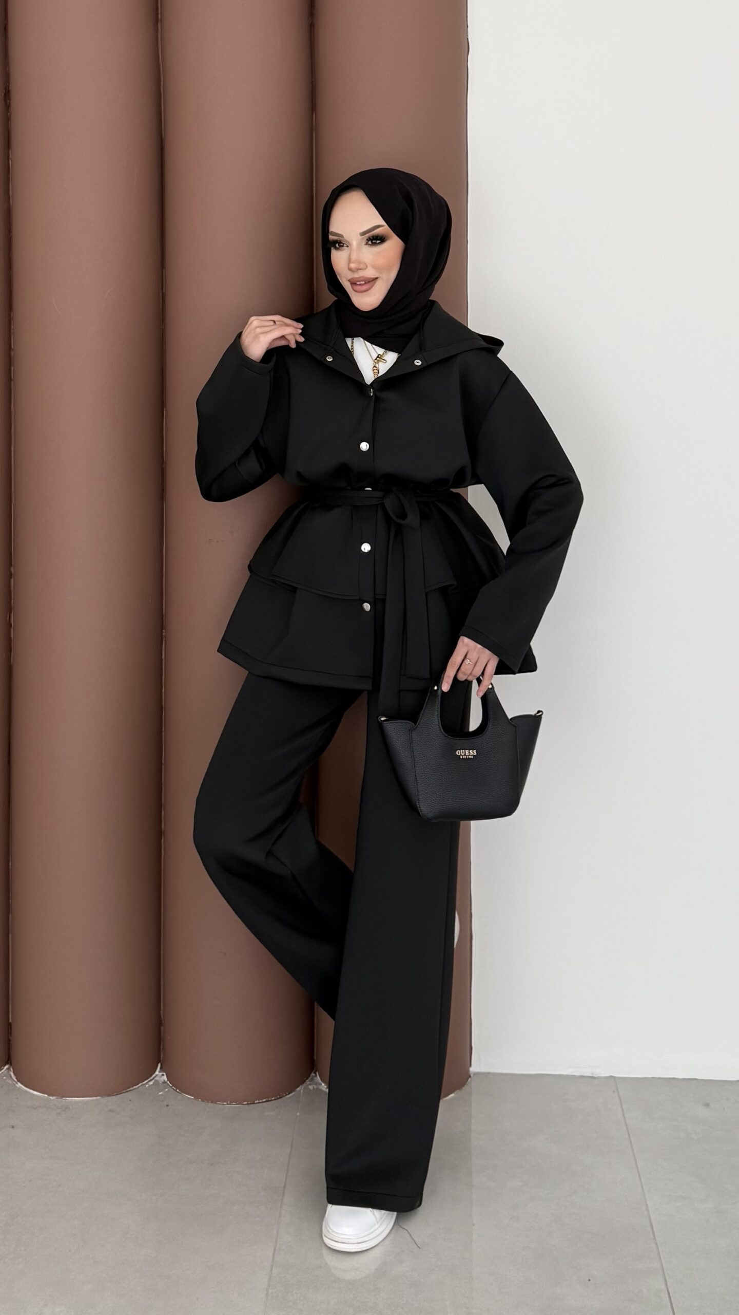 Bondi Vatkalı Çıtçıtlı Scuba İkili Takım - Siyah