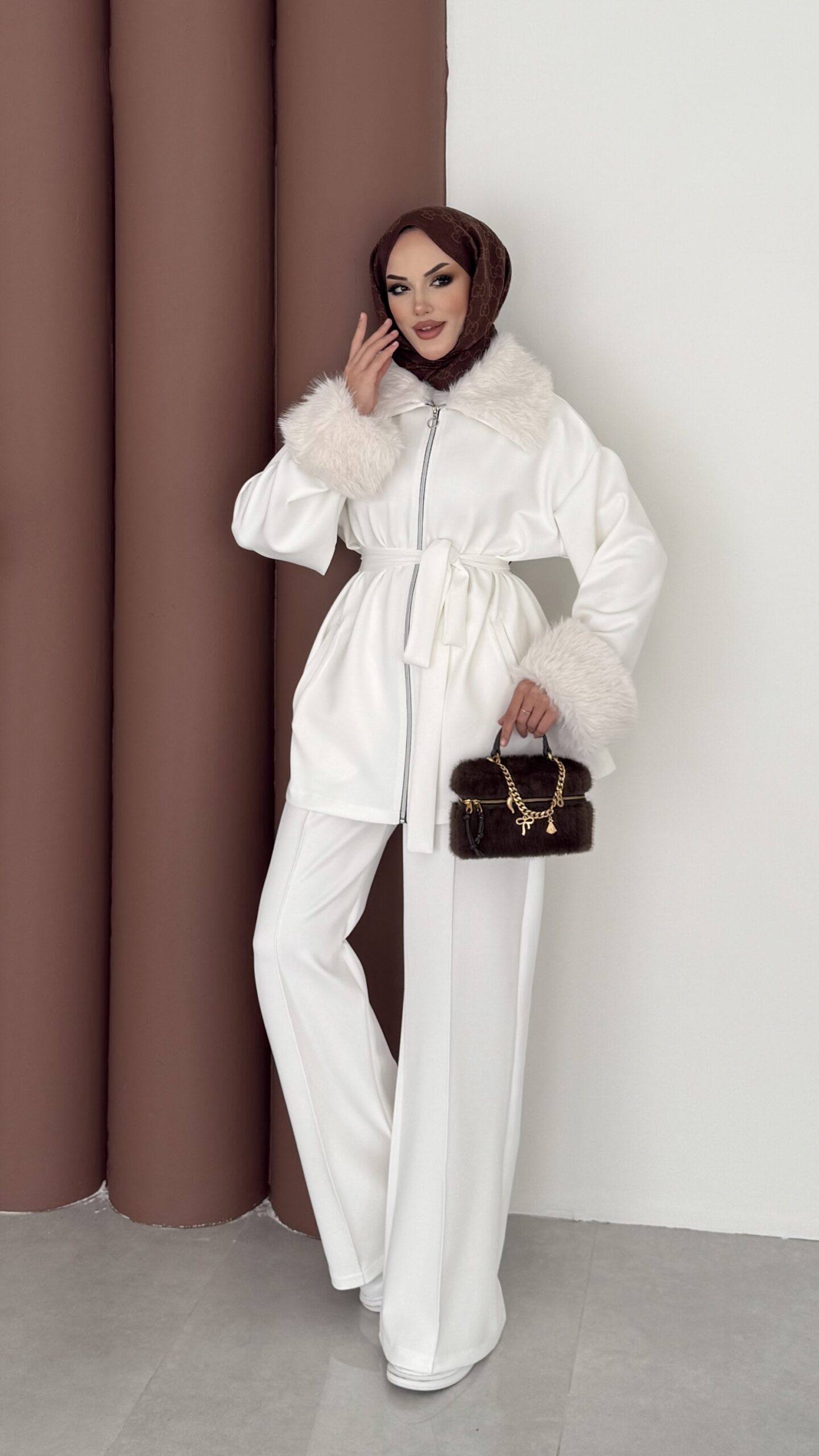 Luxury Kürklü Scuba İkli Takım – Beyaz