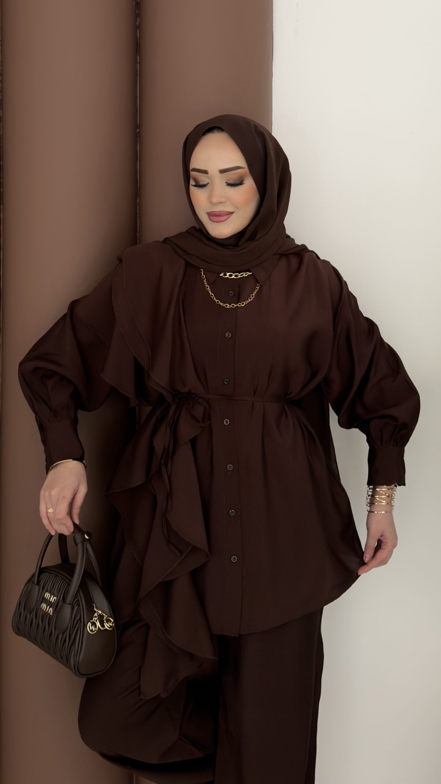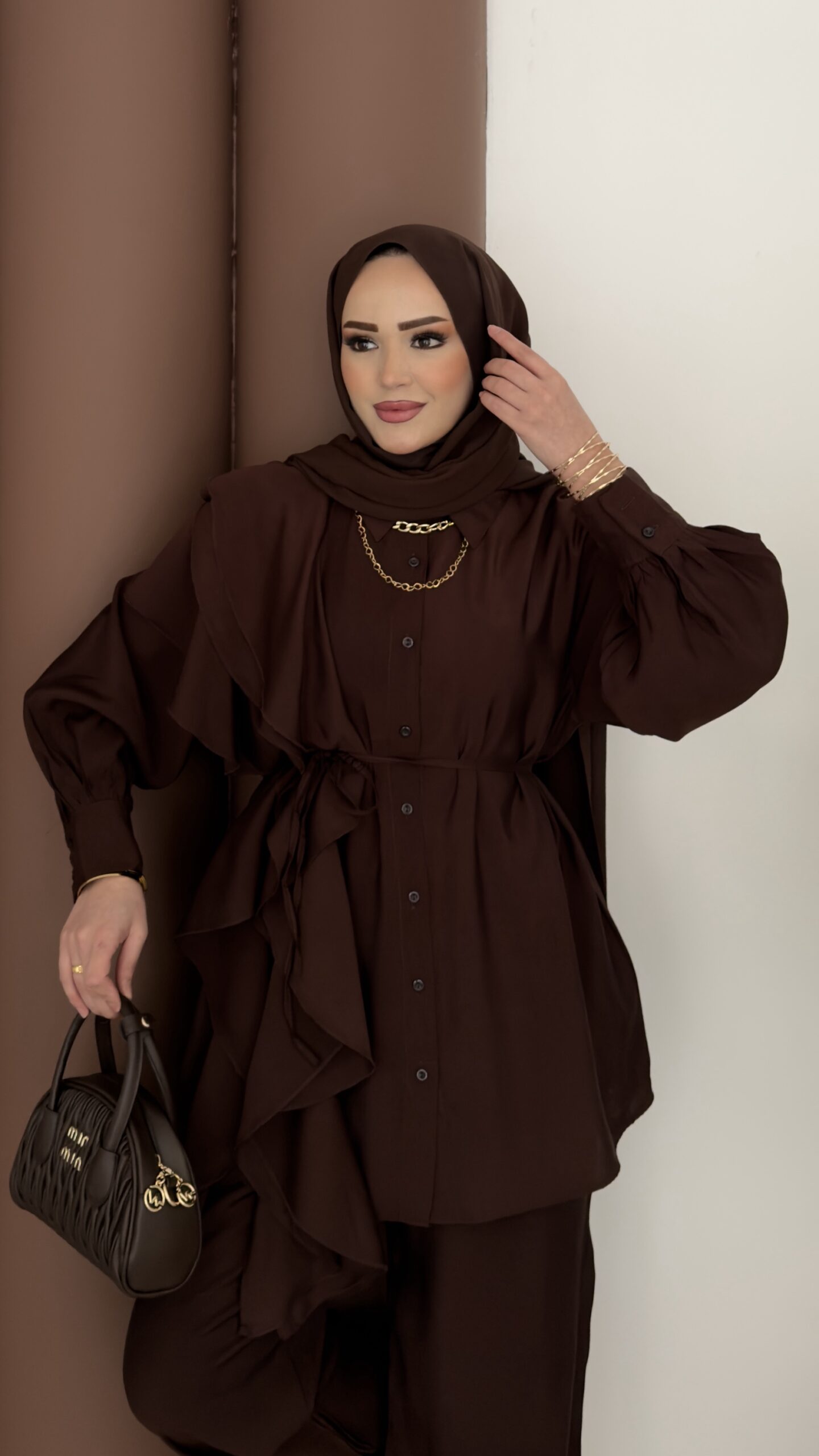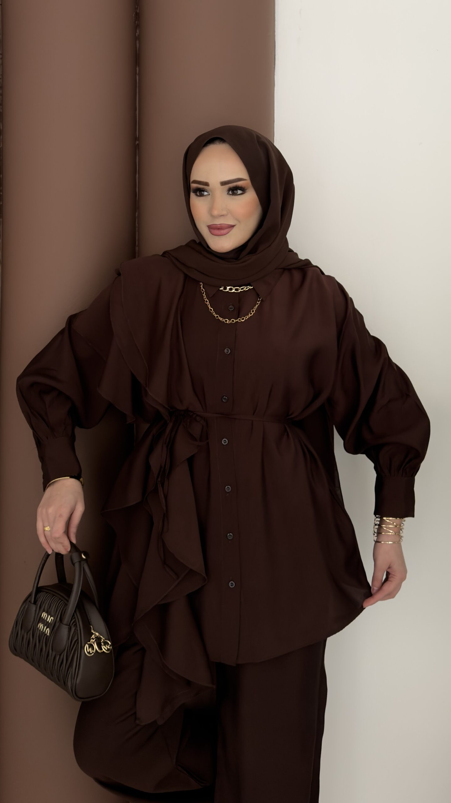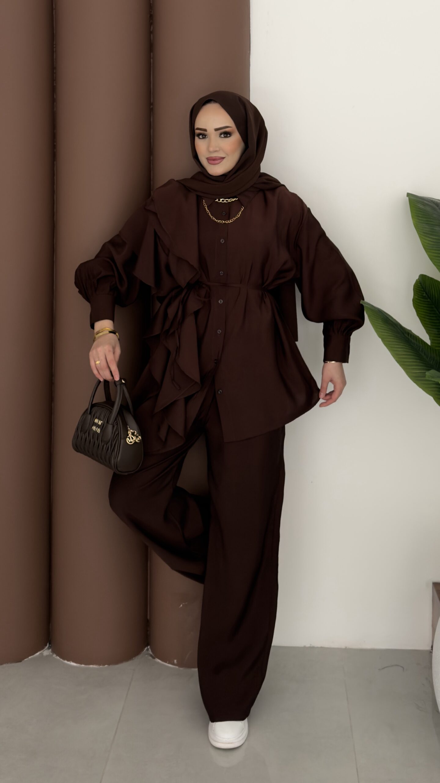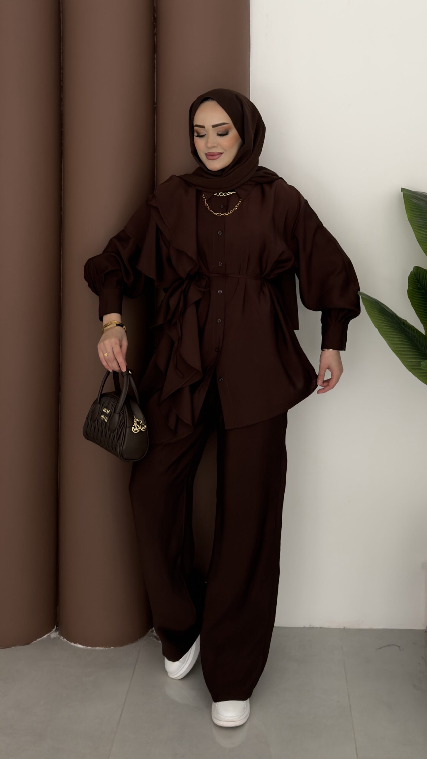 Maison Fırfırlı Tensel İkili Takım – Kahverengi