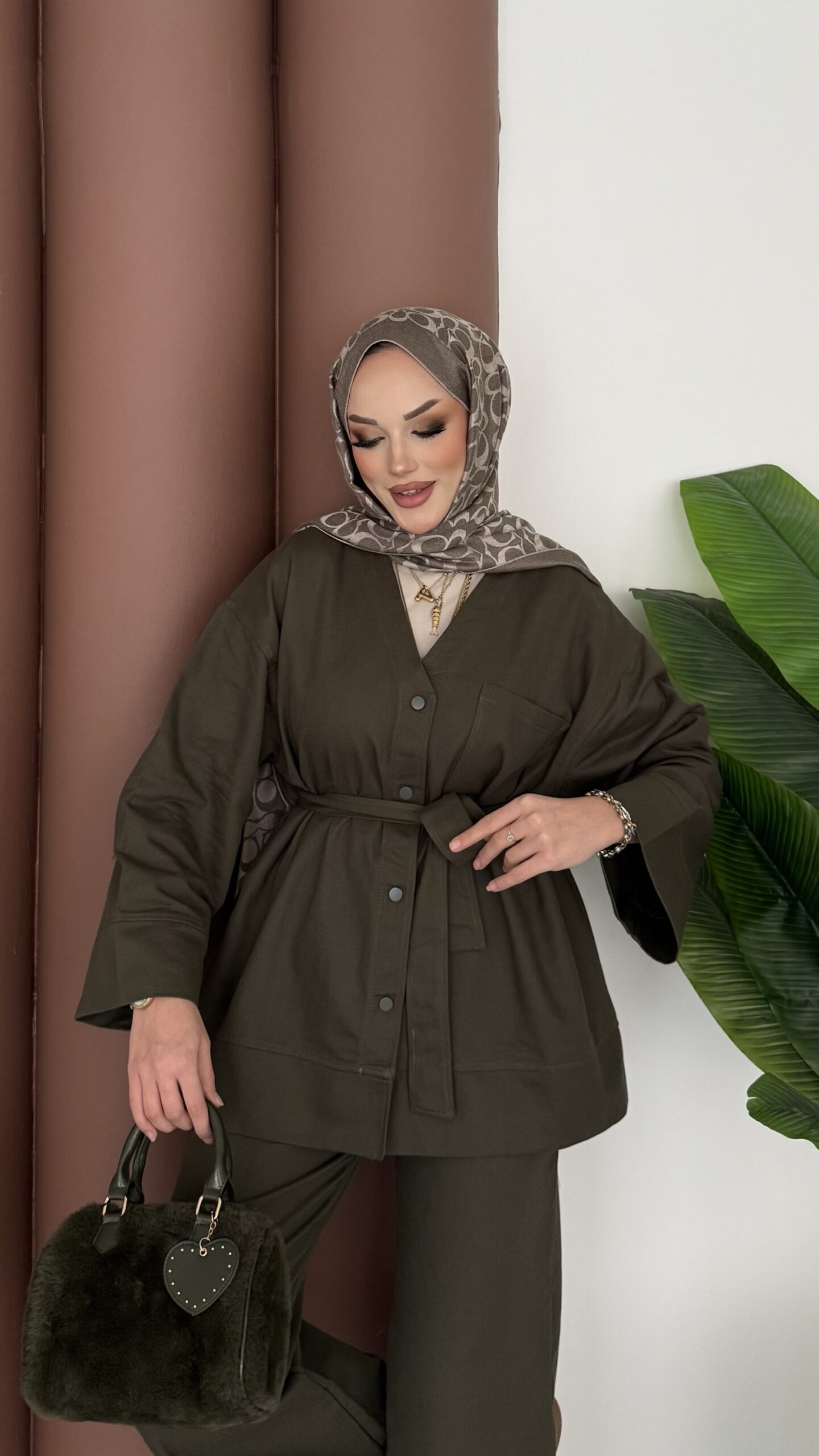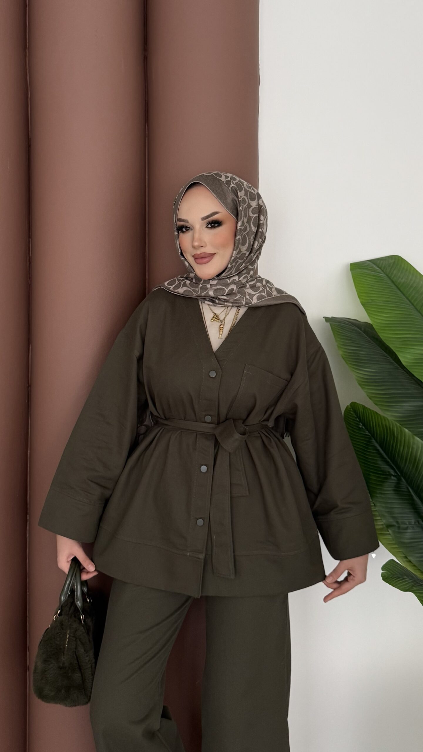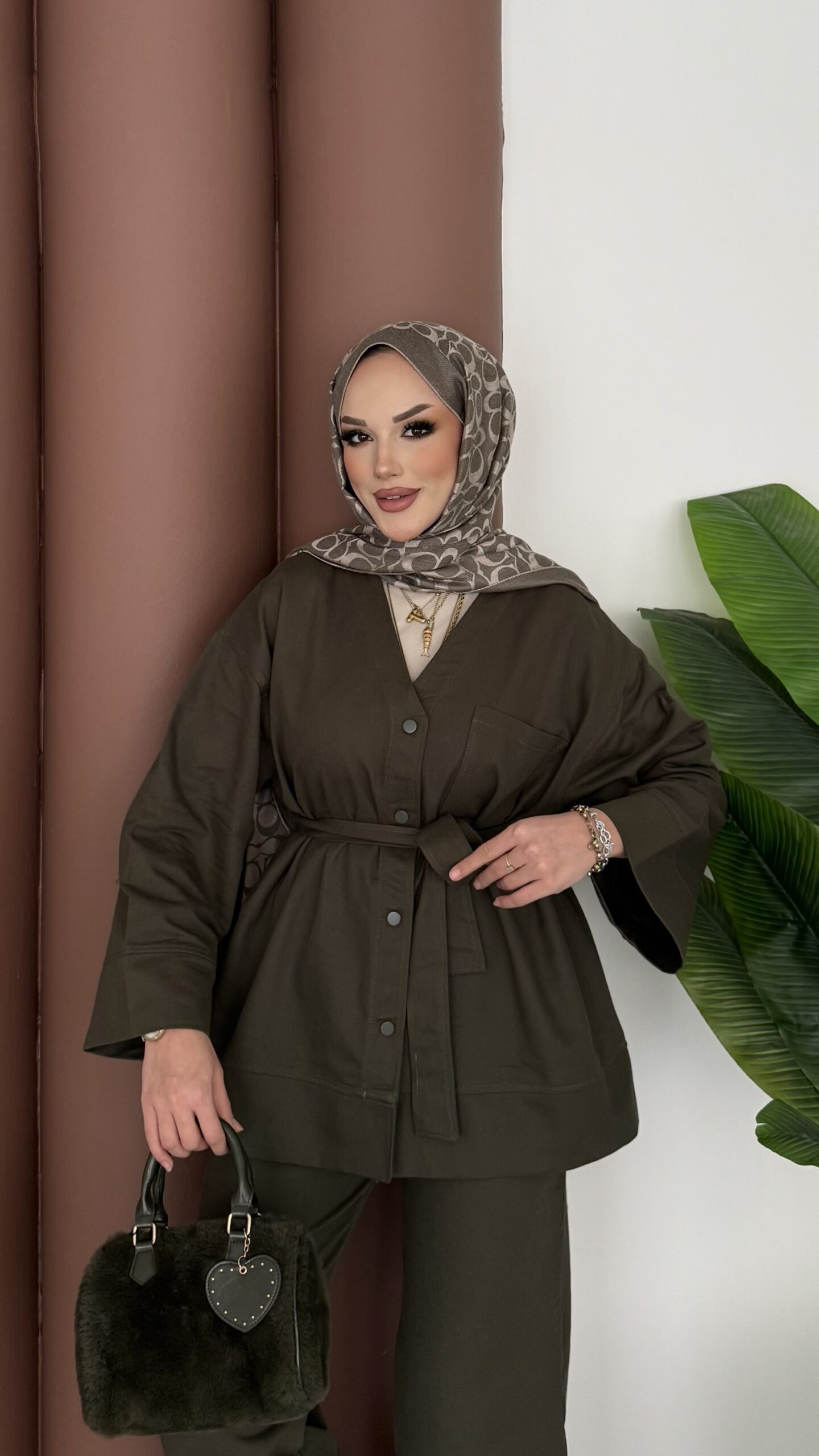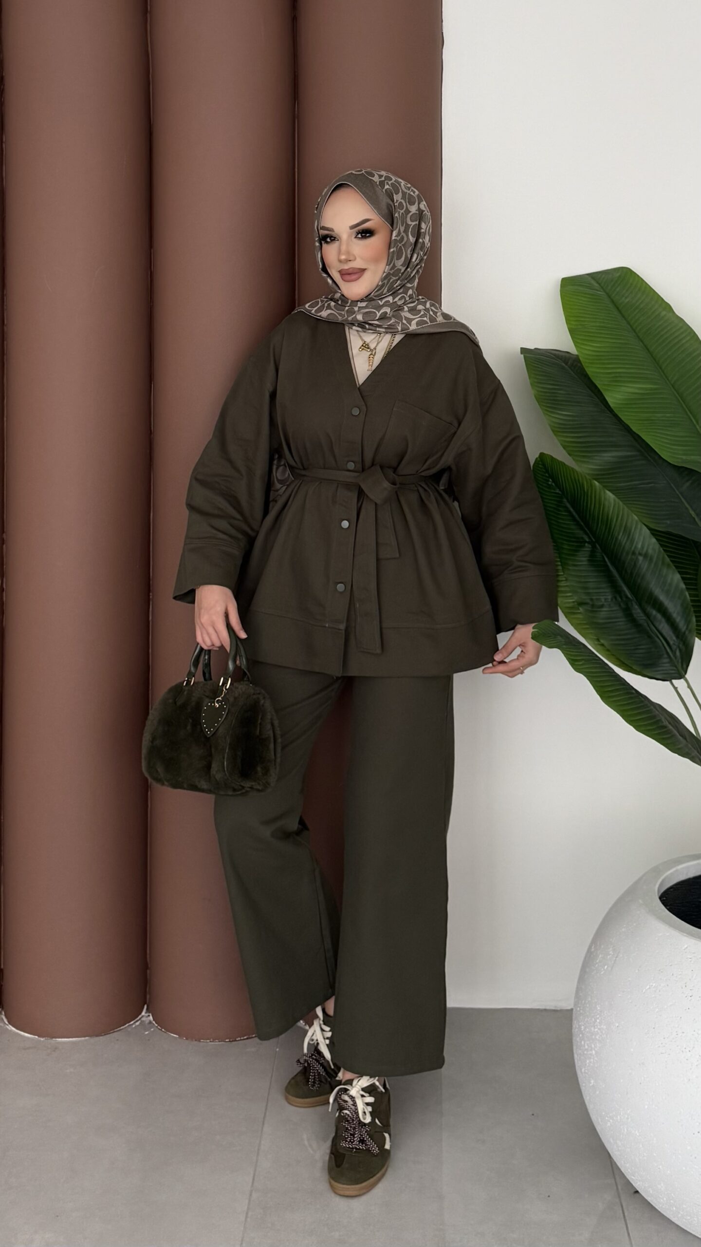 Harmony Premium Peluş Deri İkili Takım – Haki
