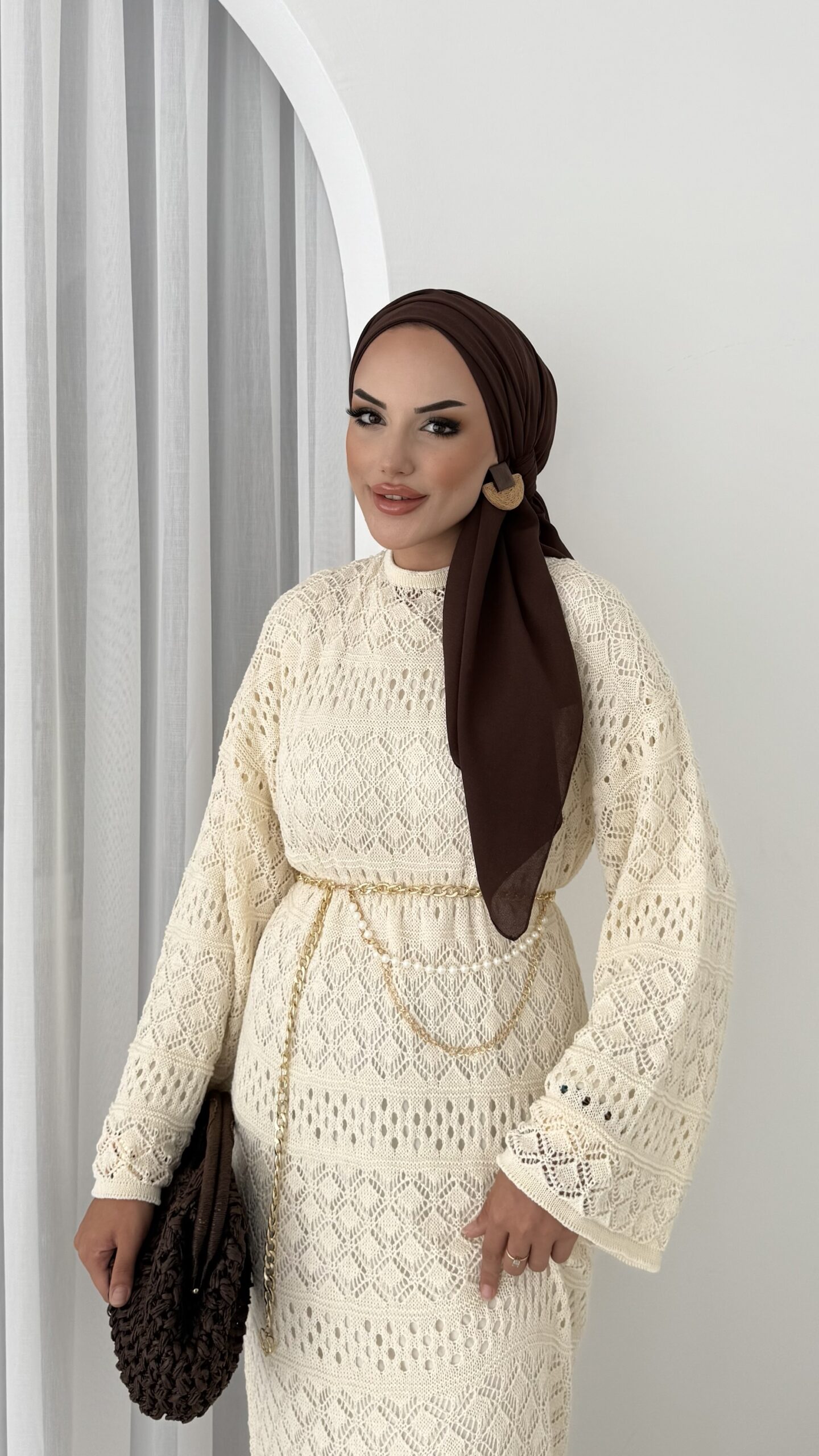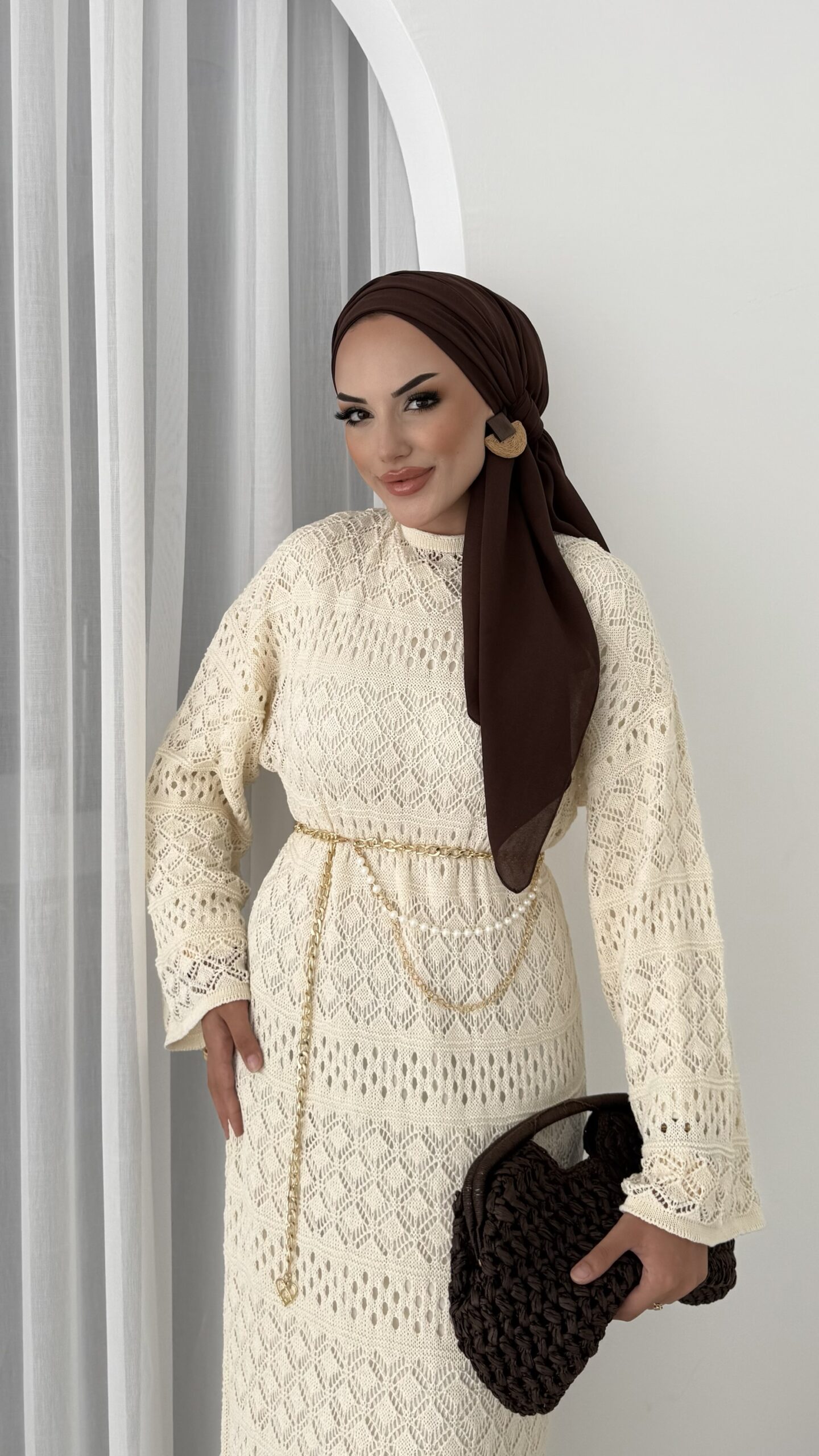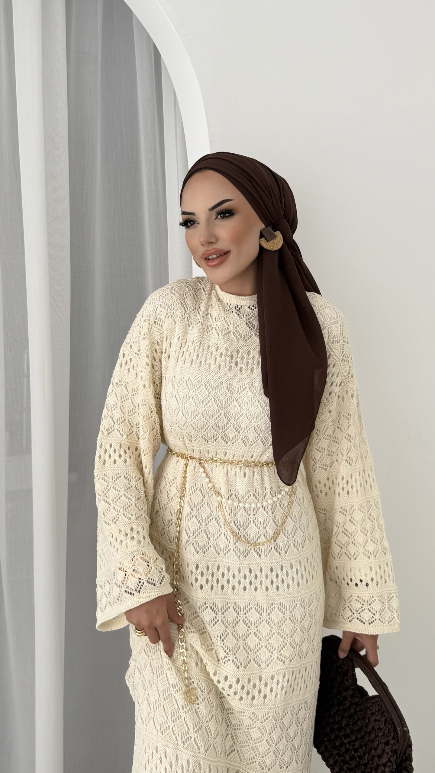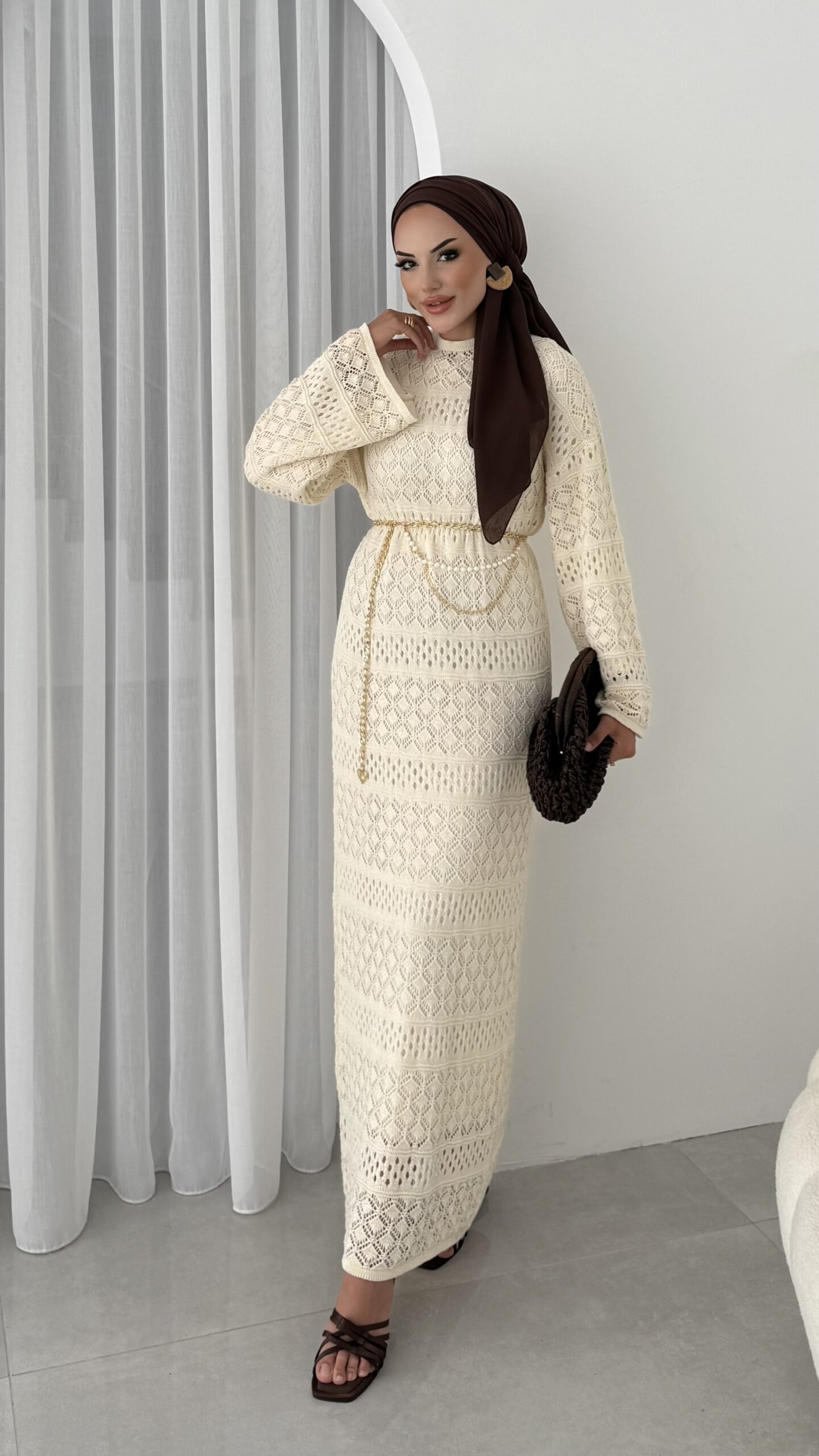 Marka Muadil Kemerli Ajurlu Elbise – Bej