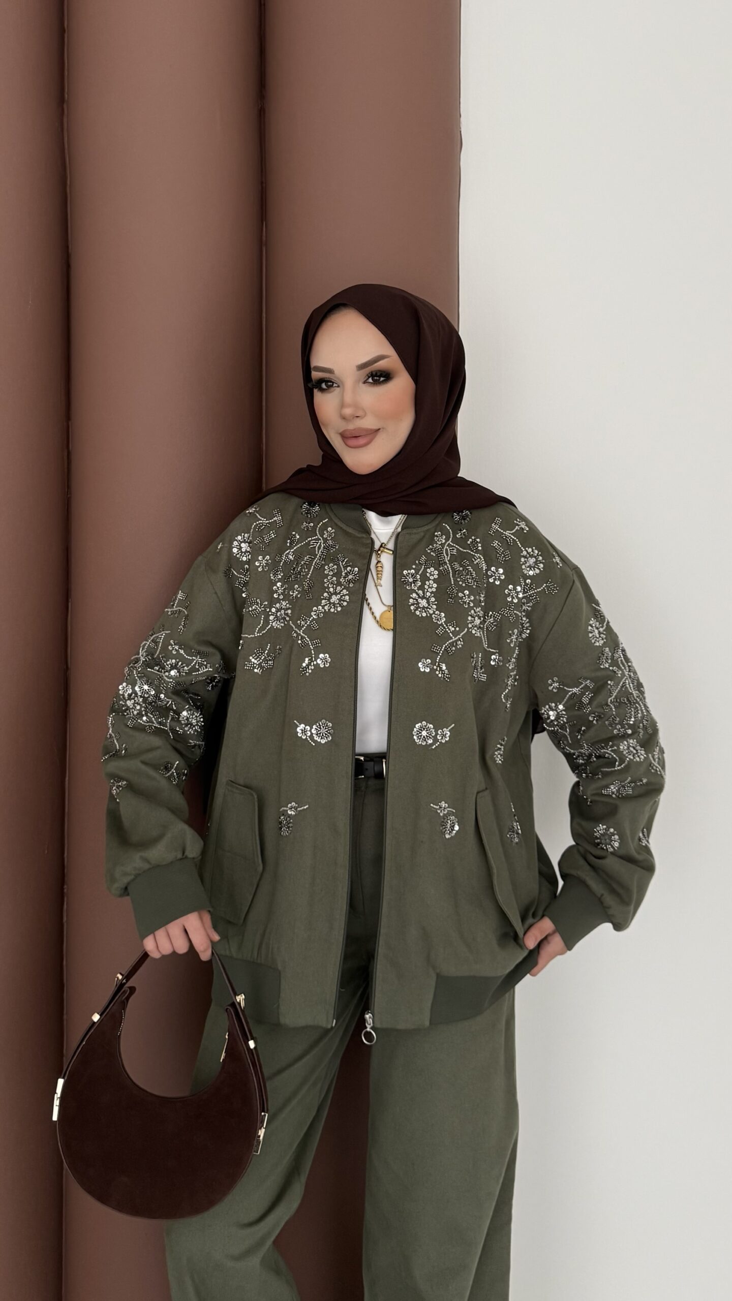 Marka Muadili Gabardin Bomber Ceket İkili Takım – Haki