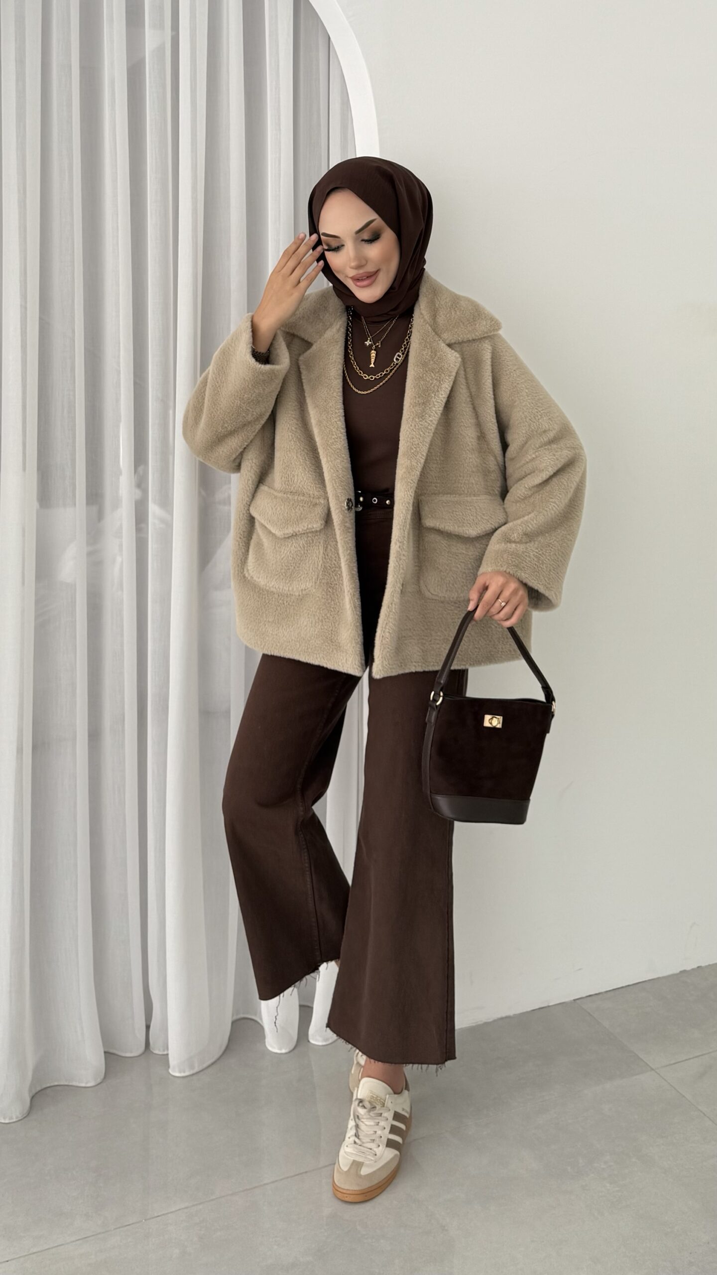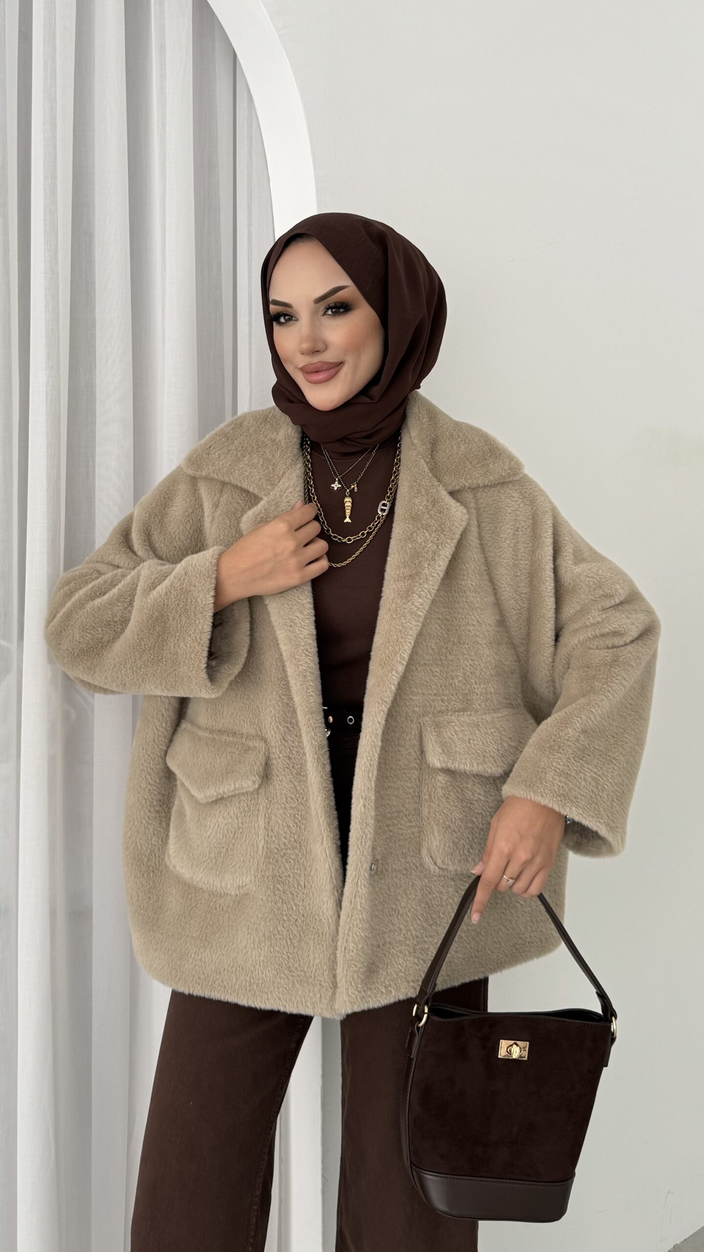 Marka Muadili Premium Kürk Ceket – Vizon
