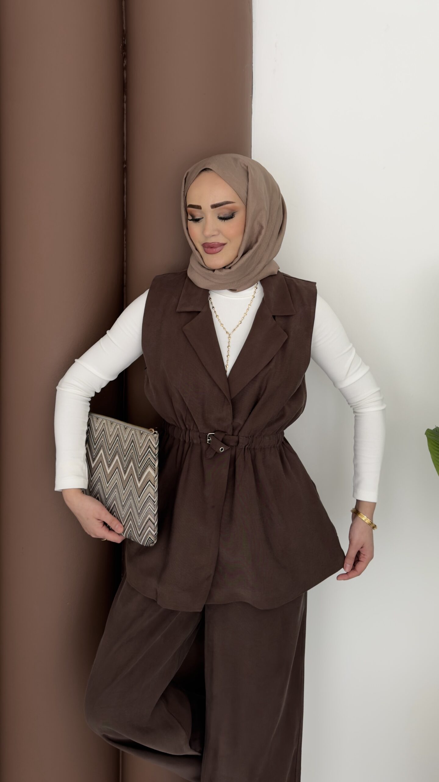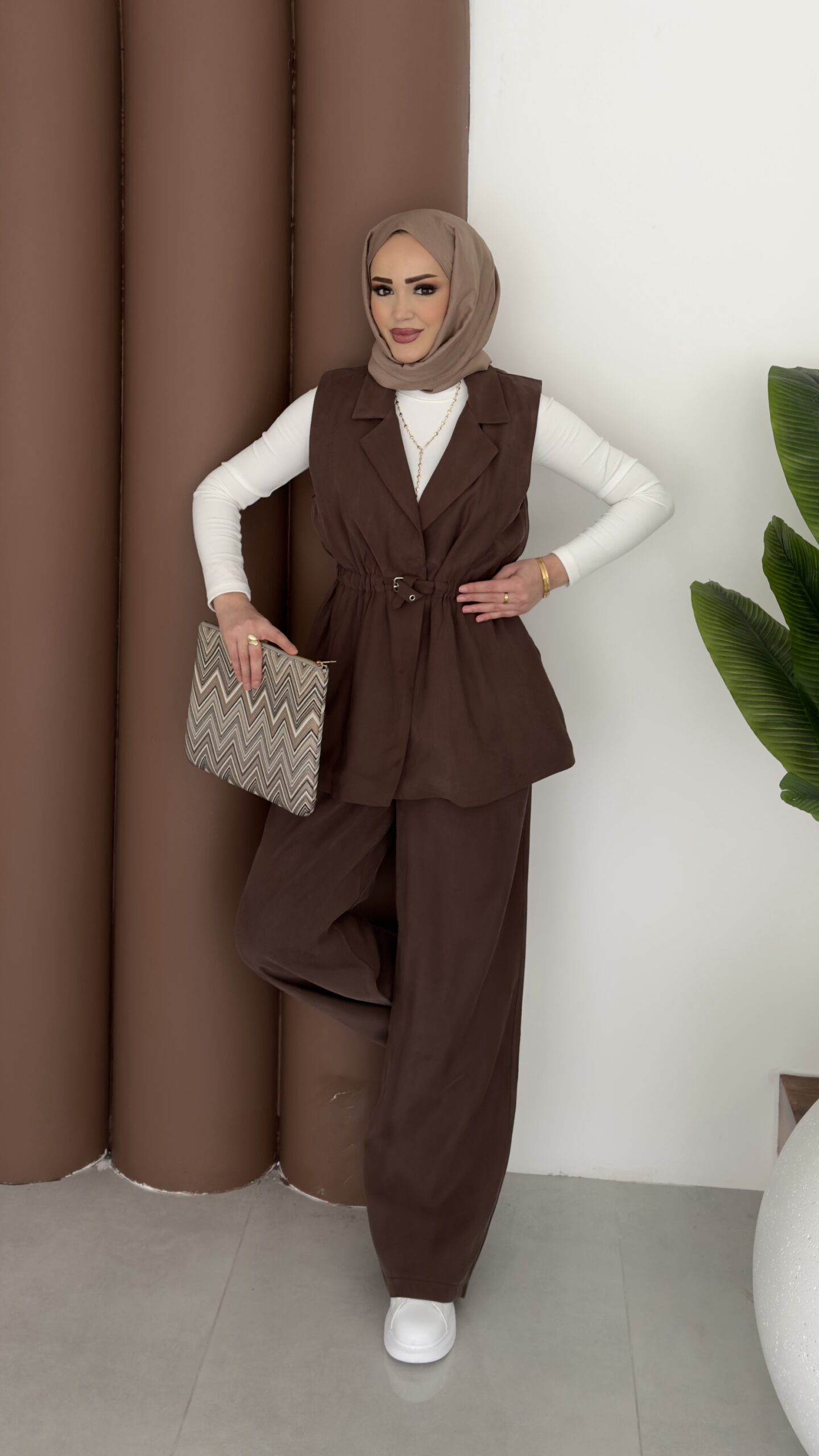 Marka Muadili Yelekli İkili Takım – Kahverengi