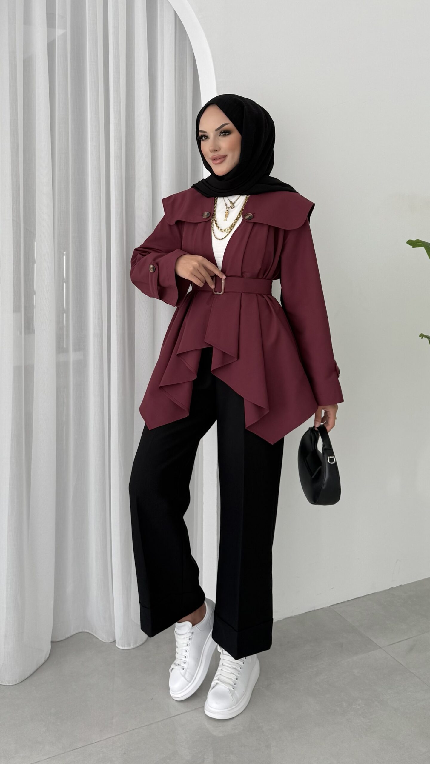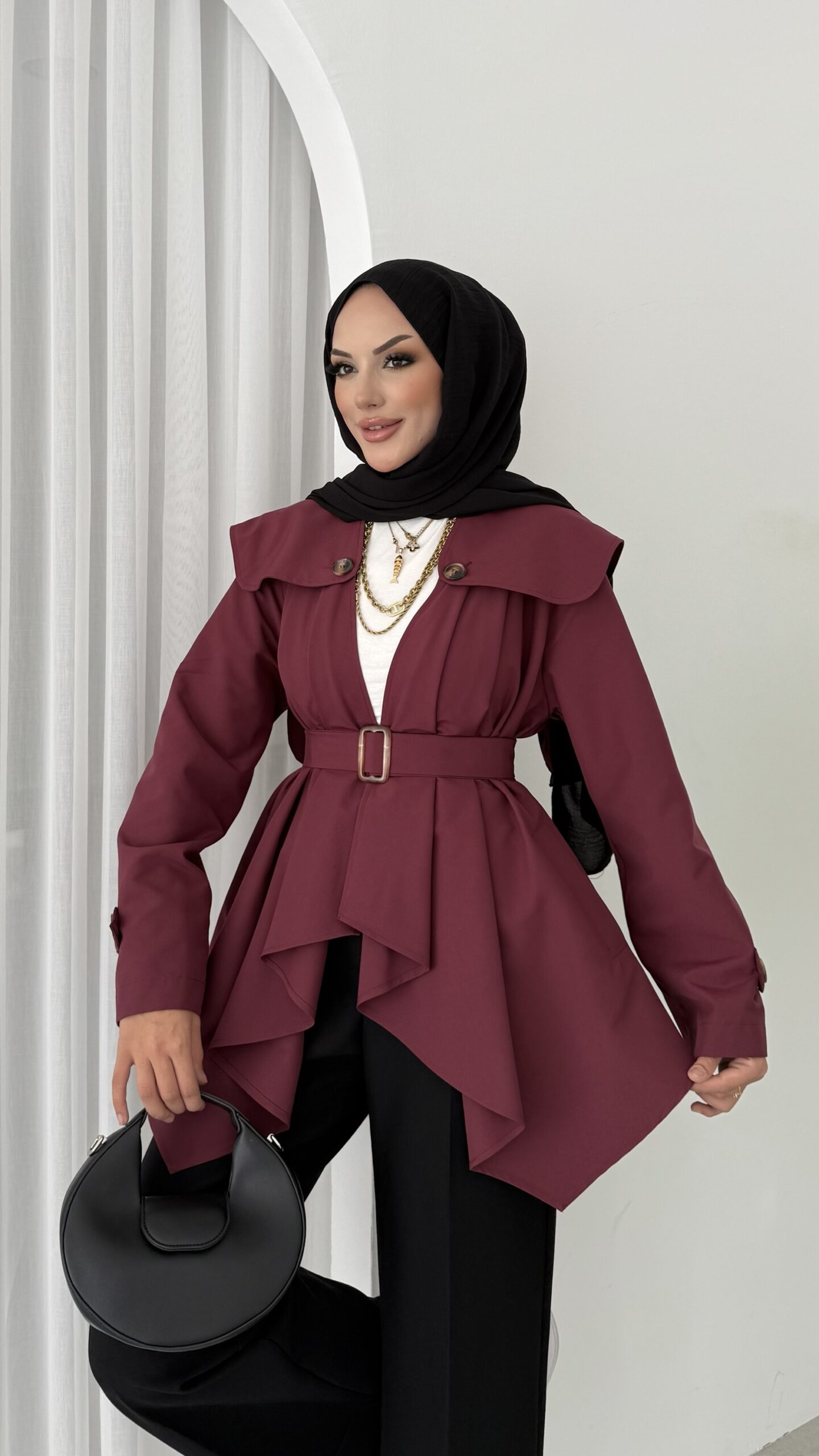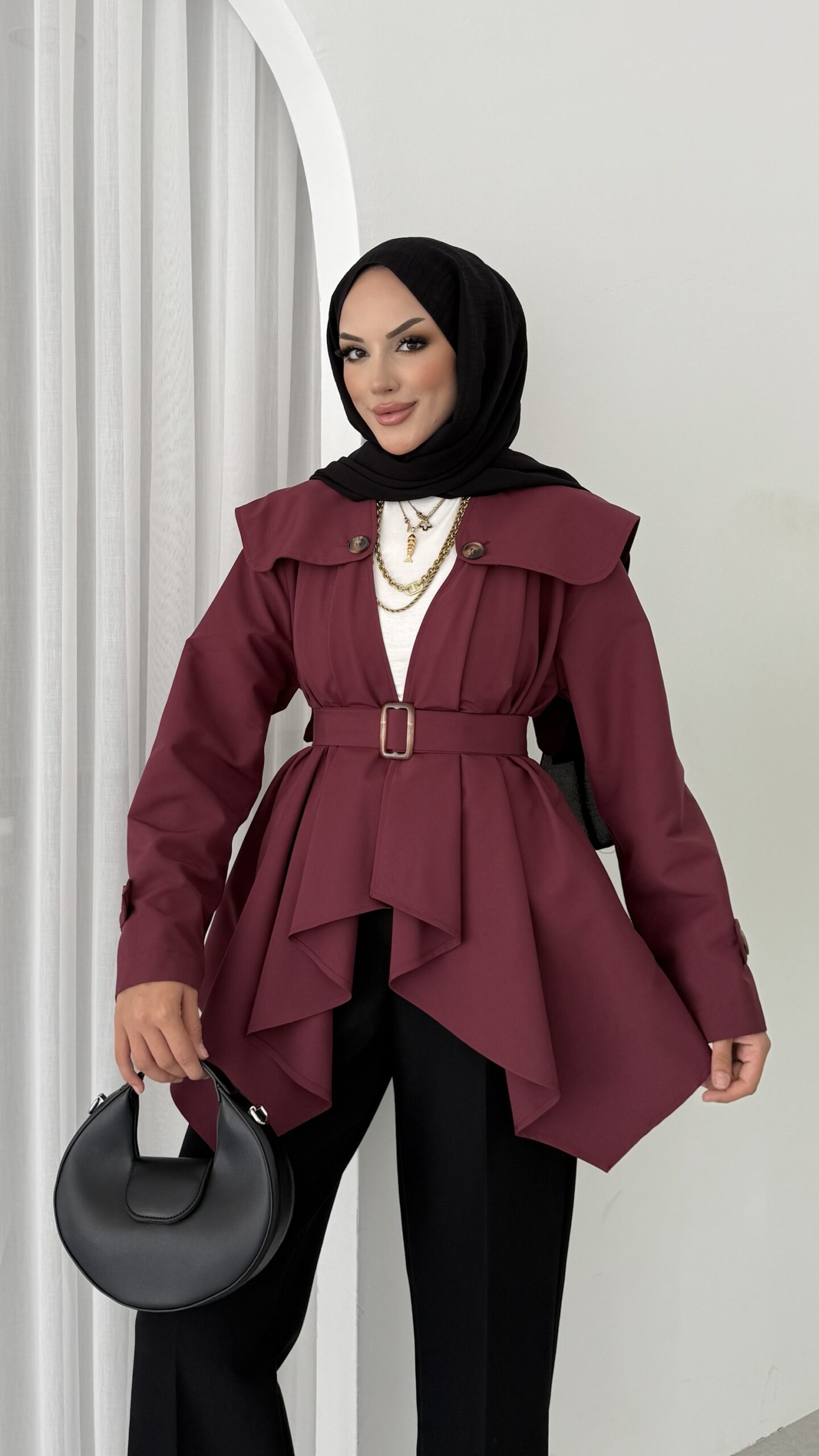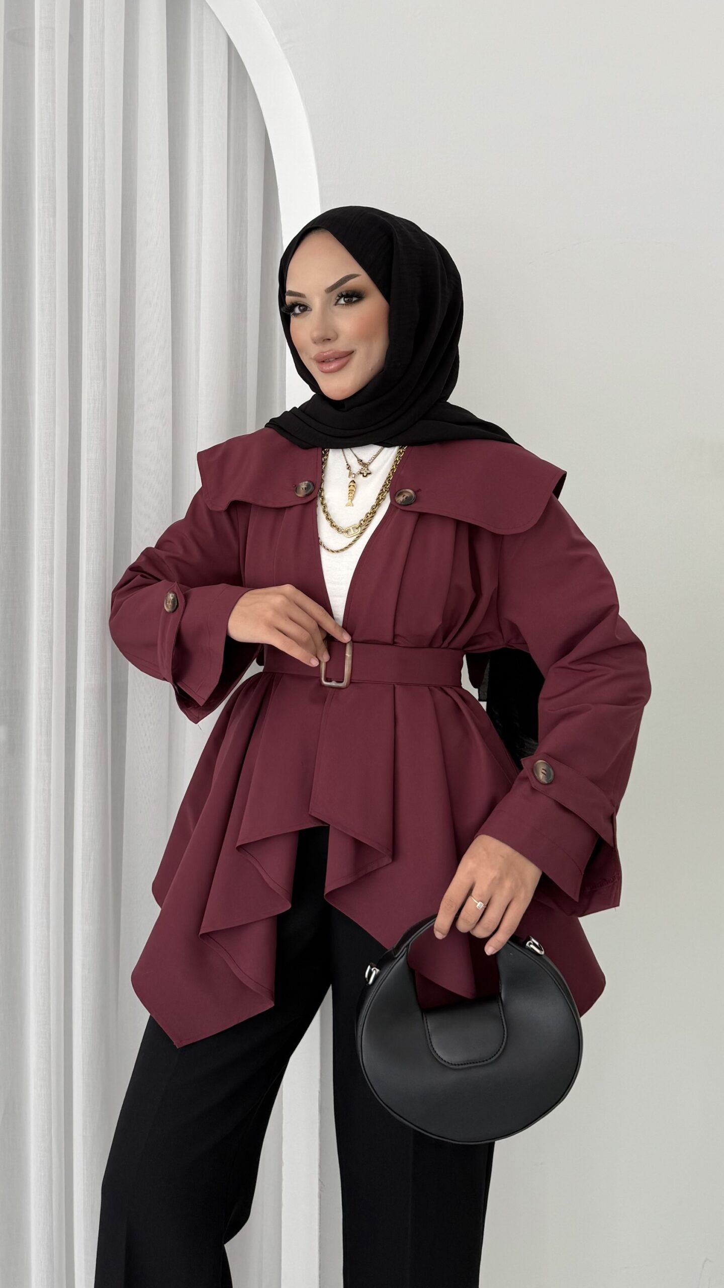 “Maxi Tasarım Kemerli Trençkot – Bordo” için yorum yapan ilk kişi siz olun
