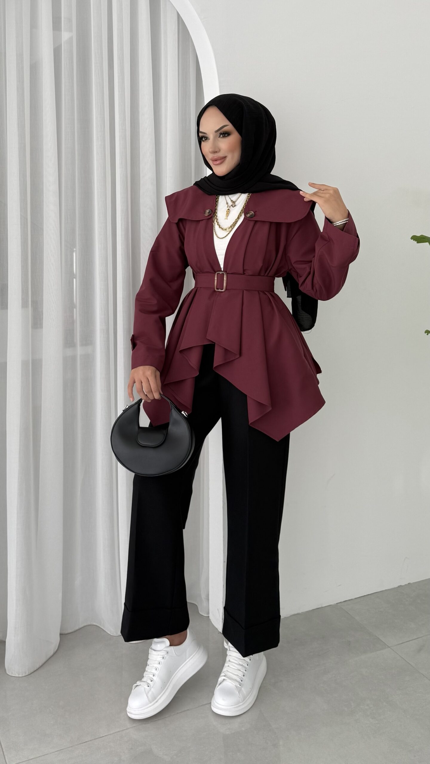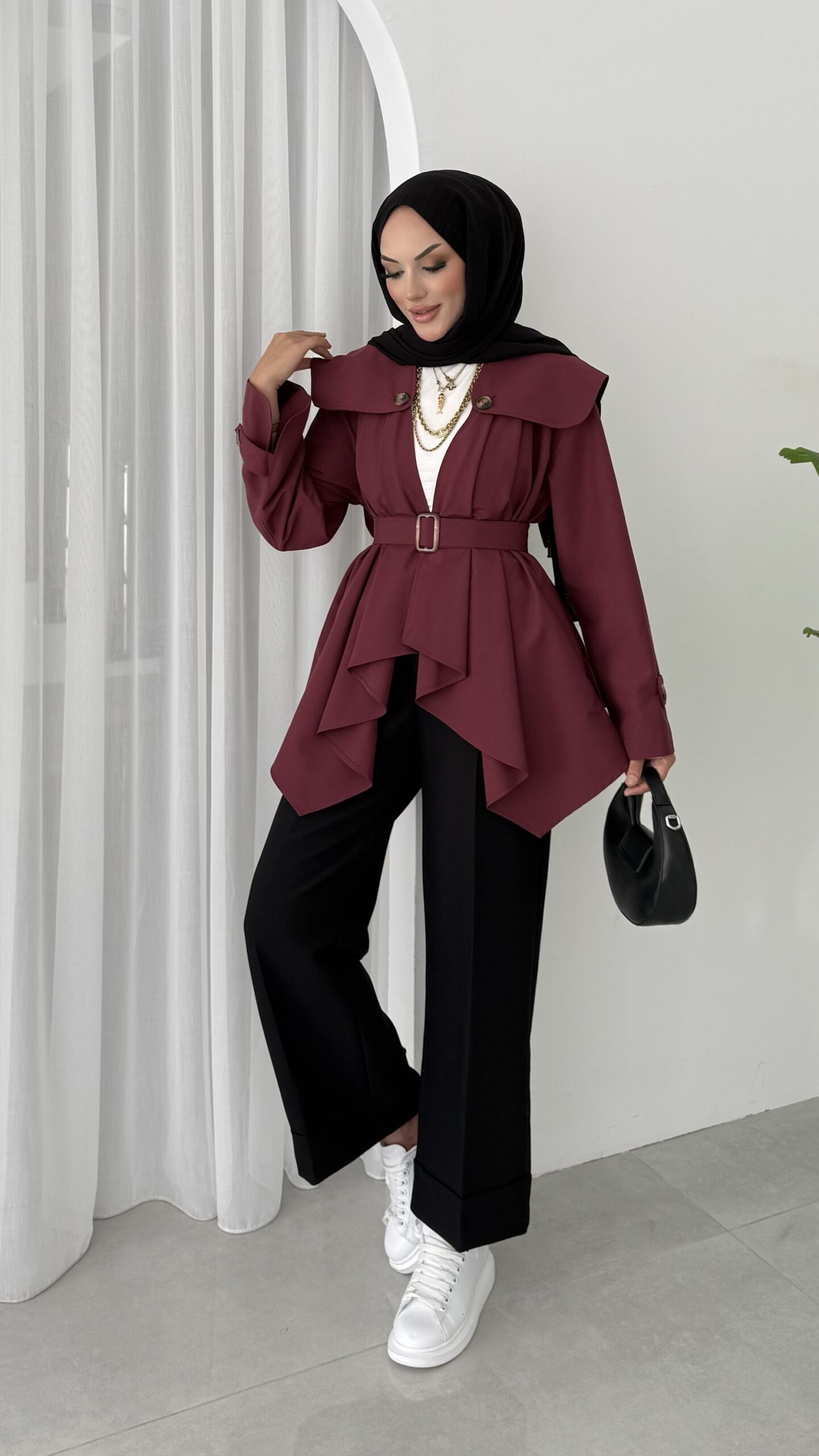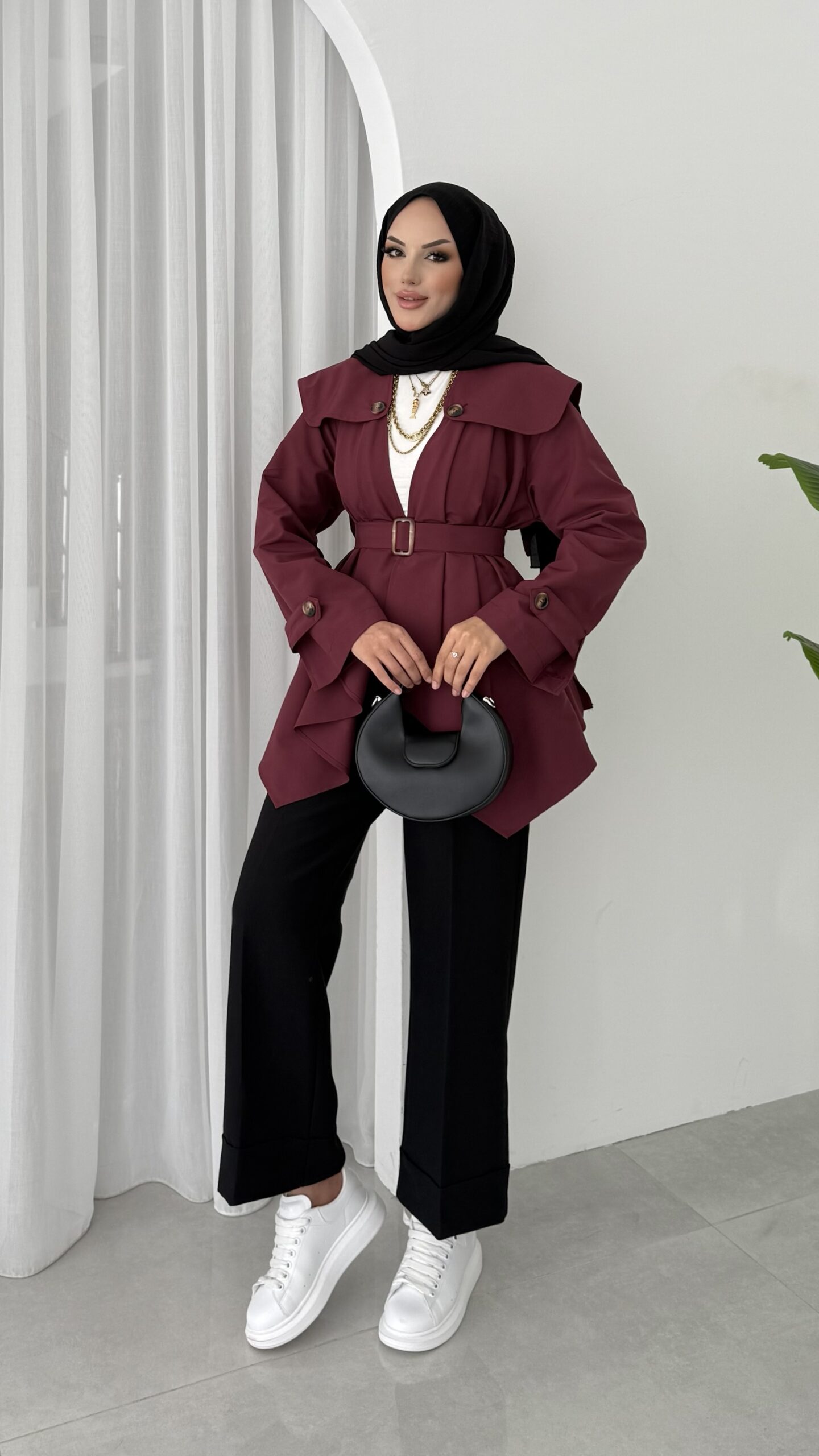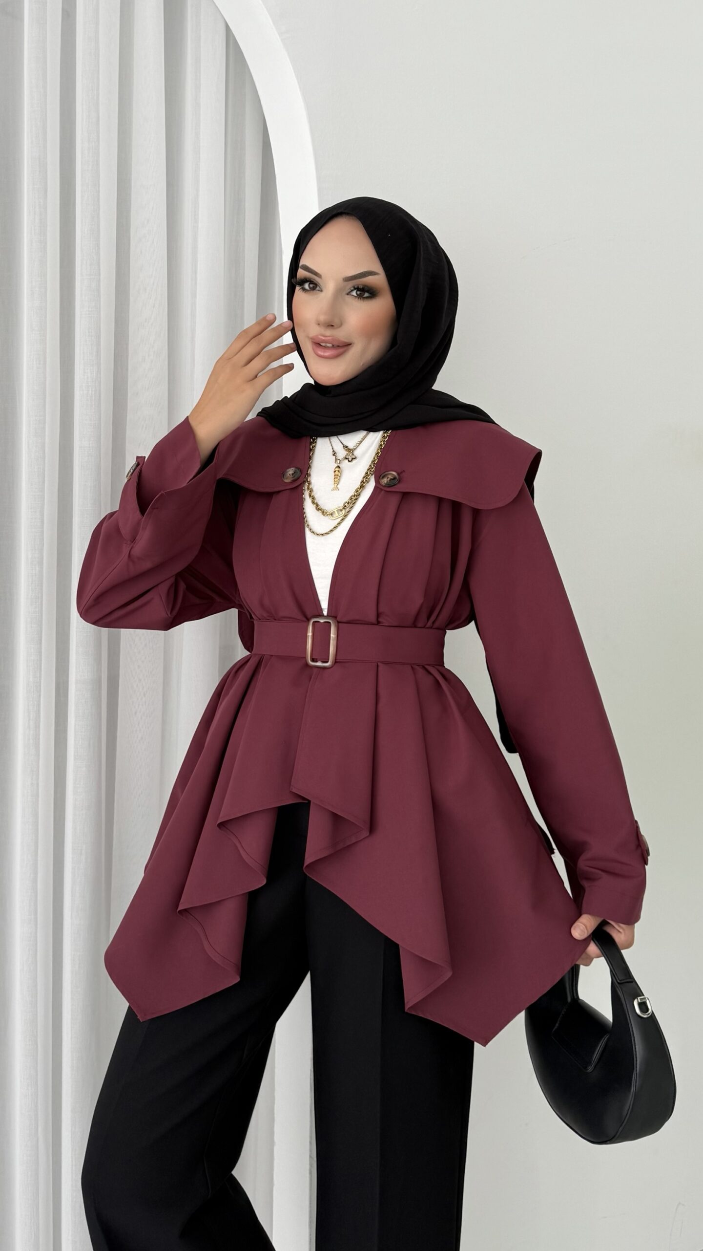 “Maxi Tasarım Kemerli Trençkot – Bordo” için yorum yapan ilk kişi siz olun