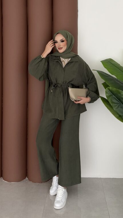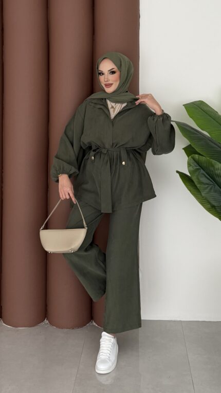 Diamond Taşlı Büzgülü Scuba İkili Takım – Yağ Yeşil