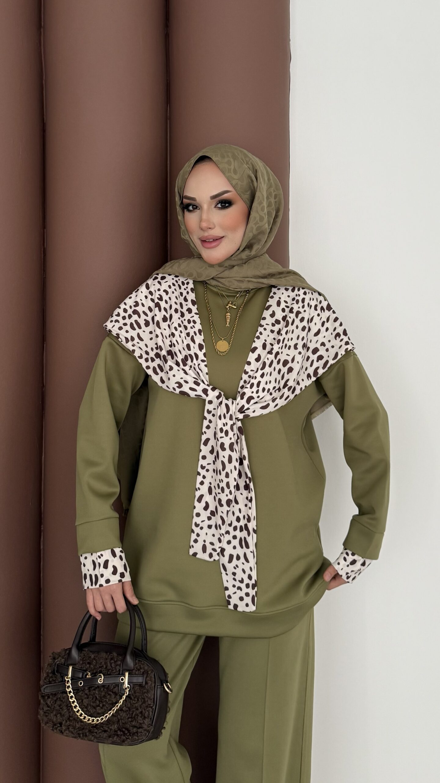 Mofy Fularlı Scuba İkili Takım - Kahverengi