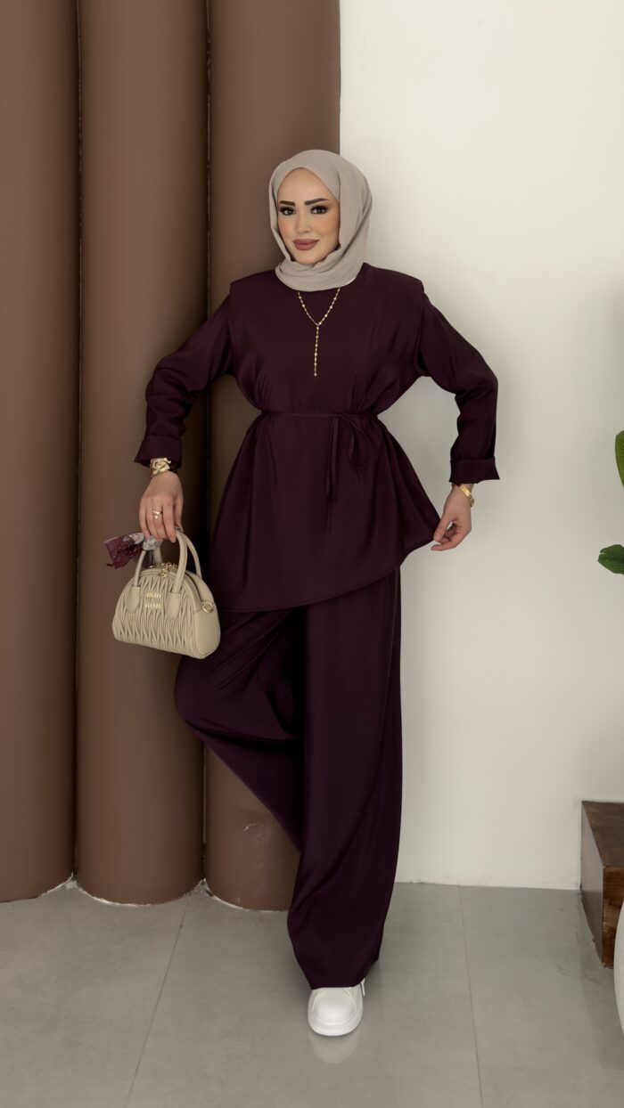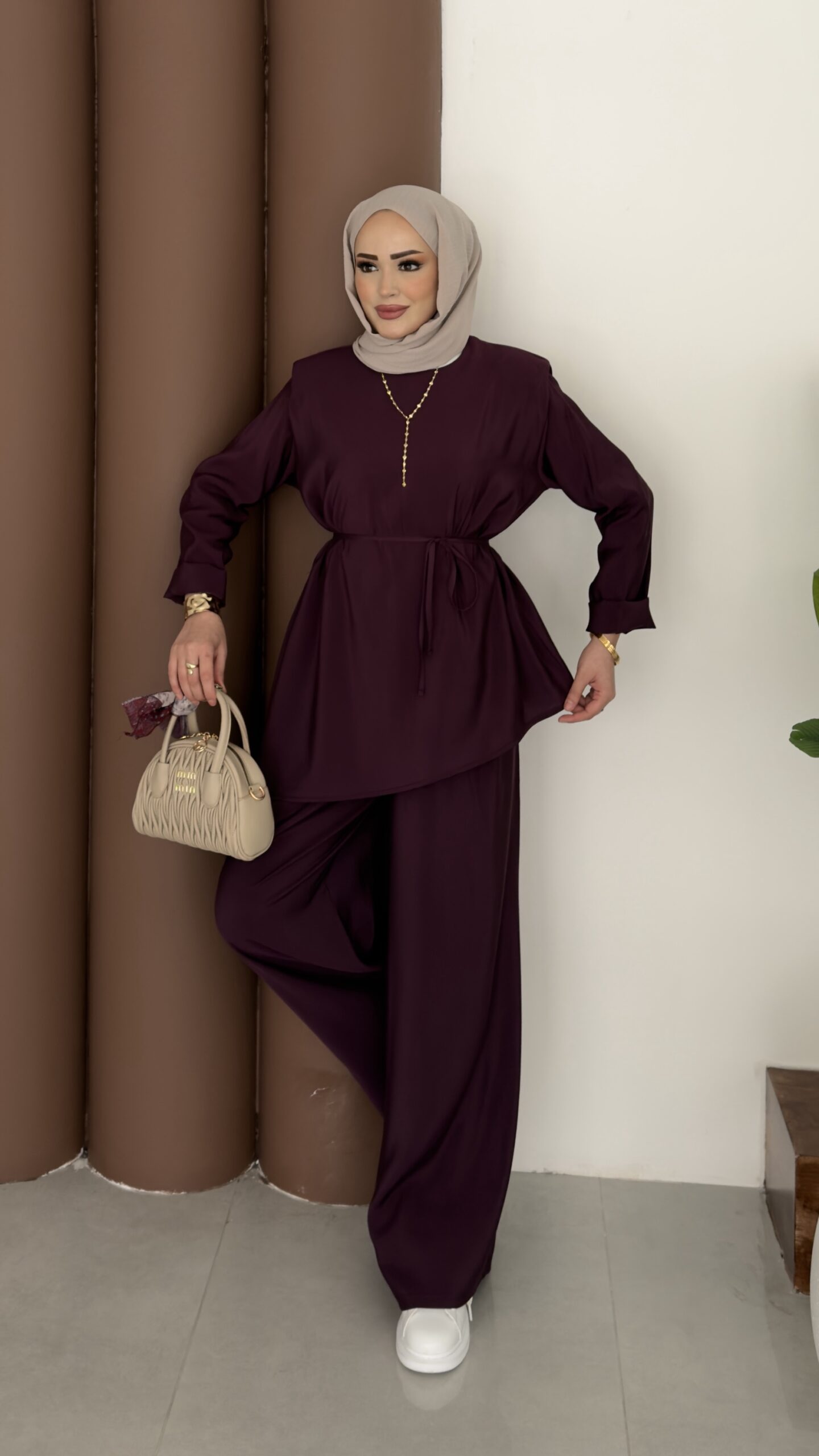 Bohem İncili Müslin İkili Takım - Mürdüm