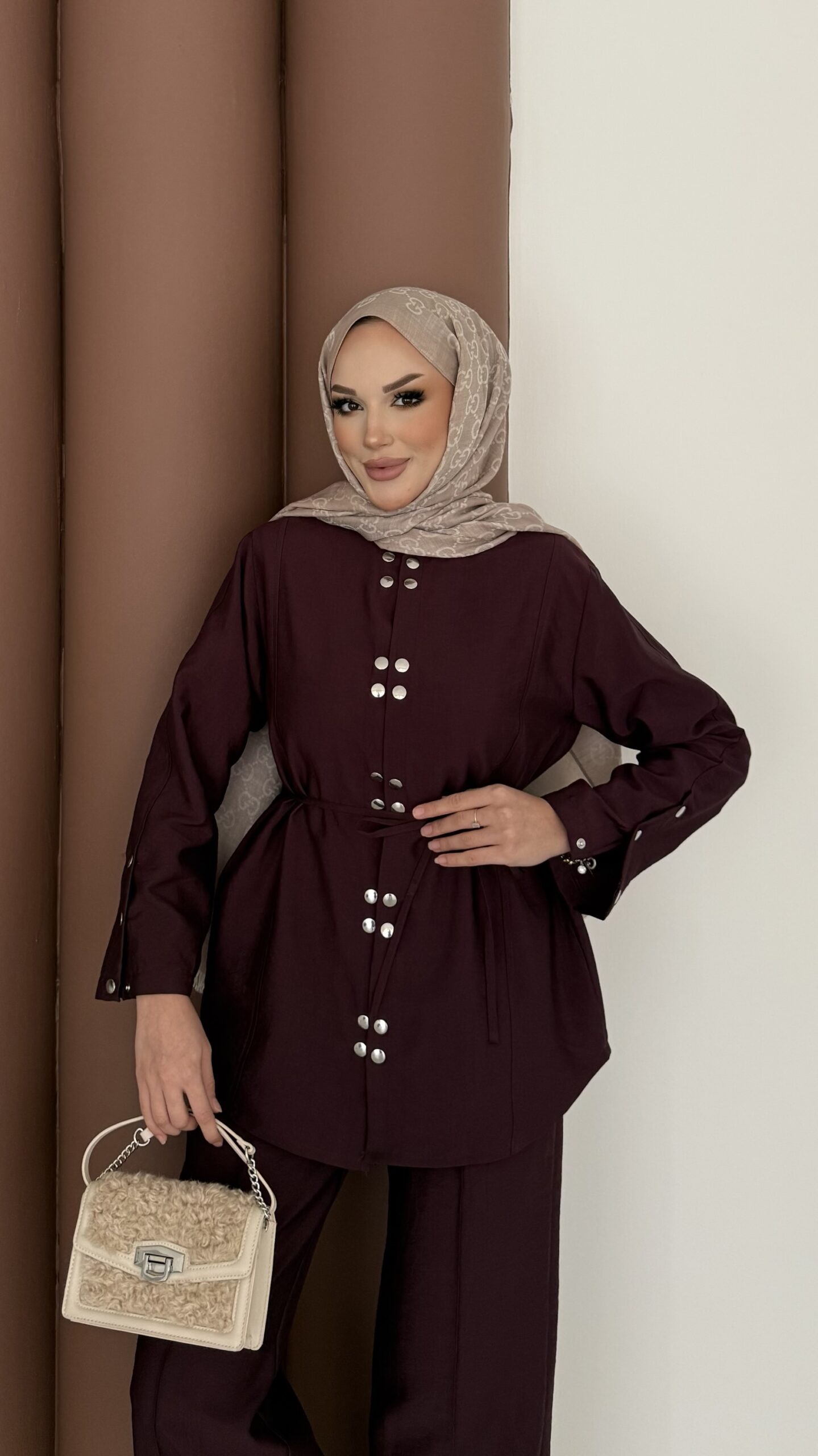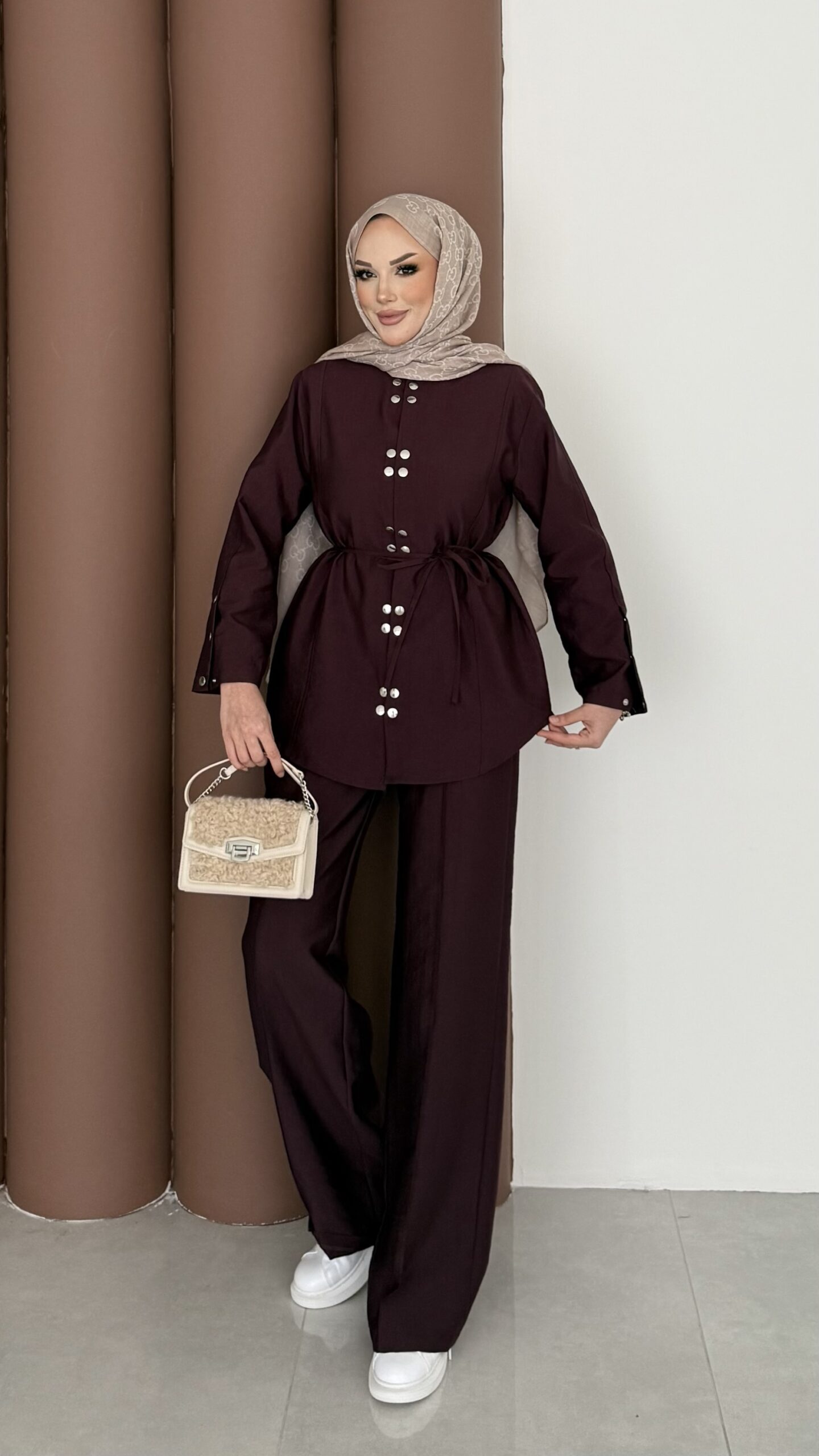 Peluş Garnili Şardonlu İkili Takım – Acı Kahverengi