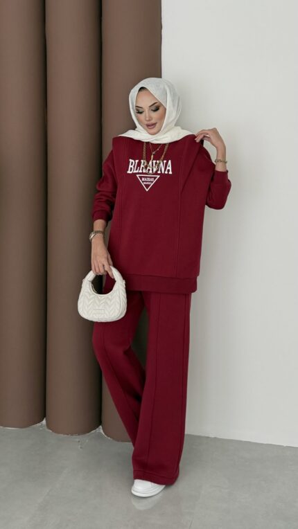 Diamond Taşlı Büzgülü Scuba İkili Takım – Bordo