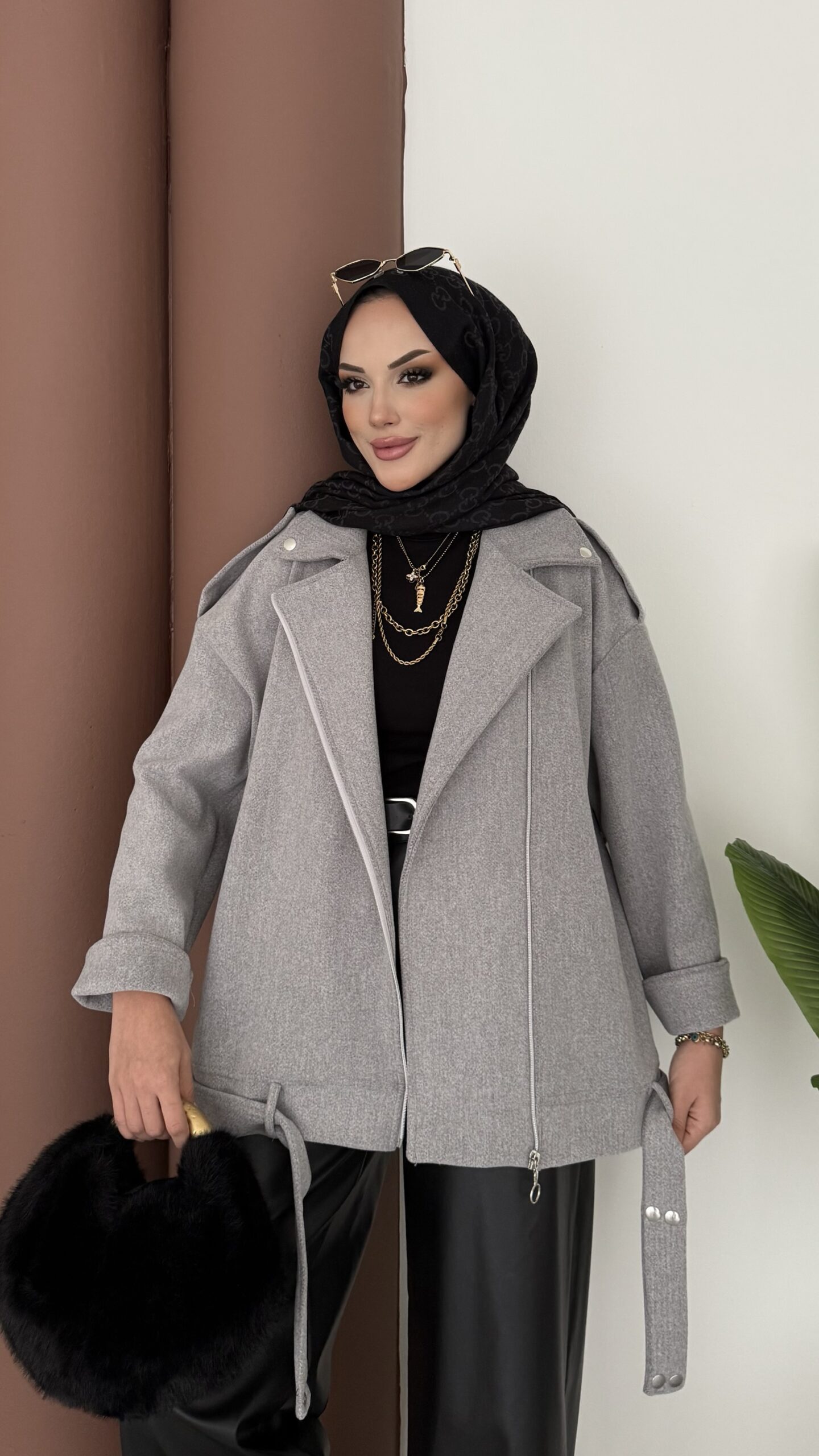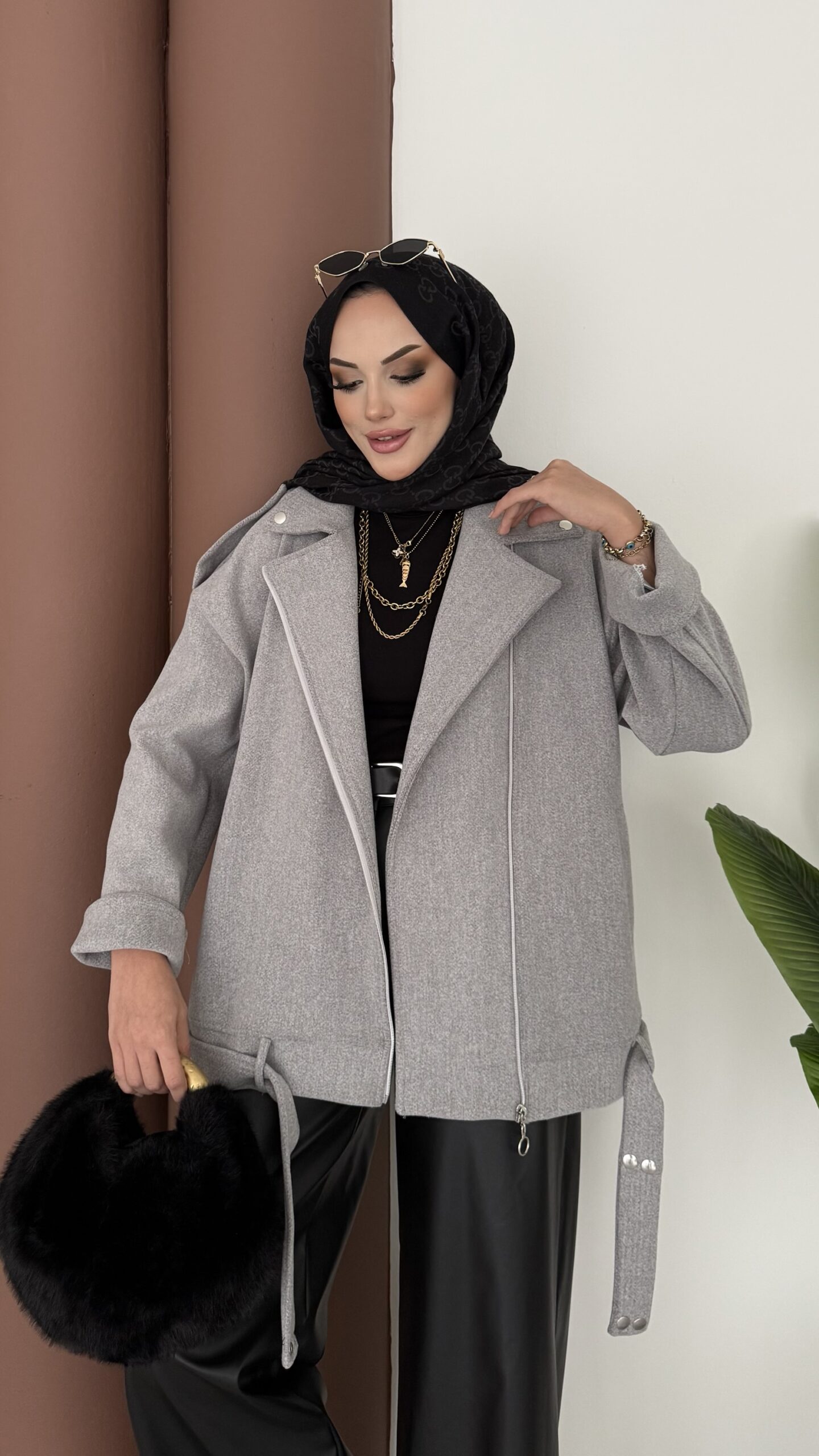 Most Premium Fermuarlı Kaşe Ceket – Gri