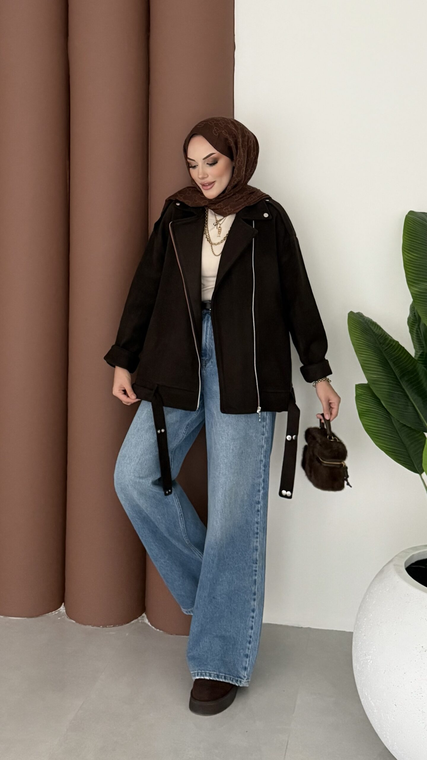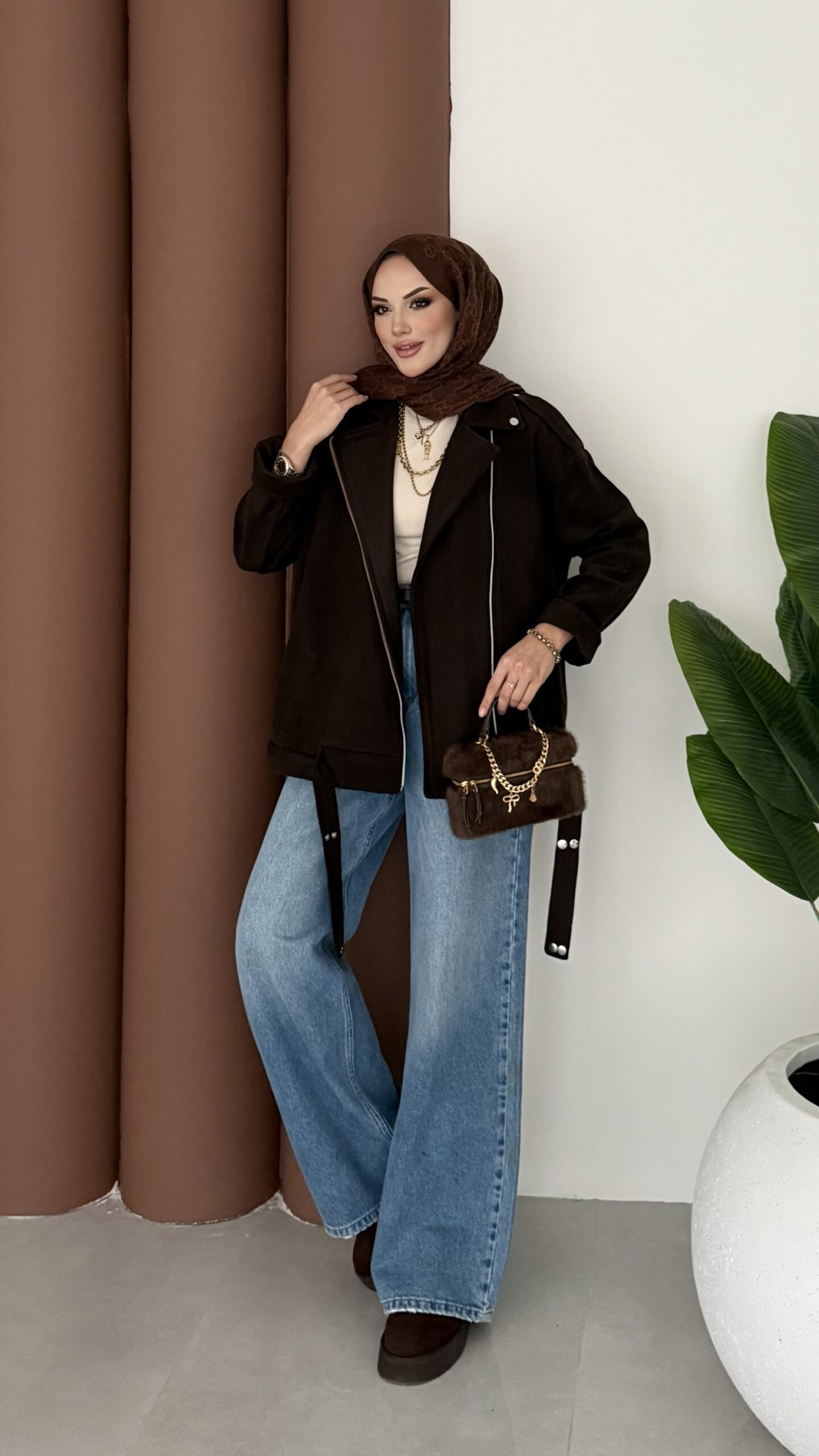 Most Premium Fermuarlı Kaşe Ceket – Kahverengi