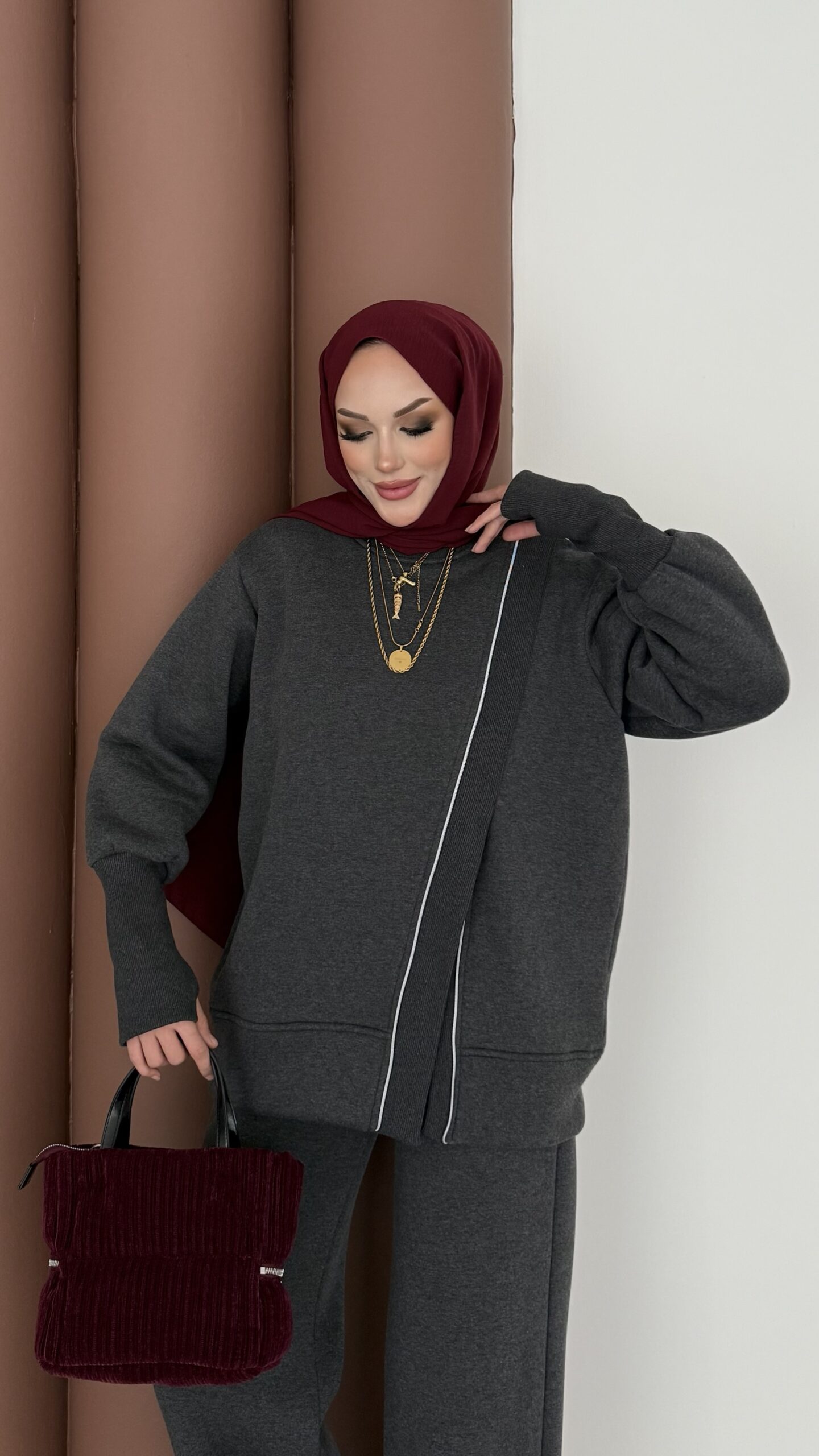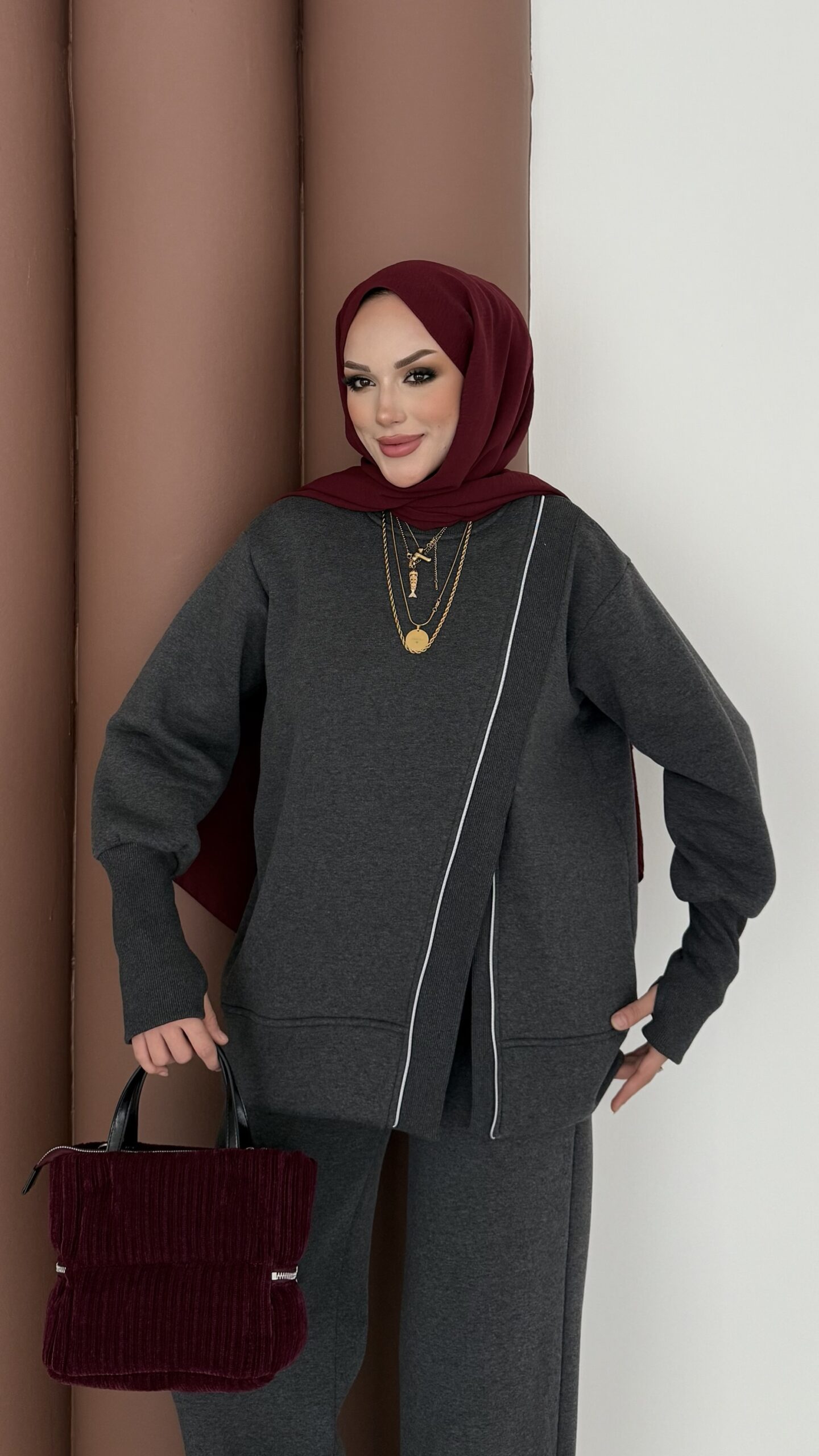 Muadil Asimetrik Fermuarlı İkili Takım – Antrasit