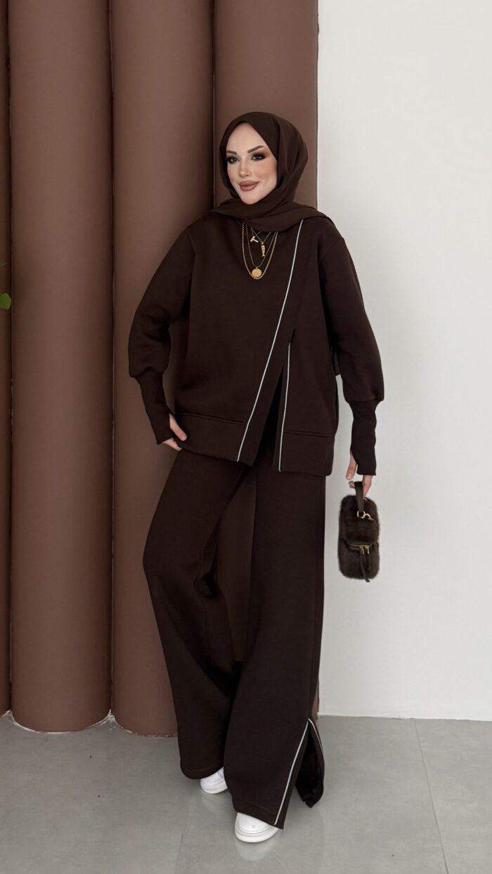 Muadil Asimetrik Fermuarlı İkili Takım – Kahverengi