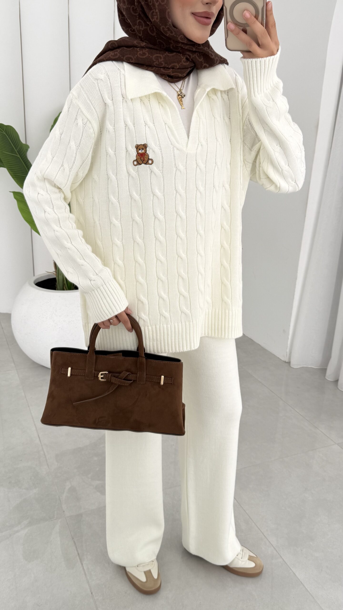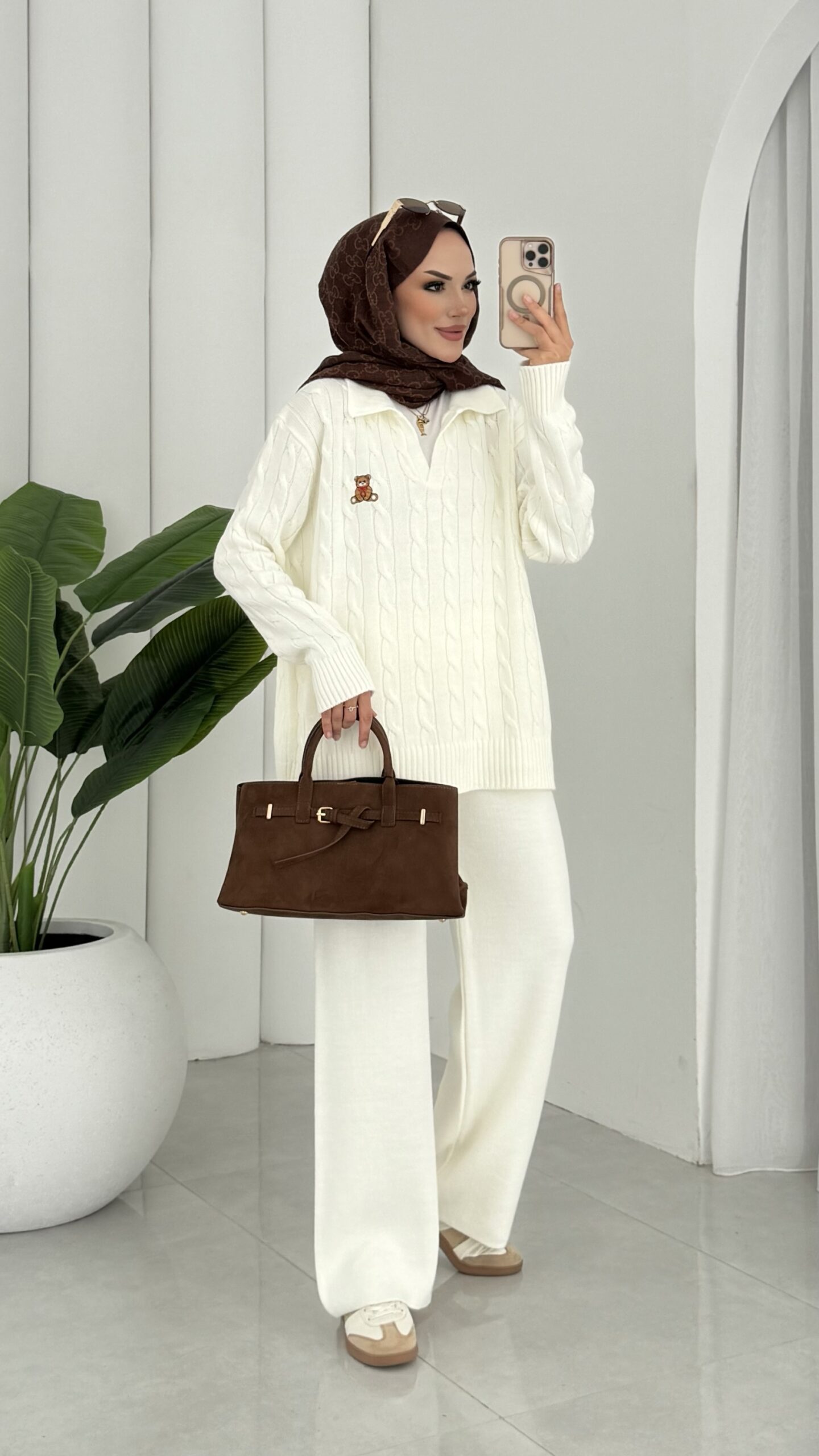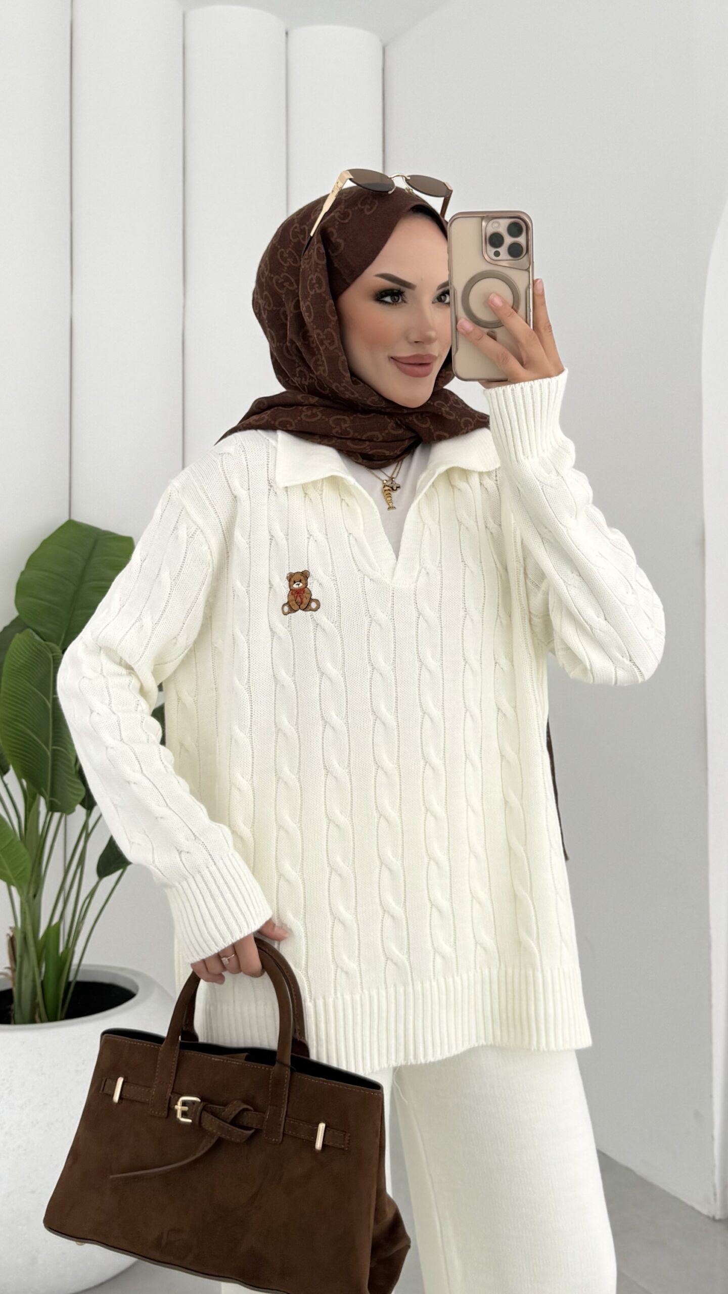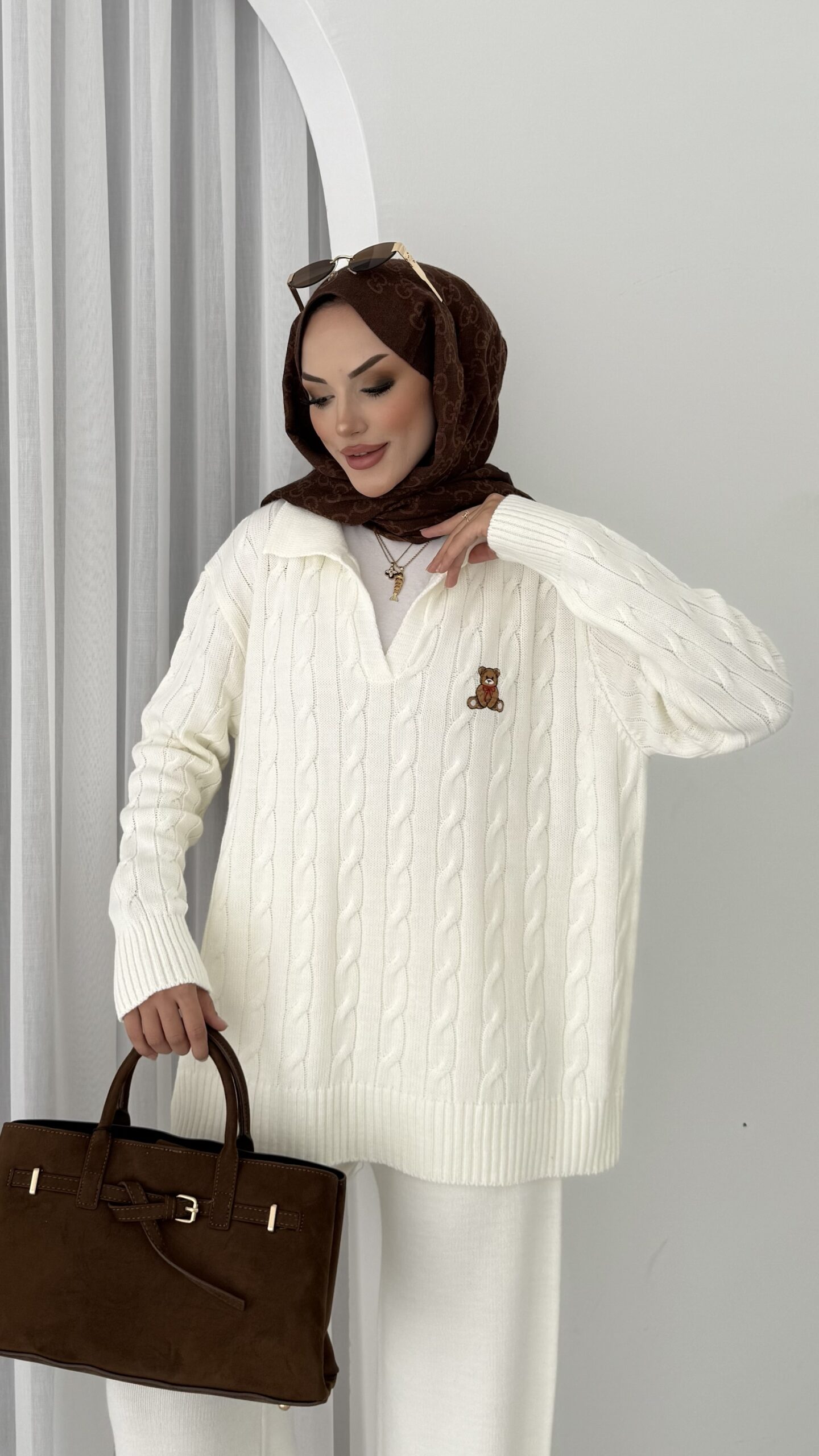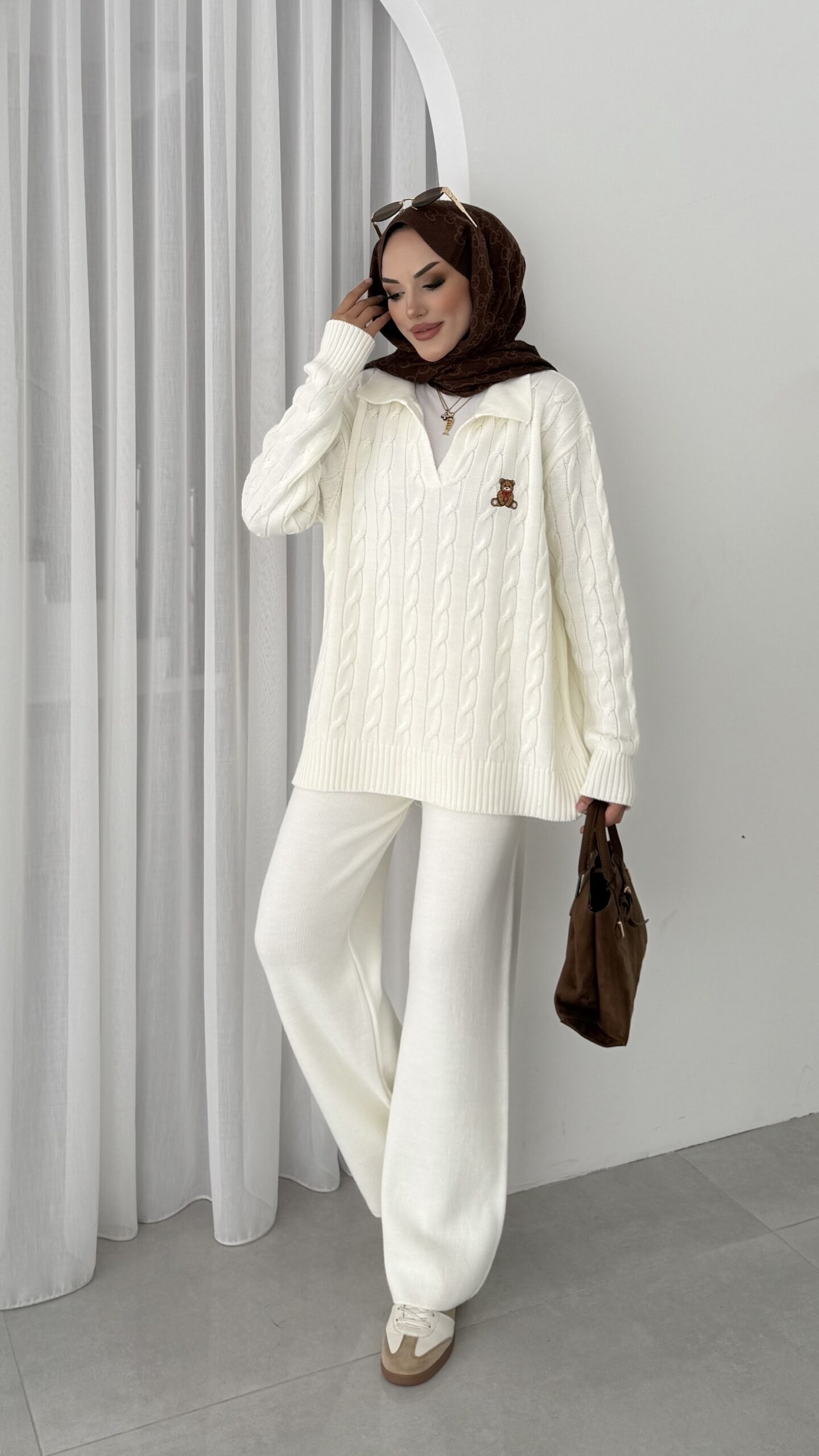 Muadil Ayıcık Nakışlı Triko İkli Takım – Ekru