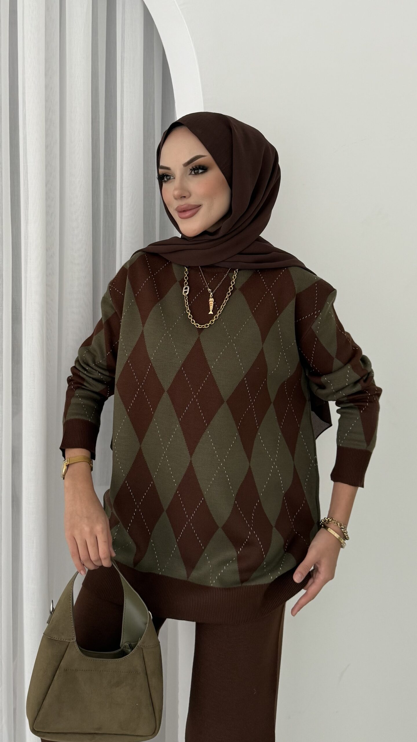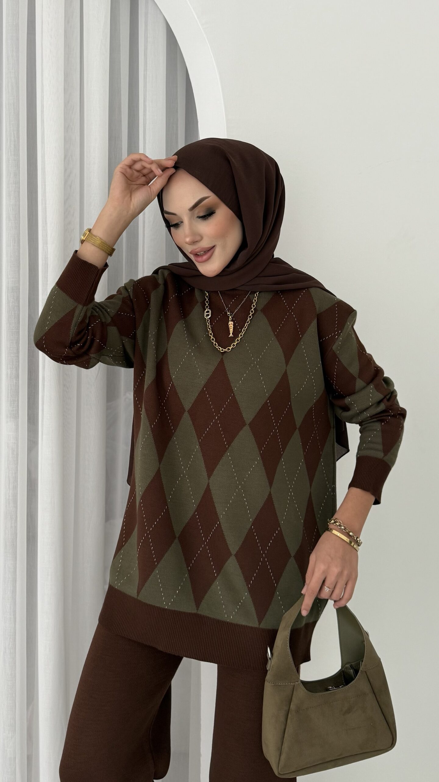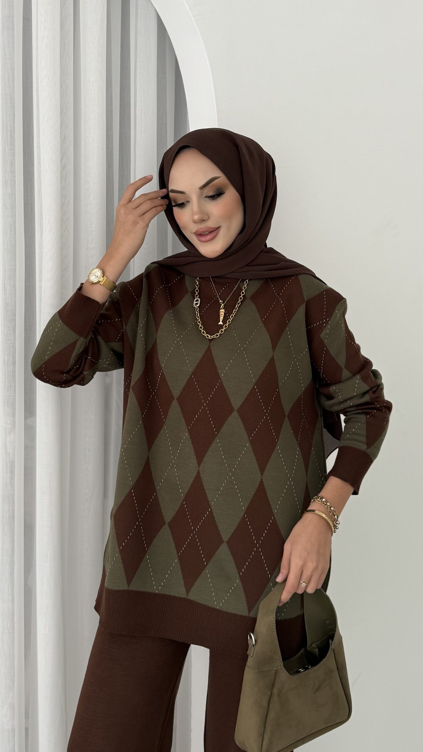 Muadil Baklavia Desen Triko İkili Takım – Haki