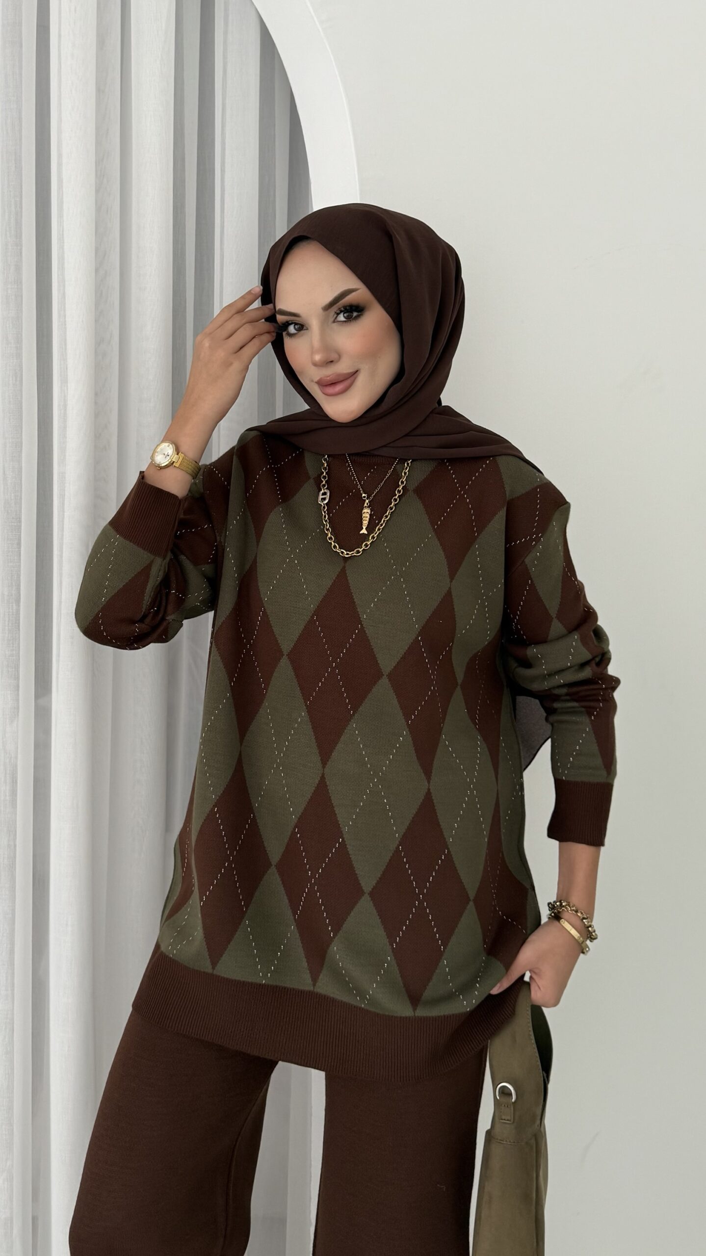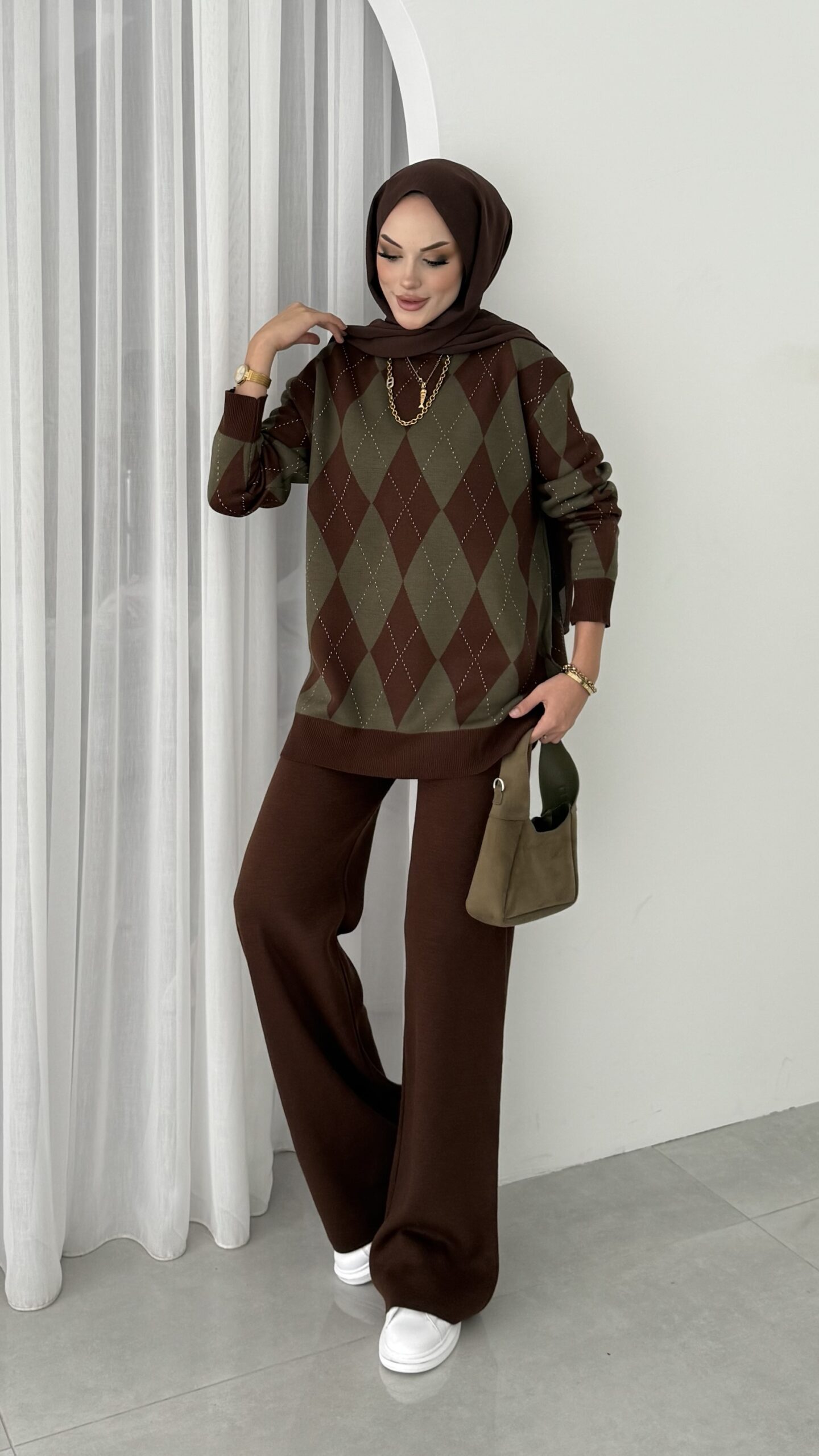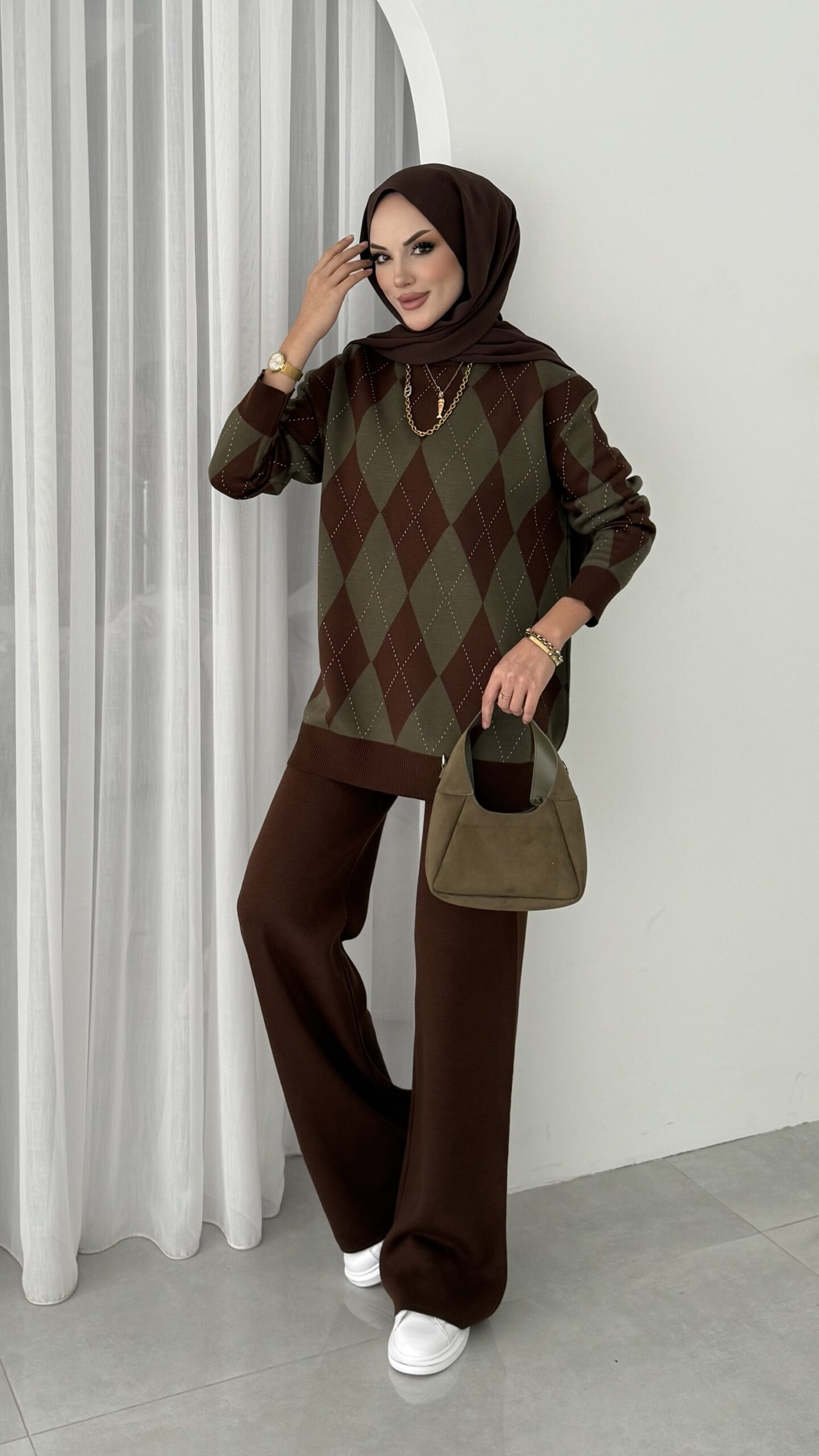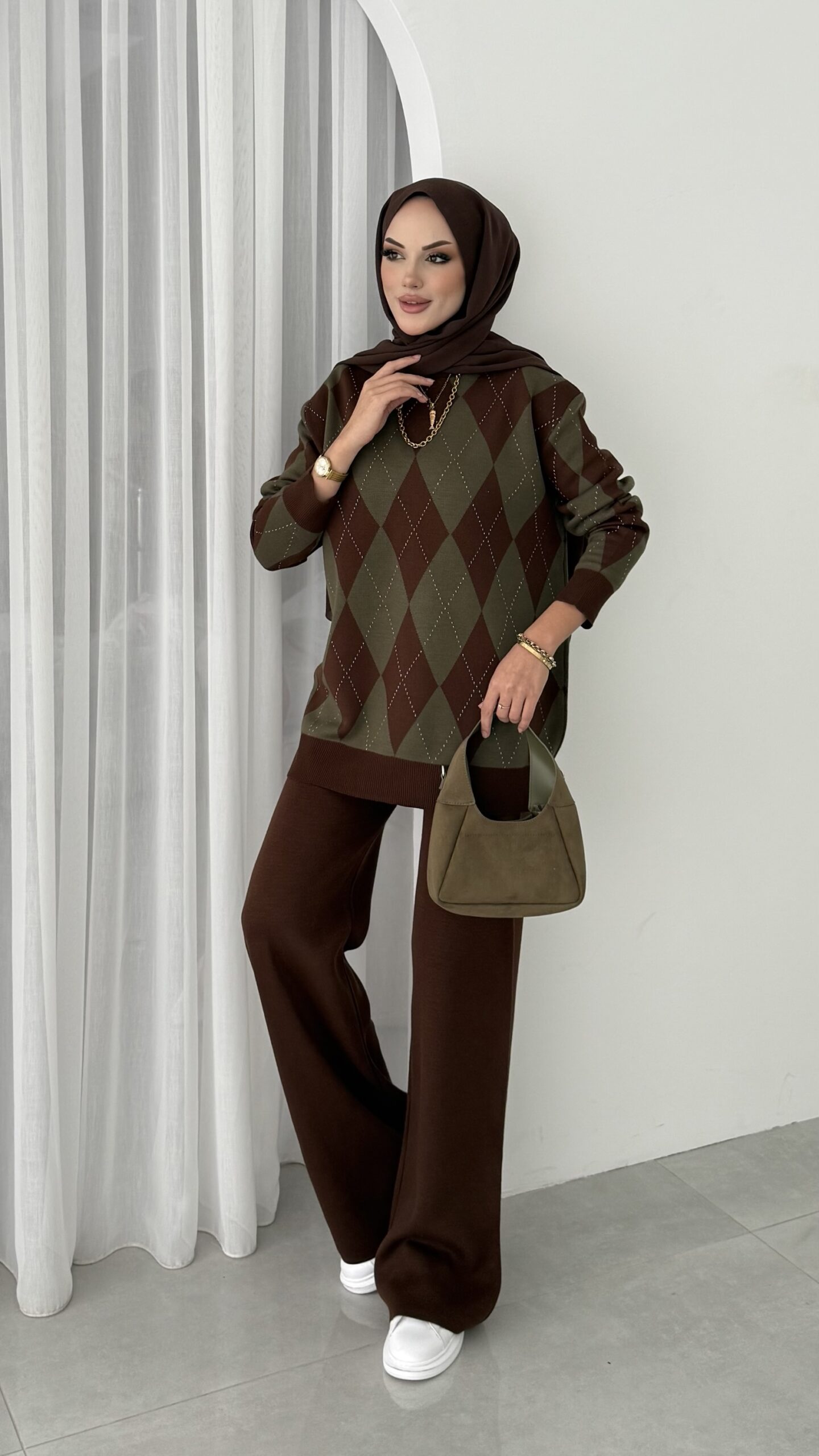 Muadil Baklavia Desen Triko İkili Takım – Haki