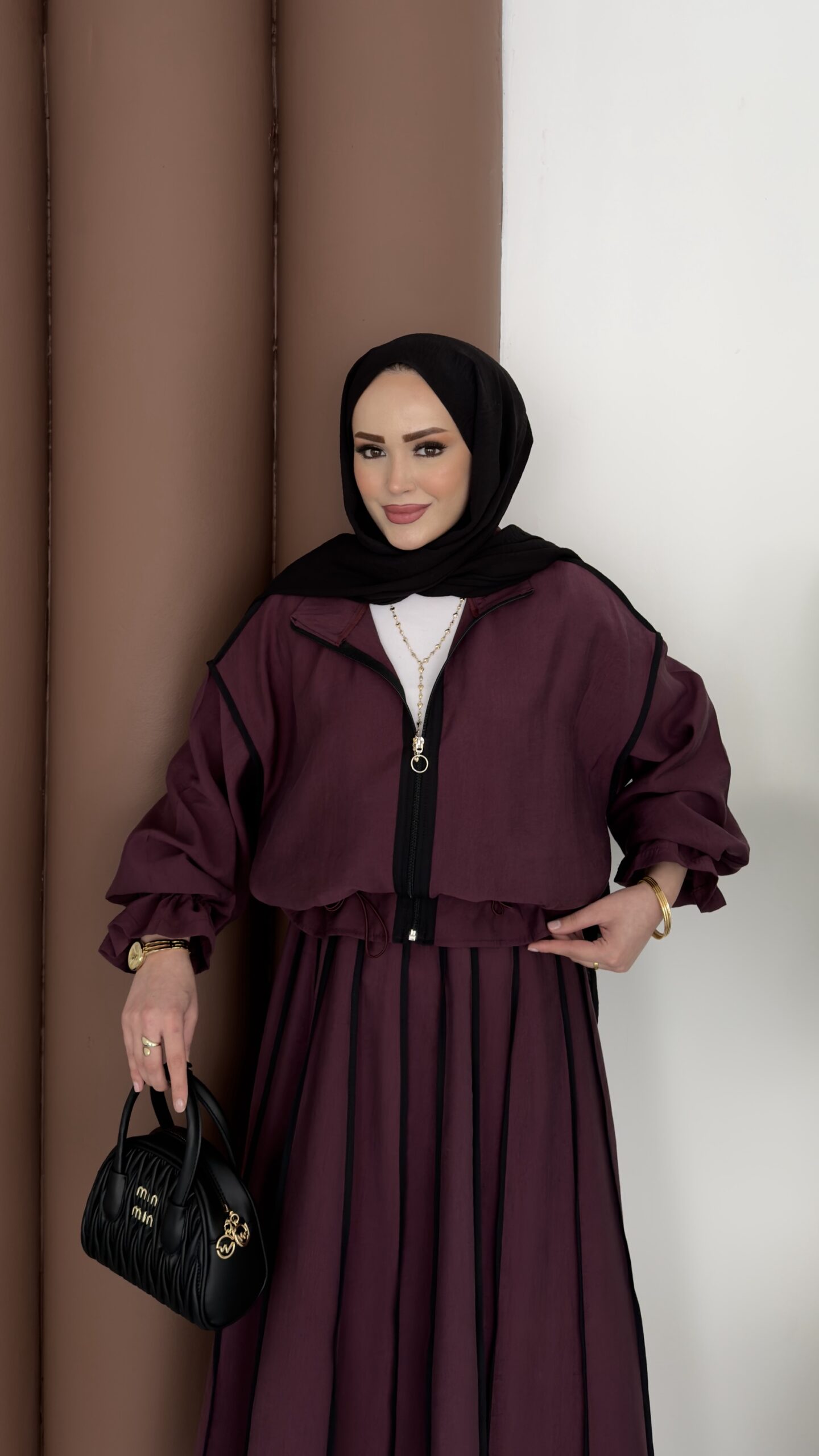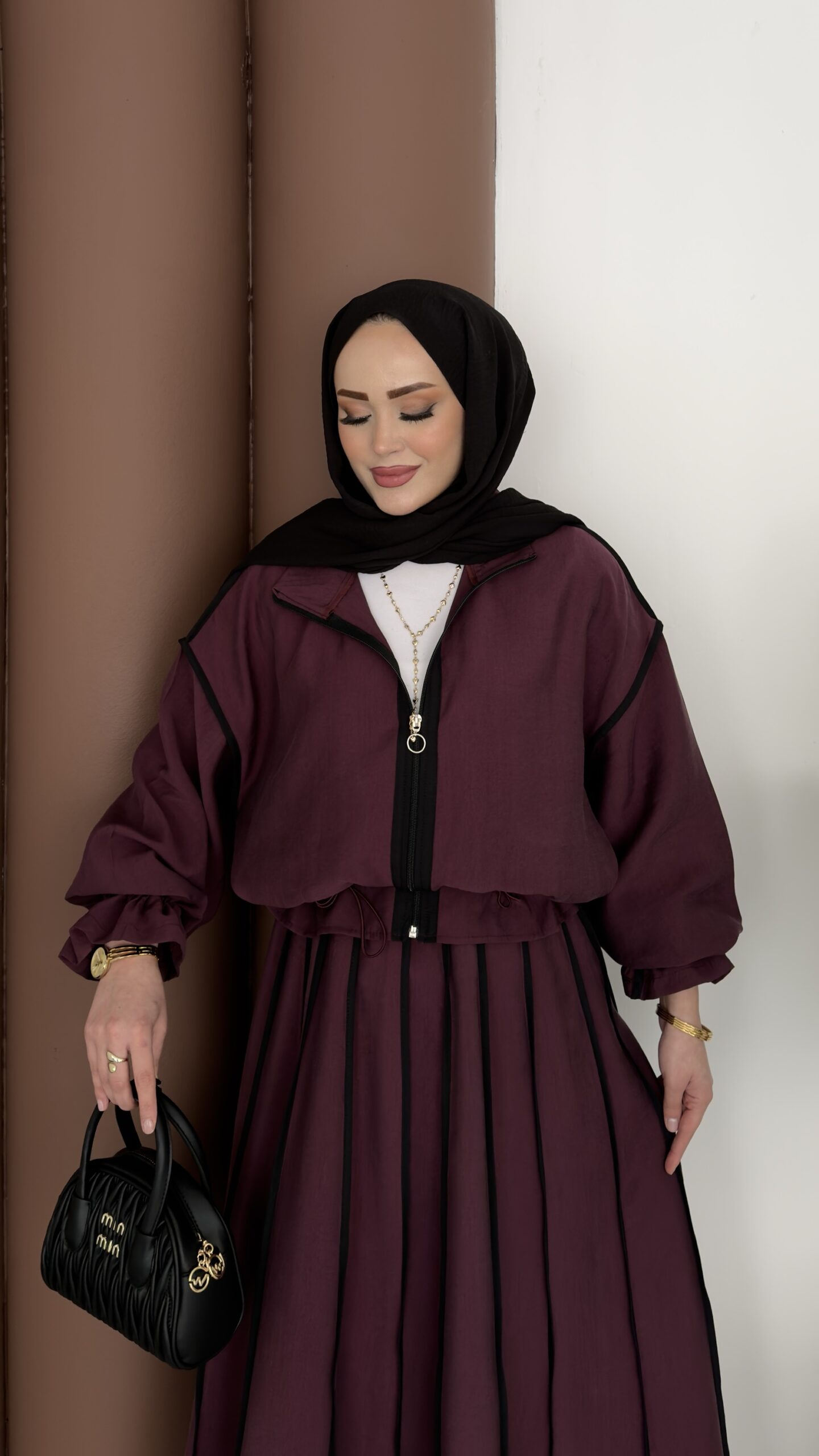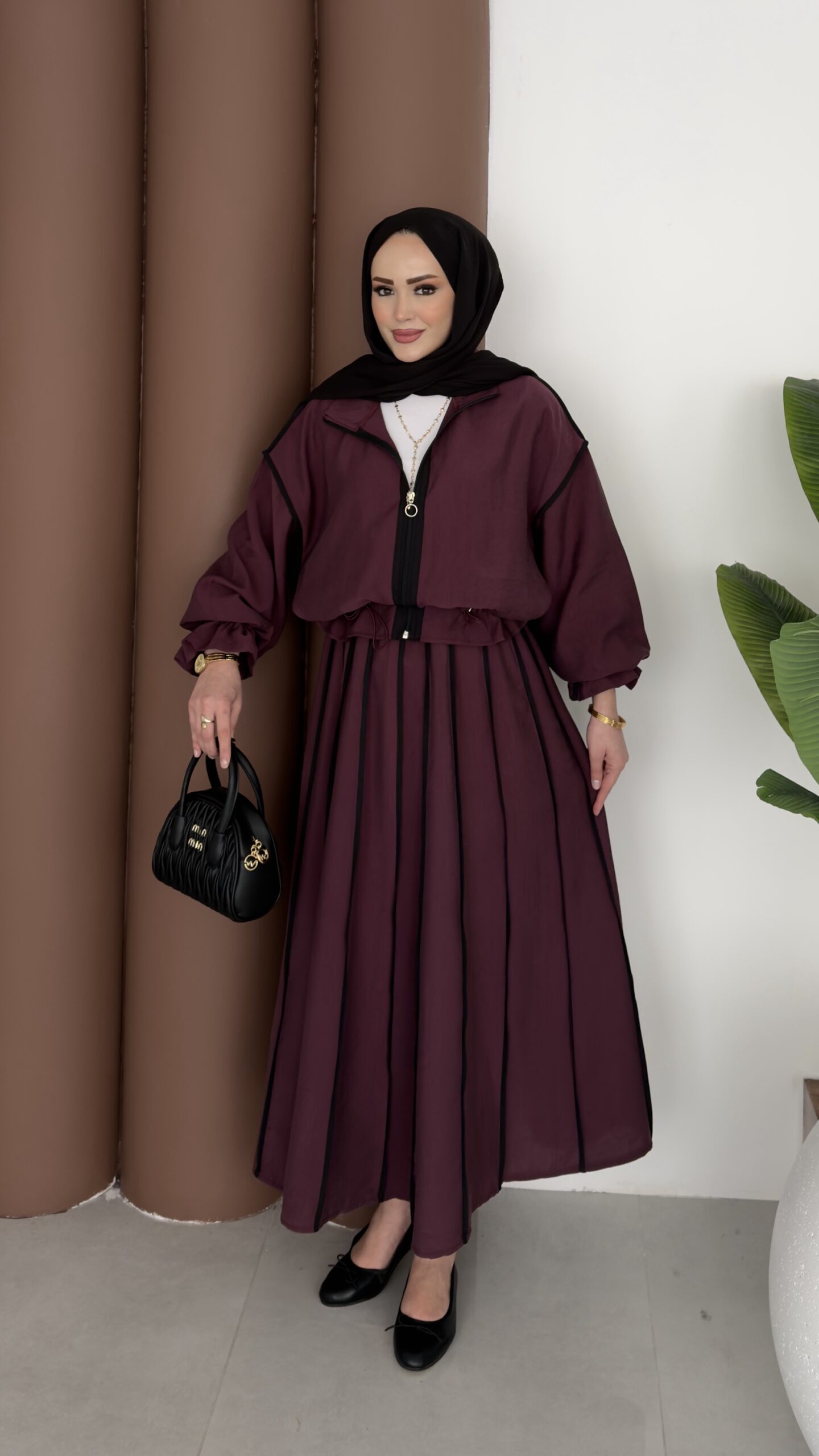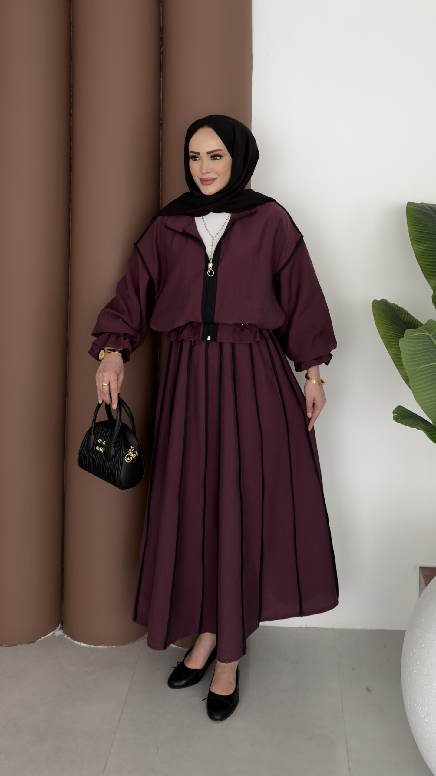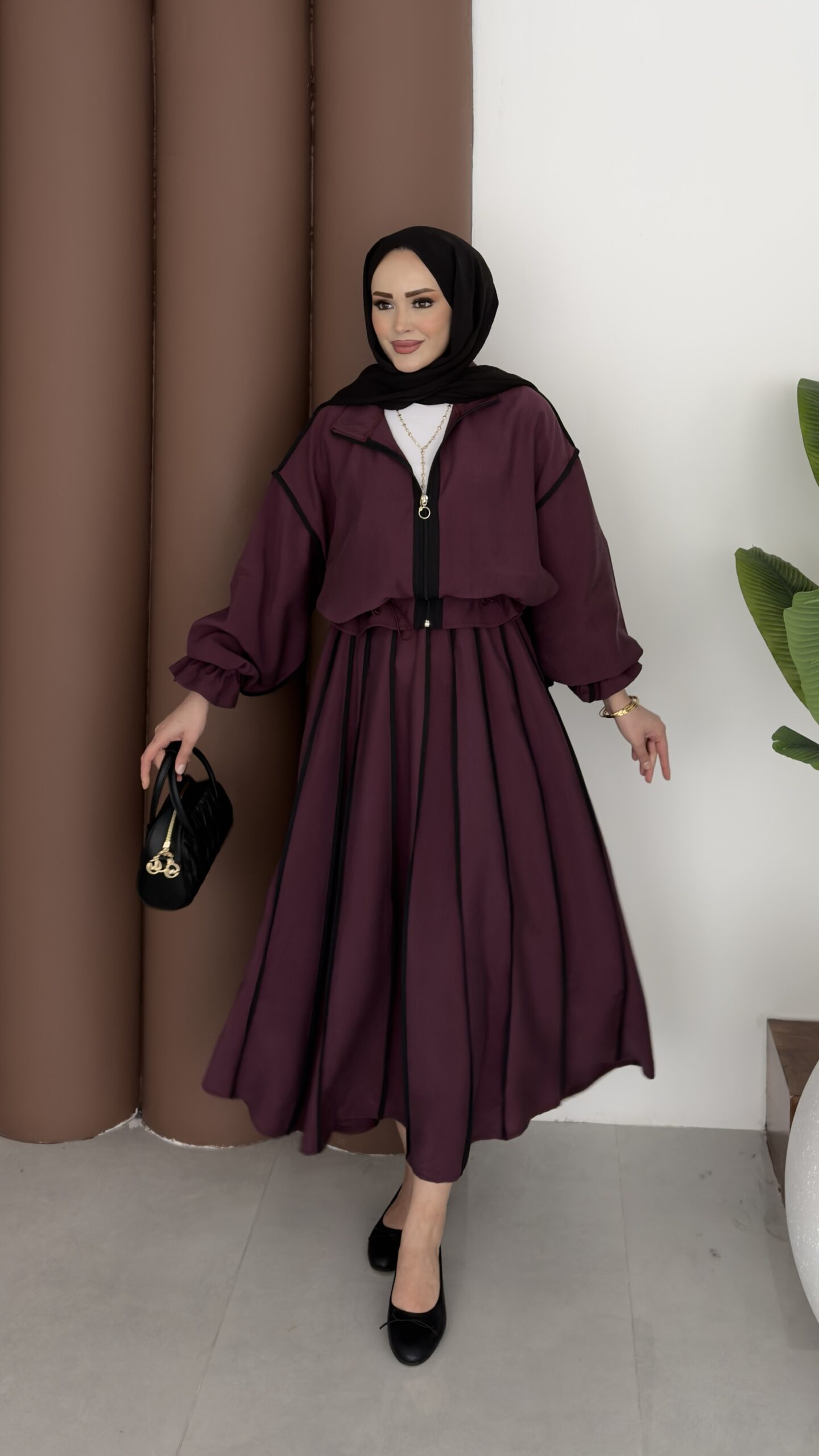 Muadil Biye Detaylı Etek İkili Takım – Mürdüm