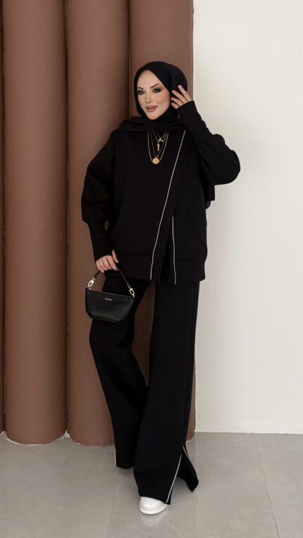 Muadil Asimetrik Fermuarlı İkili Takım – Siyah
