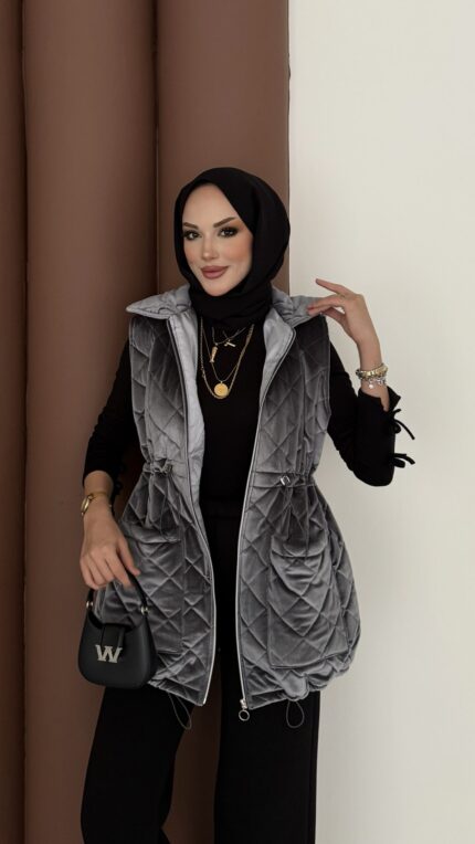 Kapitoneli Kadife Şişme Yelek – Antrasit
