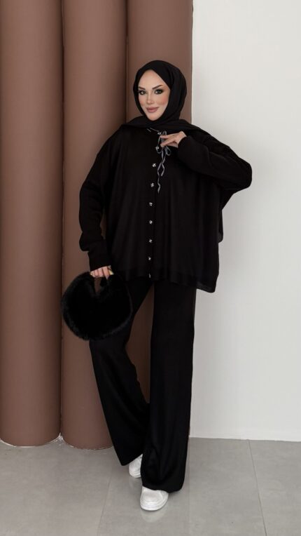 Diamond Taşlı Büzgülü Scuba İkili Takım – Siyah