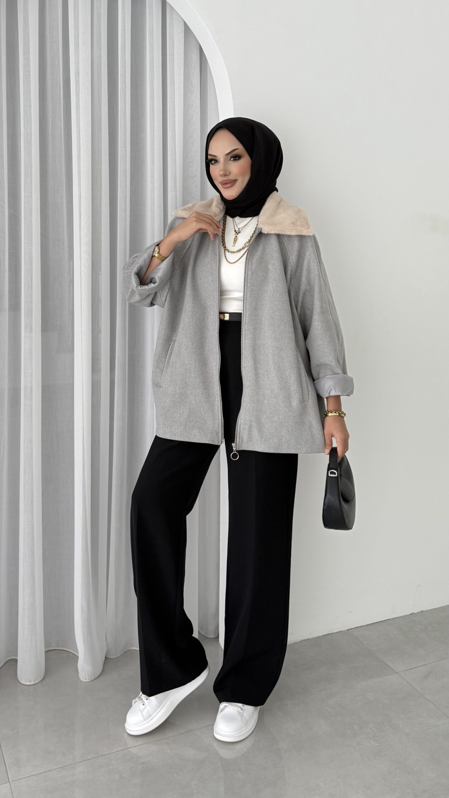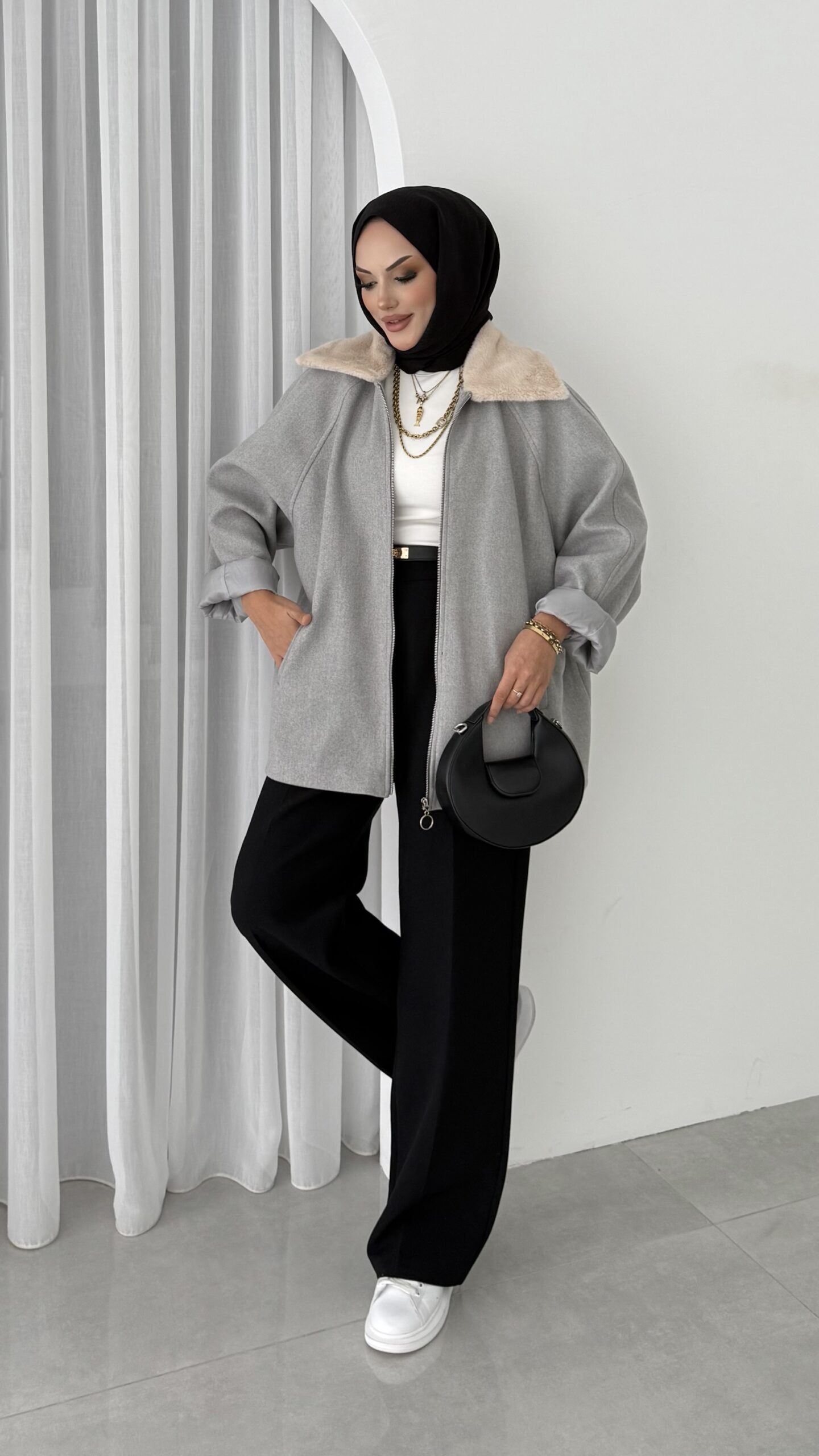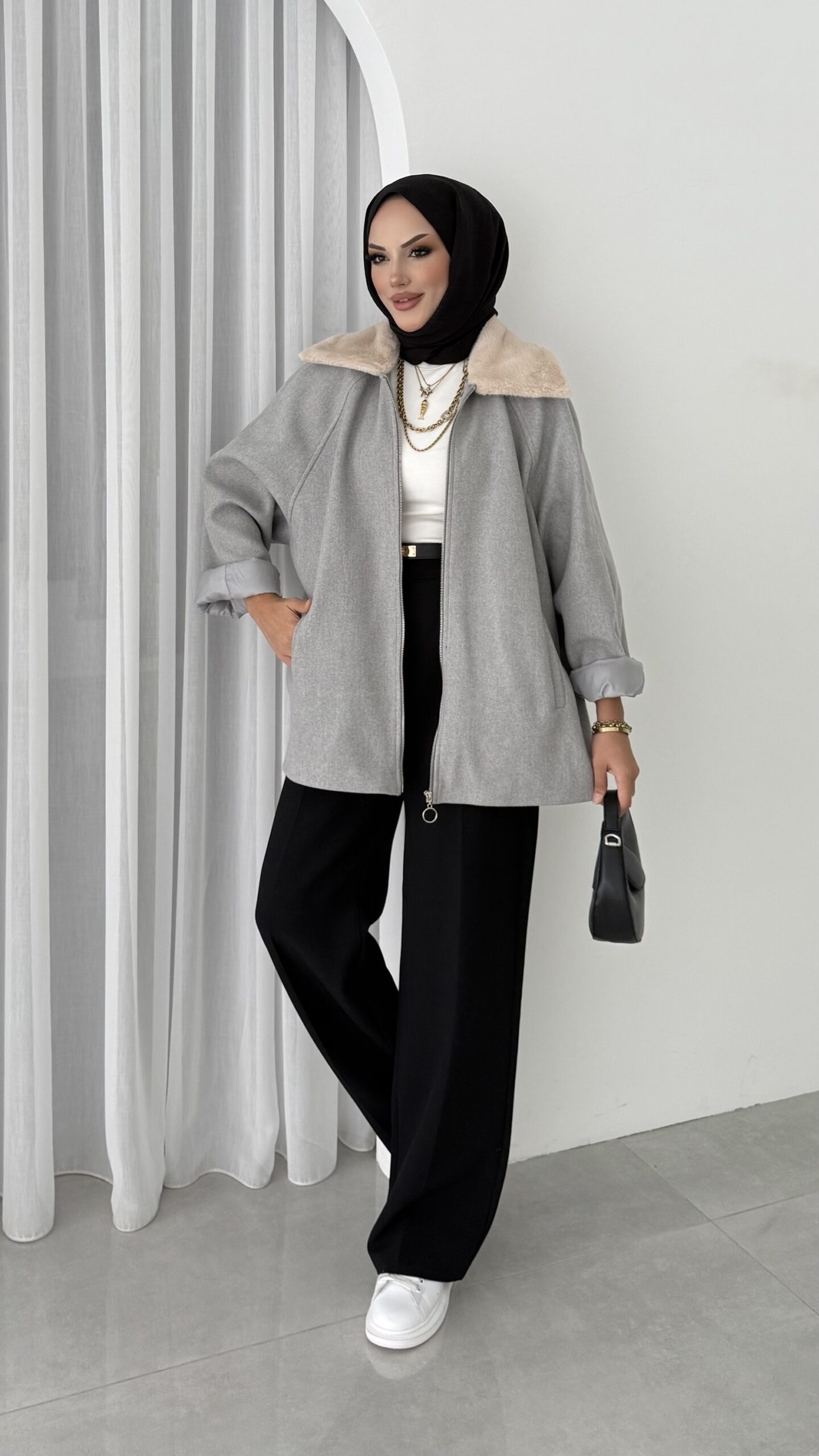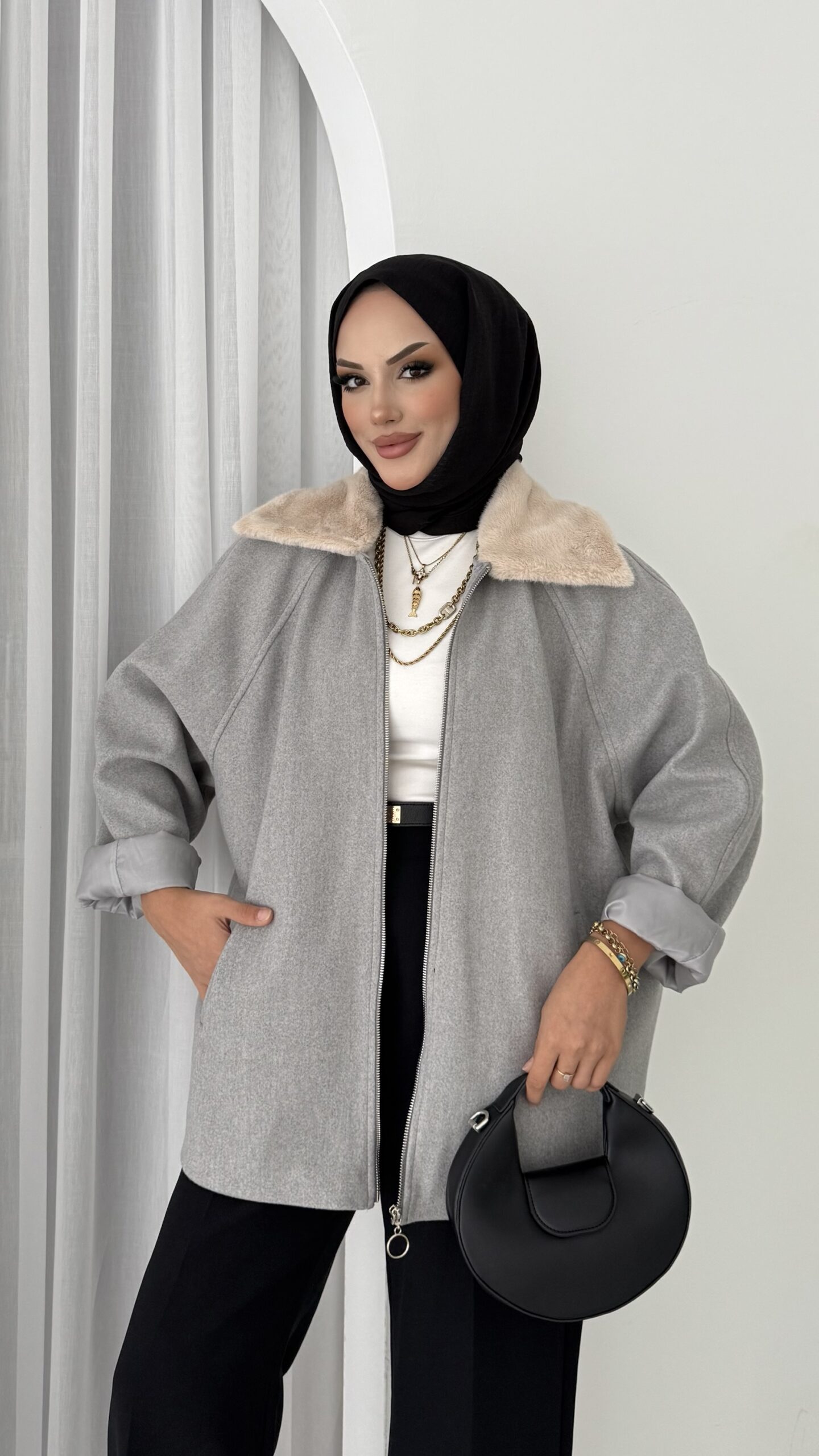 Muadil Kürk Yaka Kaşe Ceket – Gri