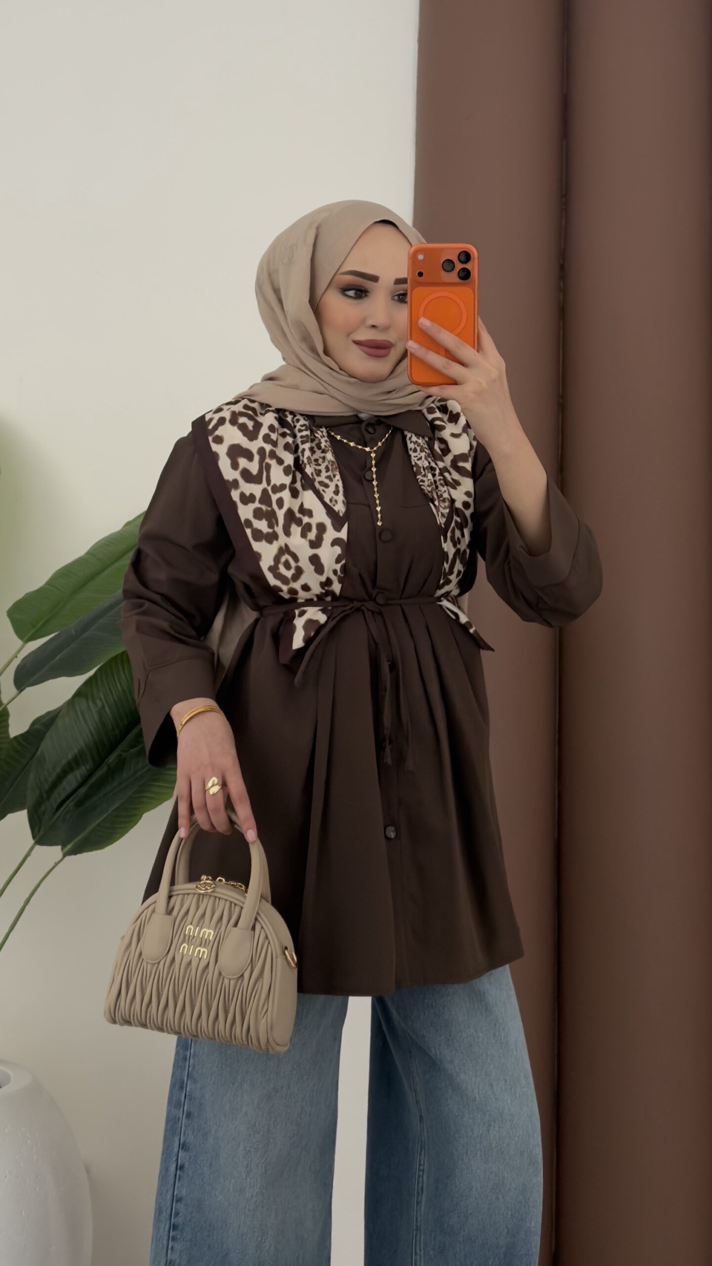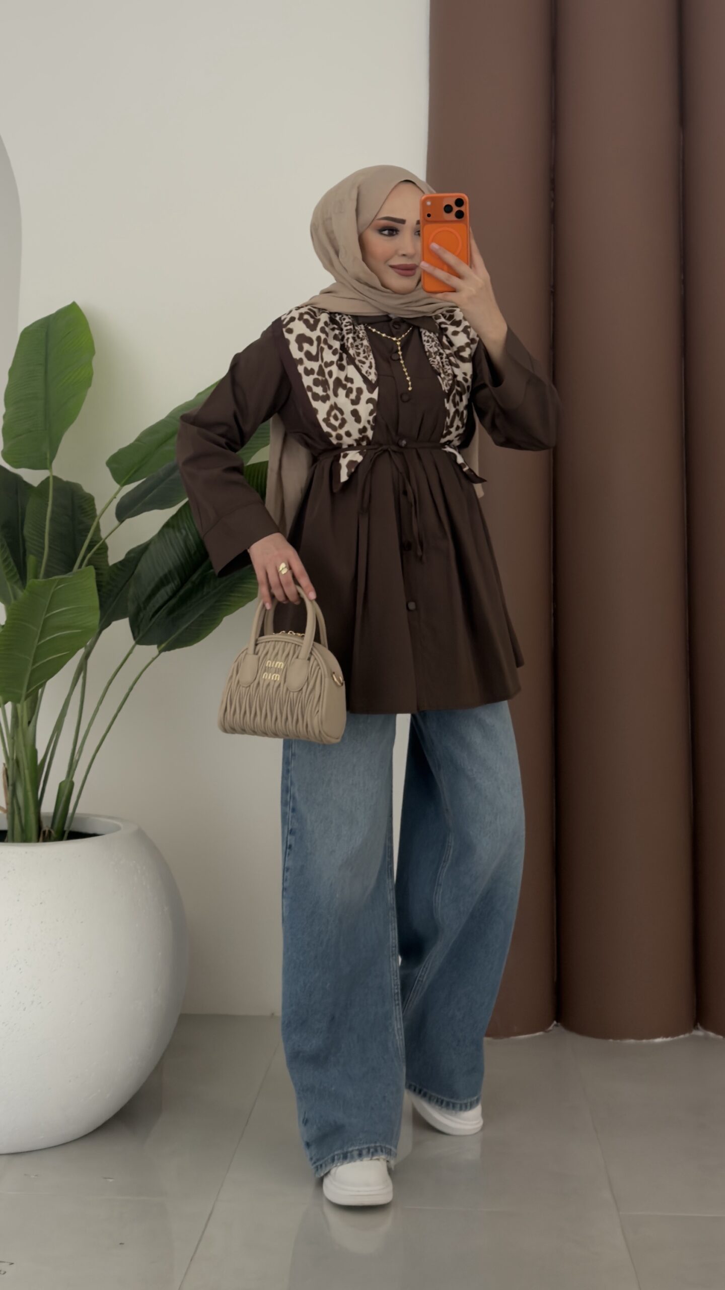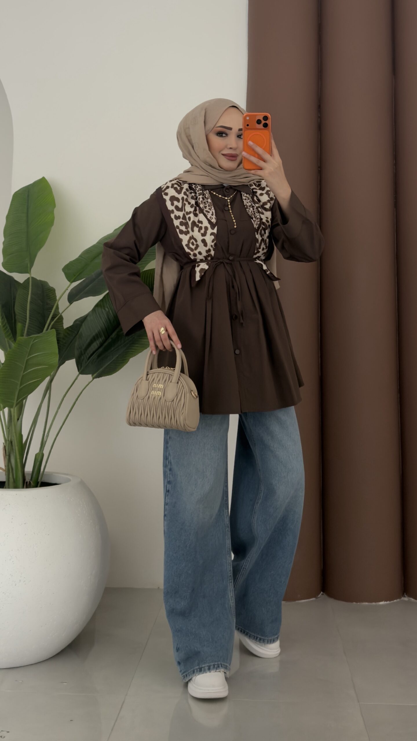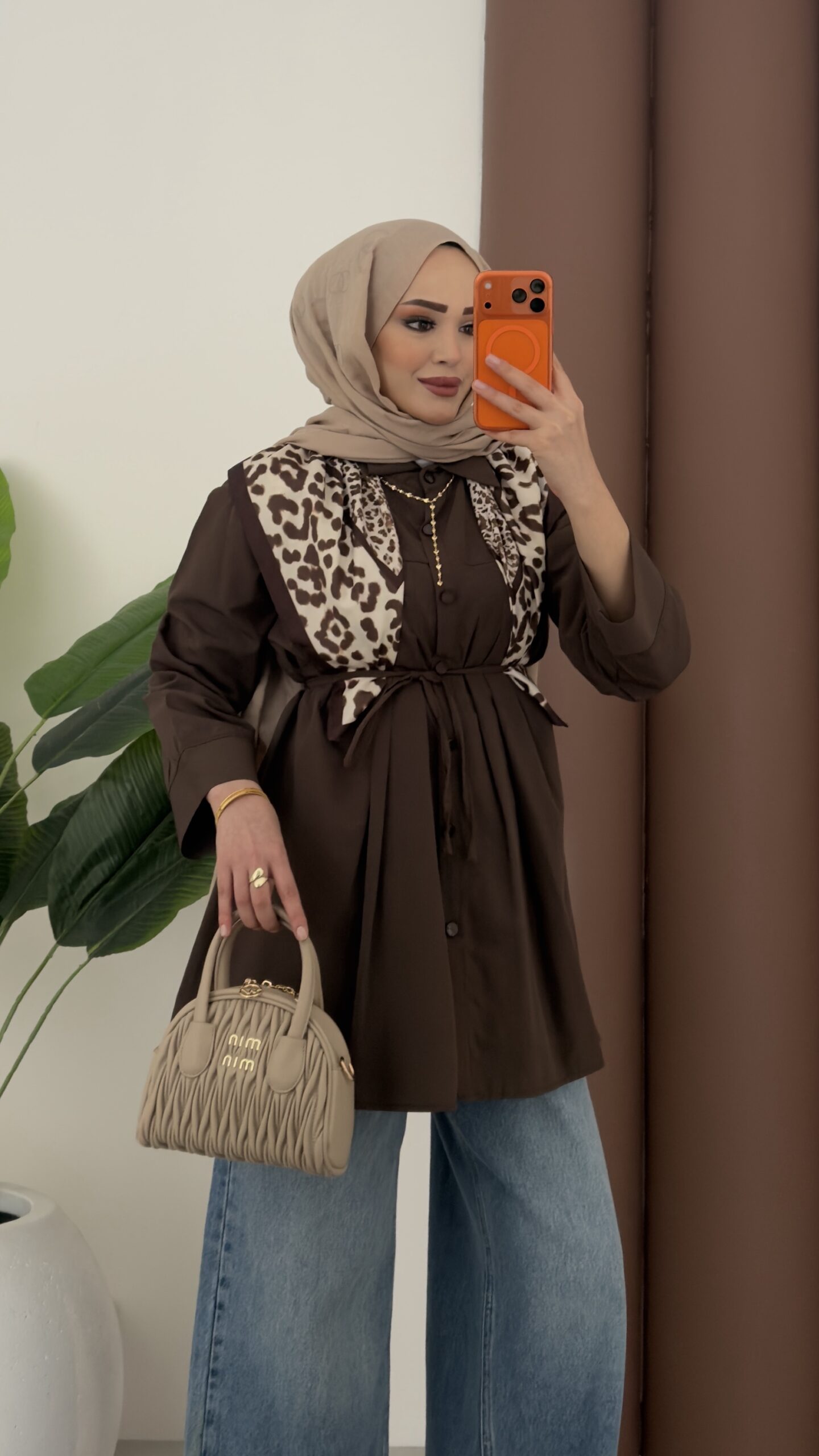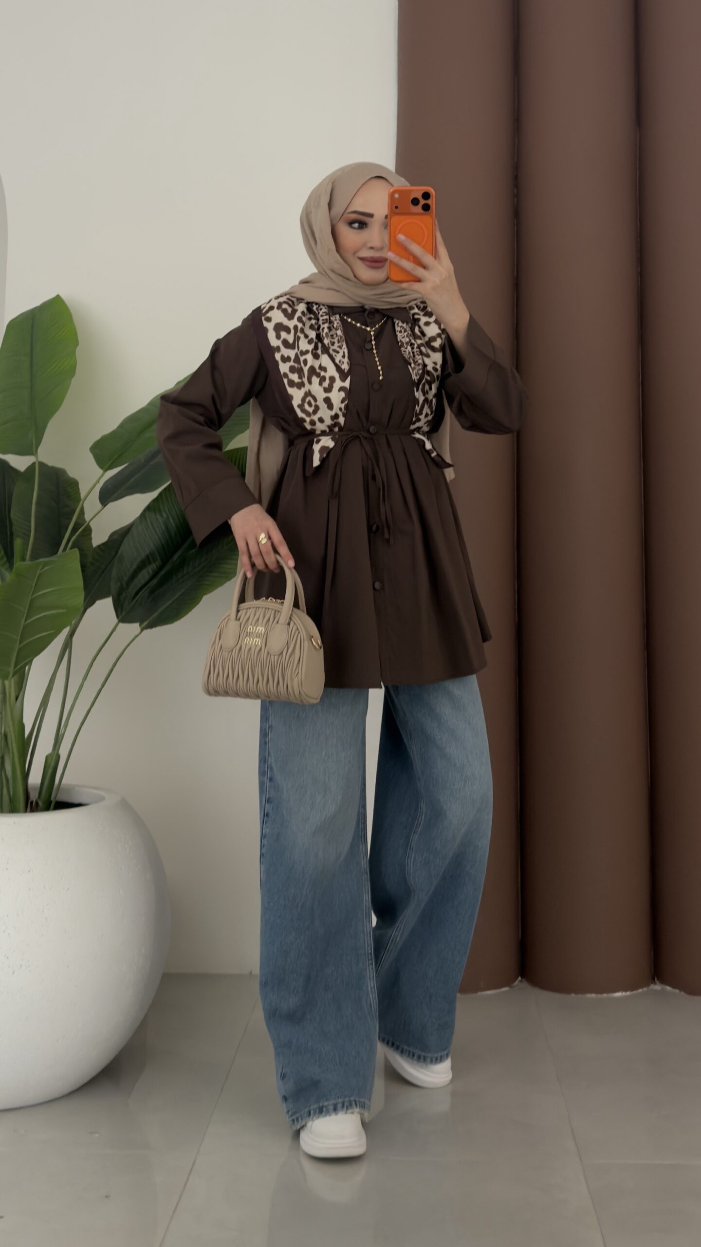 Nervürlü Poplin Gömlek – Kahverengi