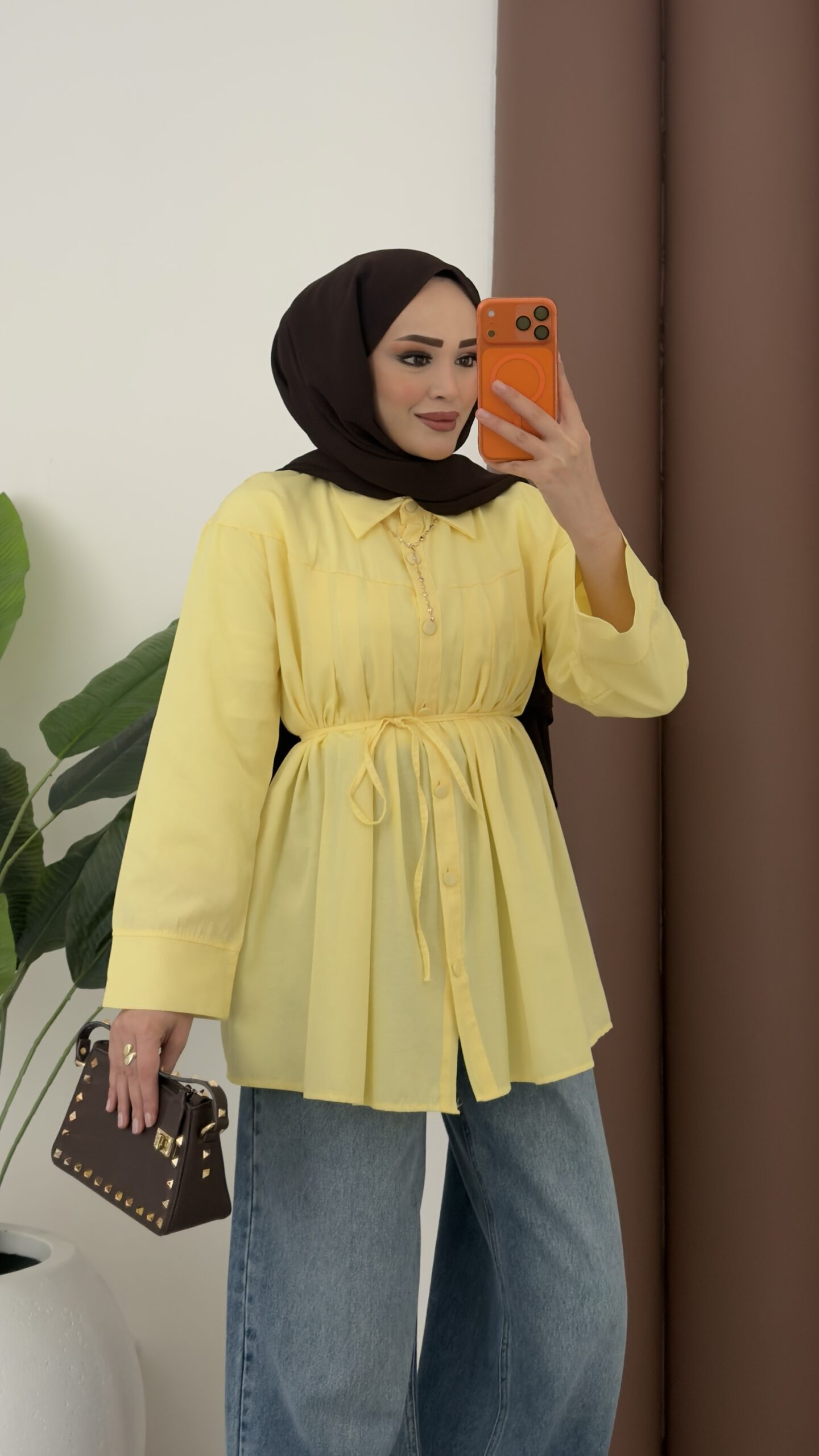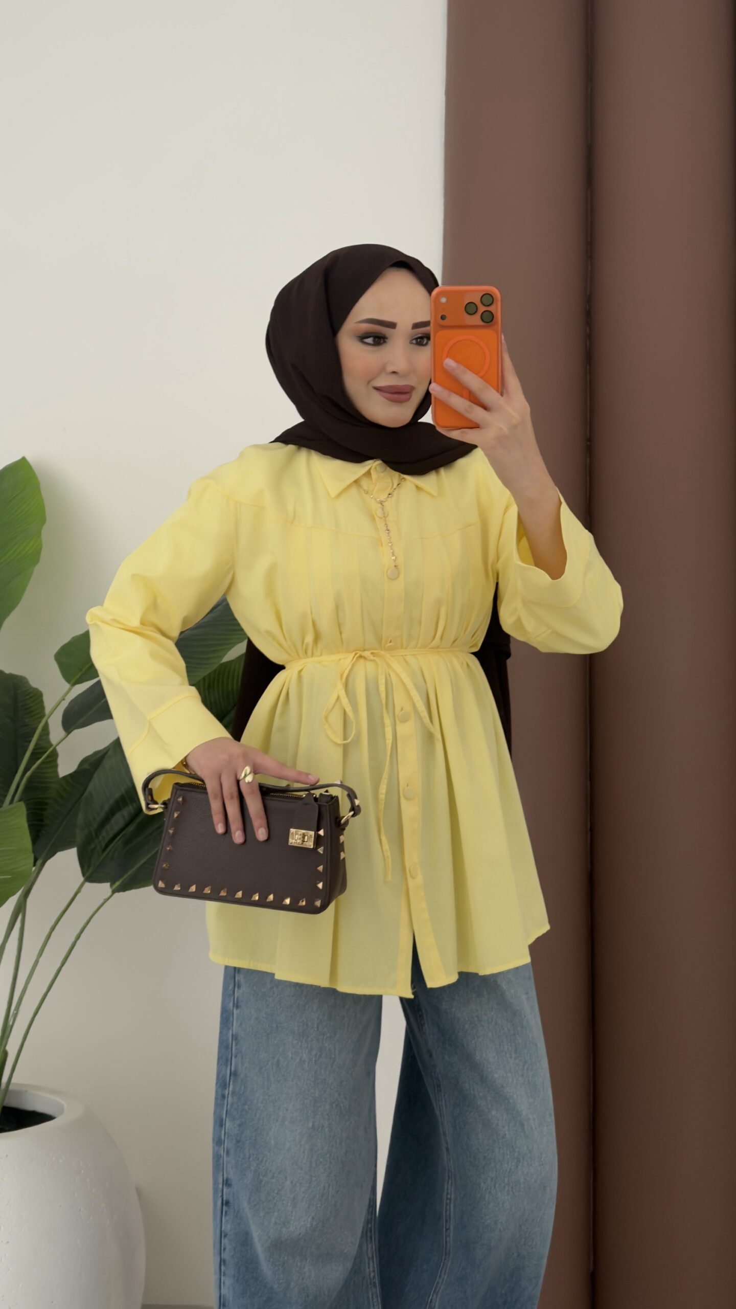 Nervürlü Poplin Gömlek – Sarı