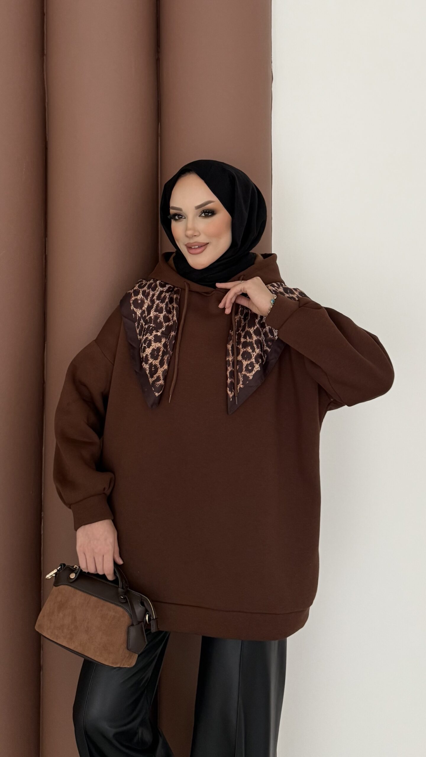 Oversize Basic Şardonlu Sweat – Kahverengi